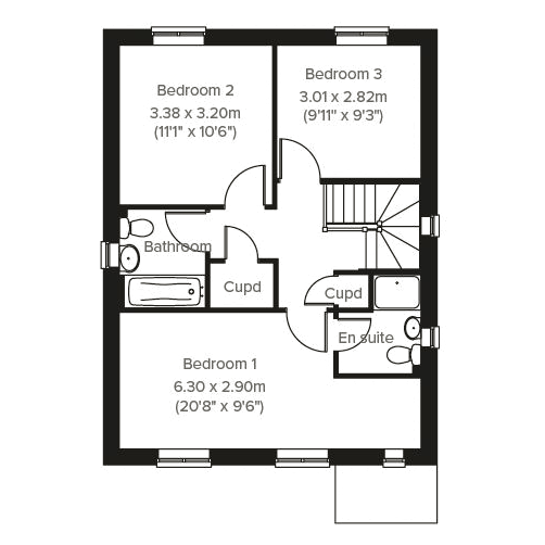 The extremely popular Delamare is a three-bedroom family home with a bright and modern open-plan kitchen/dining room with French doors leading into the garden. The integral garage, downstairs WC, three handy storage cupboards and an en suite to bedroom one mean it ticks all the boxes for practical family living.