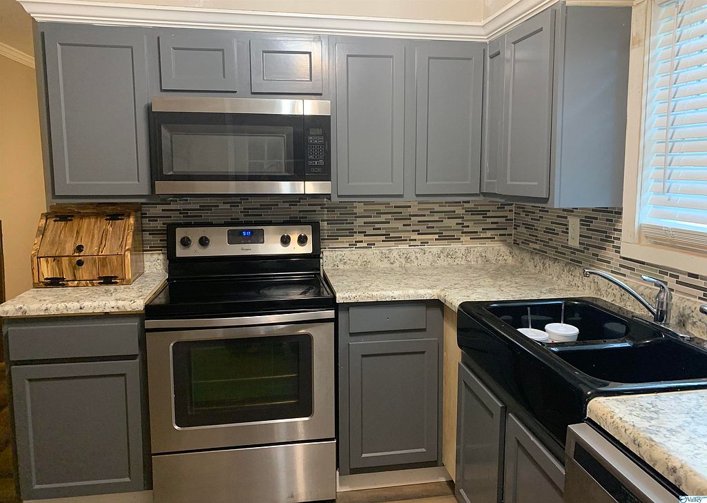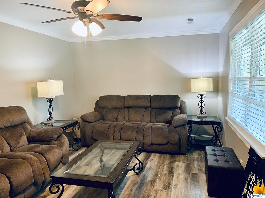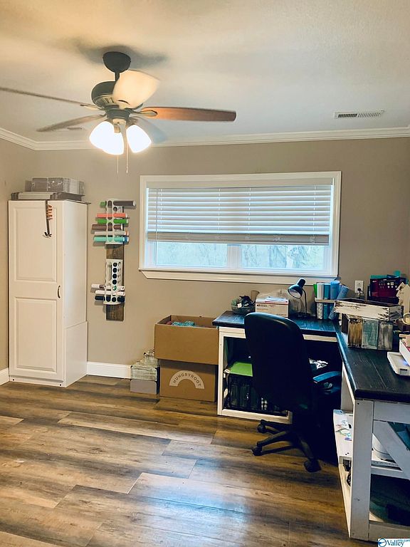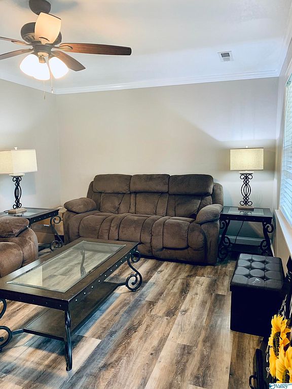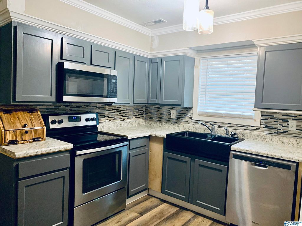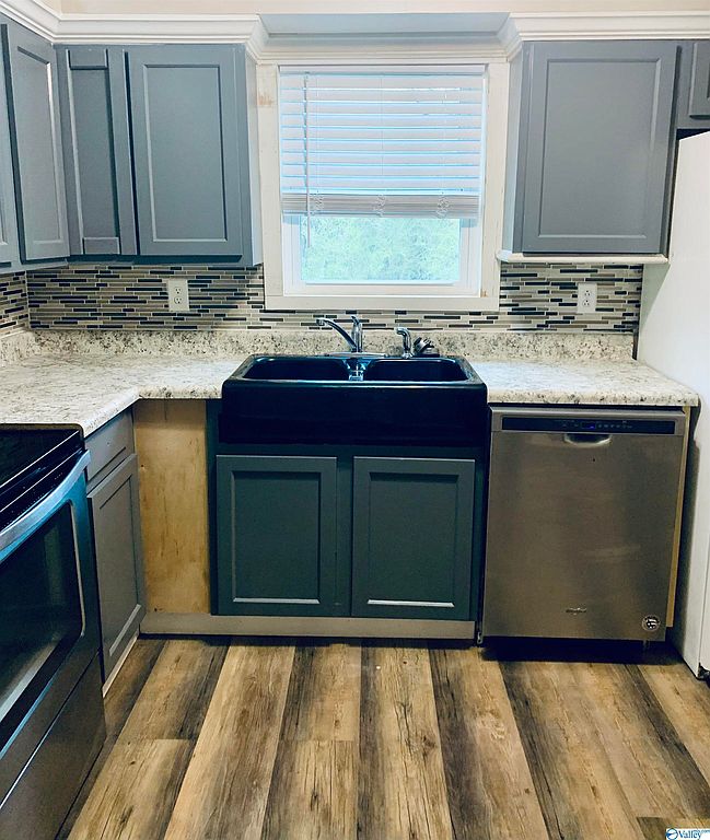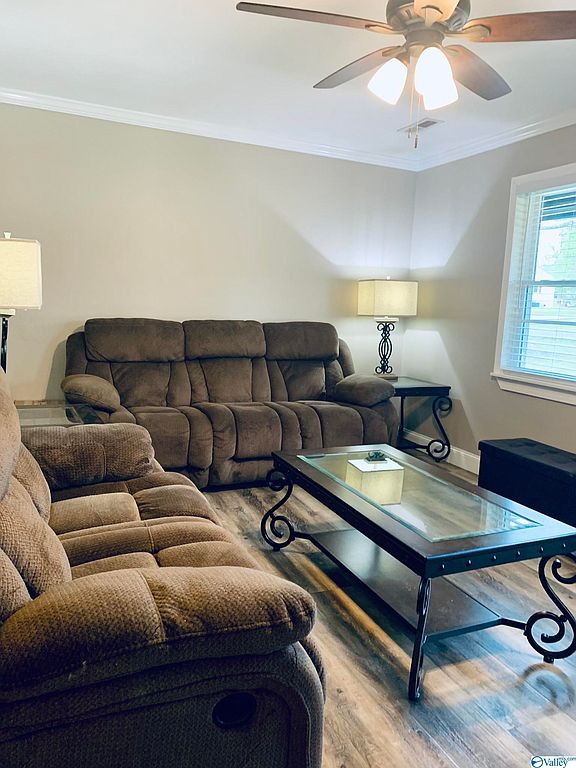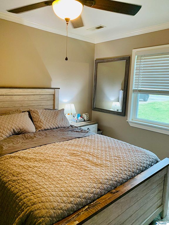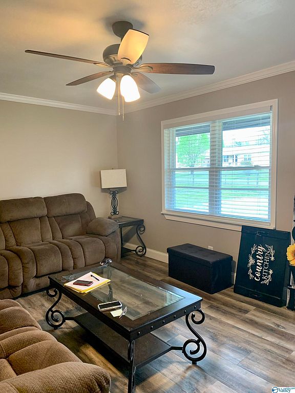 Remodeled charming 3bed 1bath boasts many updates including new HVAC, Crown molding, freshly painted throughout Kitchen has new cabinets, countertops, apron sink, dishwasher to convey. New windows, Interior doors, Exterior front door with keyless entry, screen door, ceiling fans/light fixtures, LVP flooring/carpet, bathroom vanity & mirror, Night Owl 4 camera security system w/DVR to convey, 30x25 detached building, partially fenced, outdoor patio space. Conveniently located to school. Minutes from Scottsboro. Nothing like it at this price. This home is bound to sell fast so call today! This home has been pre- inspected for buyers convenience!
