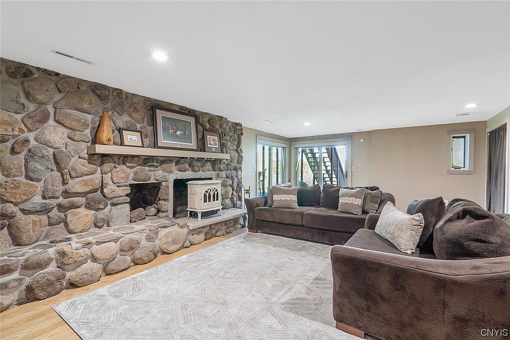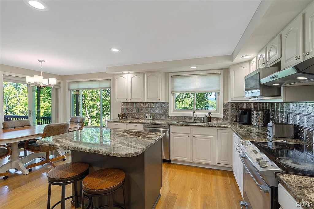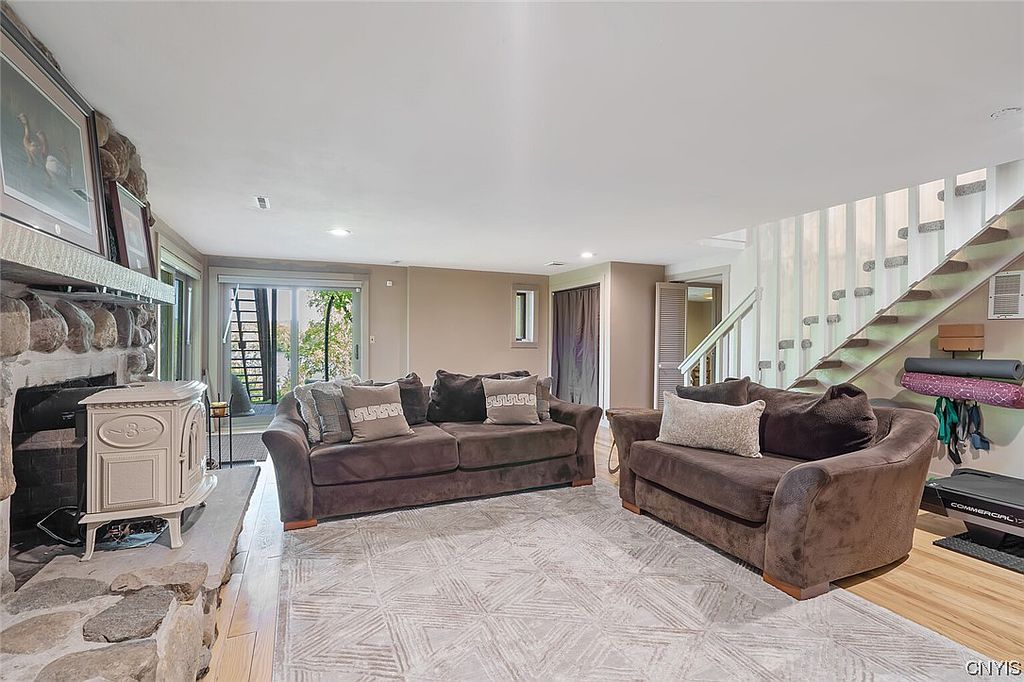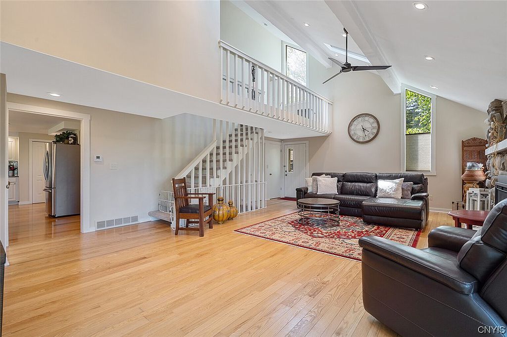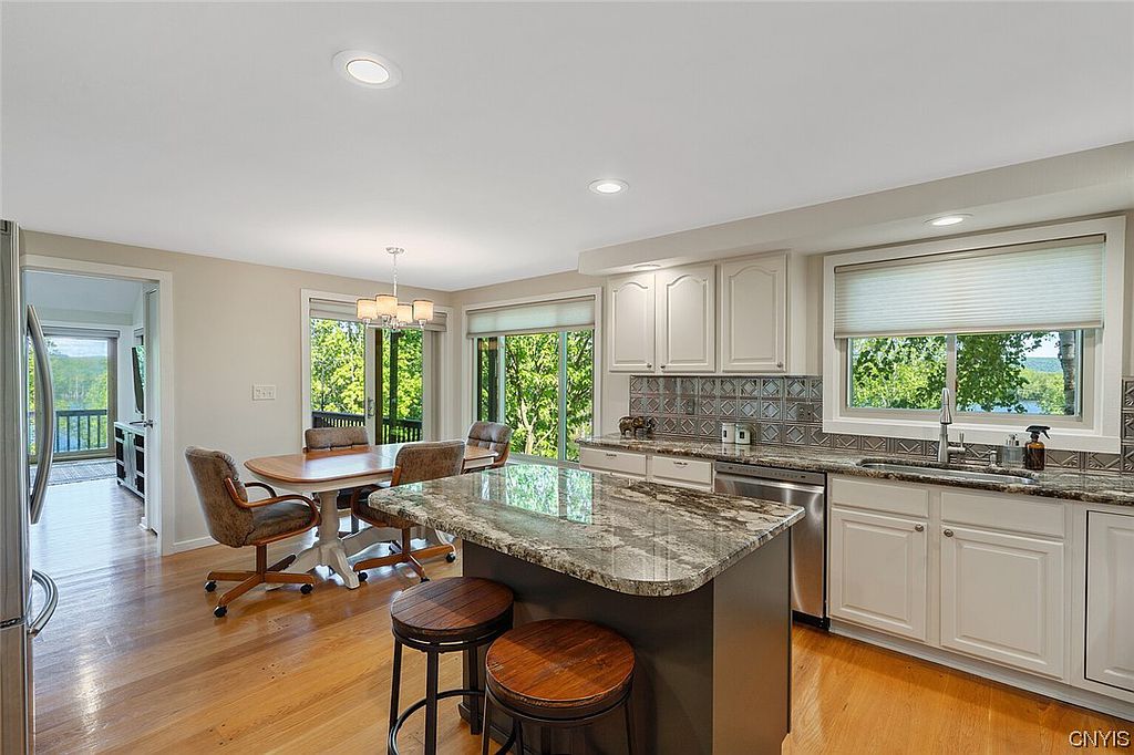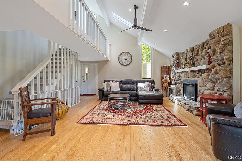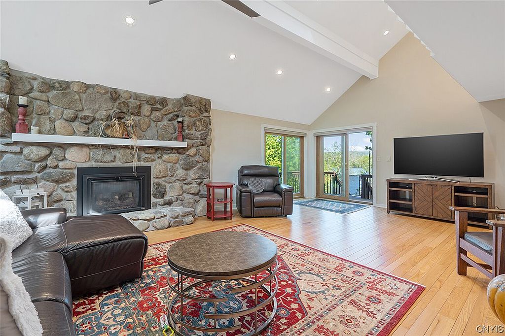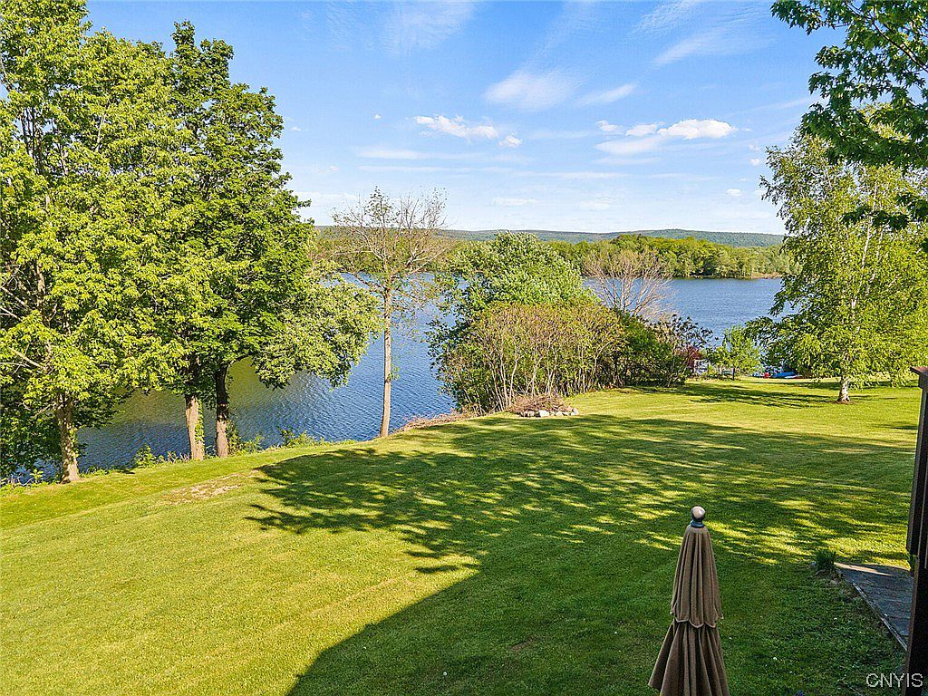 A rare opportunity to own 220 feet of lakefront property in Tully! This Fowler built lakefront home has astounding views of Crooked Lake that can be seen from almost all rooms this is a priceless view to wake up to! Situated on over an acre of land this home boasts 4 bedrooms and 3 and 1/2 bathrooms, hardwood floors, an updated kitchen, updated bathrooms, new light fixtures, and fresh clean paint throughout the main living area. And the amount of natural light will leave you breathless. Off the living room and kitchen are sliding glass doors to enjoy the breeze, sunrise, and sunset whenever you please! The property has 2 sheds - one with electric. Newly Installed UV Water Filtration System. Electric at the water. . Two car garage plus 1 car garage adjacent to home This home is an absolute show stopper, don't wait to make your appointment, showings start Friday, 6/2/23!
