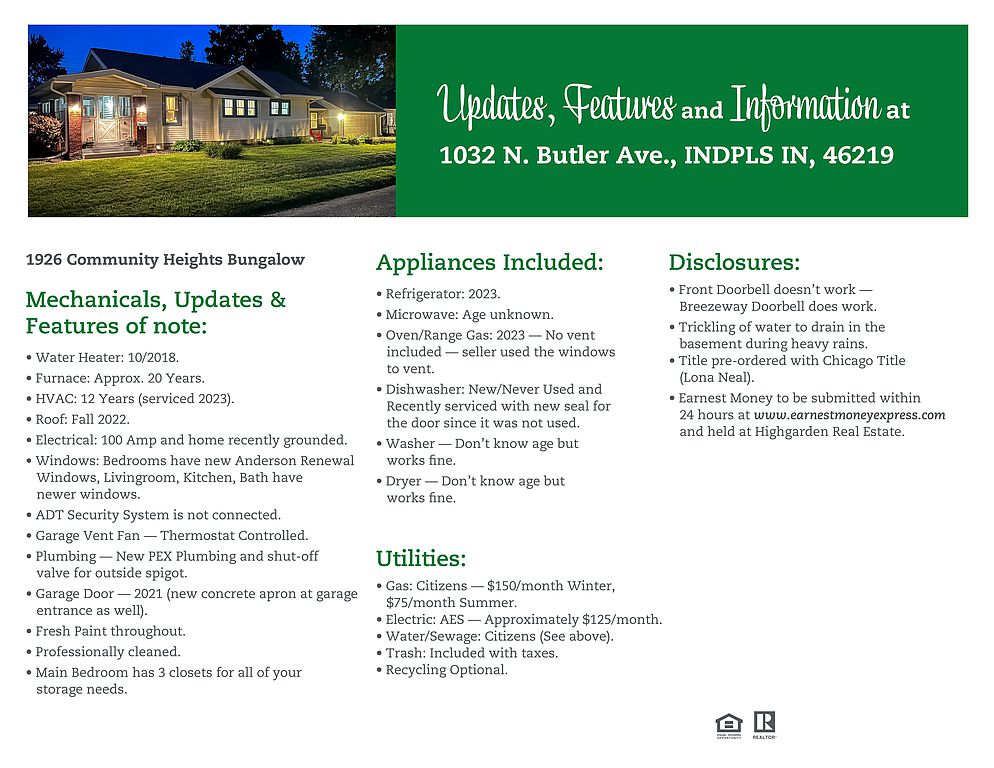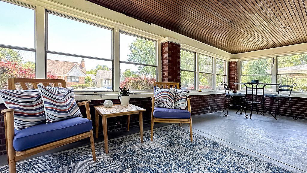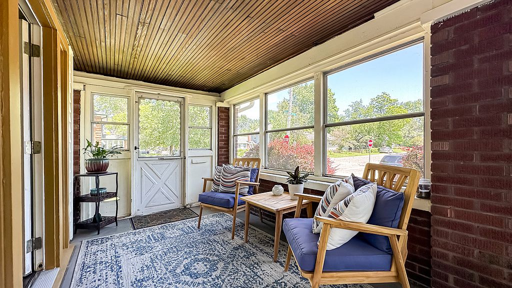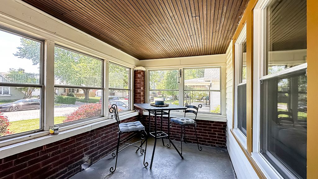 Charming Community Heights corner lot w/ a roomy enclosed front porch entry to the living room w/ a beautiful gas fireplace. The dining room is open to the living space & leads to the galley kitchen w/ lots of counter & cabinet space. The main bedroom is surprisingly large w/ one whole wall of closets plus a bonus closet, and there is space for a sitting area or a work from home spot. The 2nd bedroom is also plenty big w/ great closet space. The full bath has been updated with tile walls & a newer glass block window for ample natural light. The breezeway to the garage makes a great mudroom! Enjoy the patio w/ built-in gas grill & a fenced in area for your garden or dog run. Blocks from Ellenberger, Irvington, bike paths & convenient to Indy