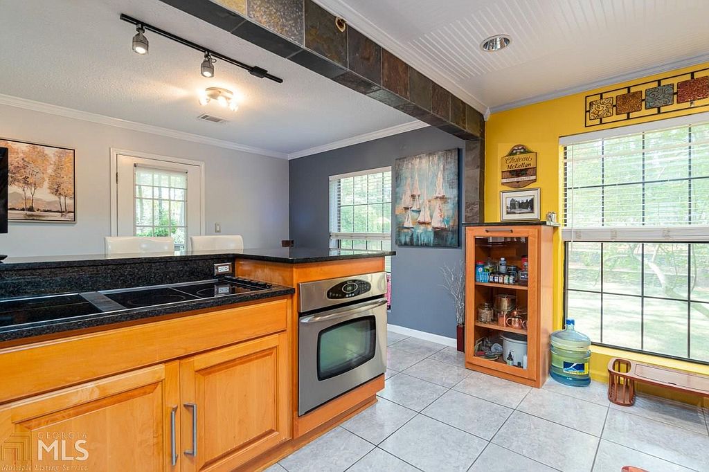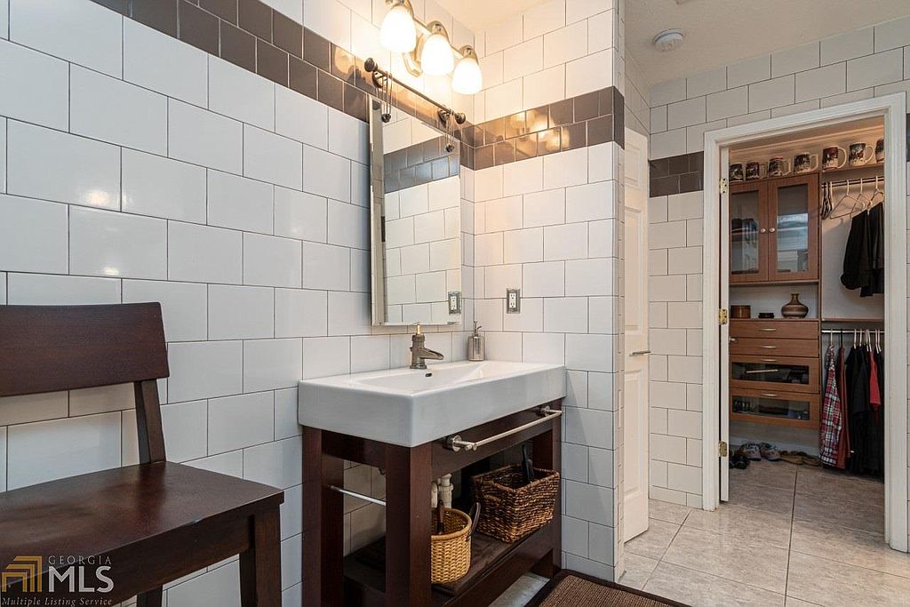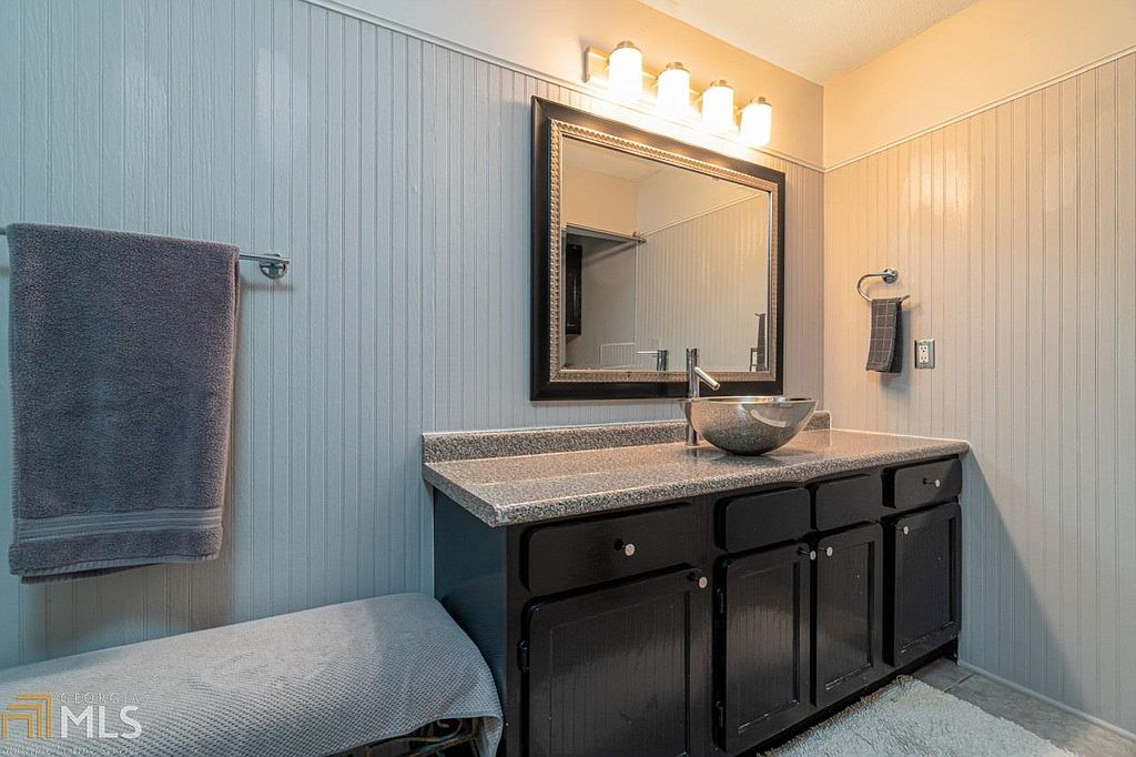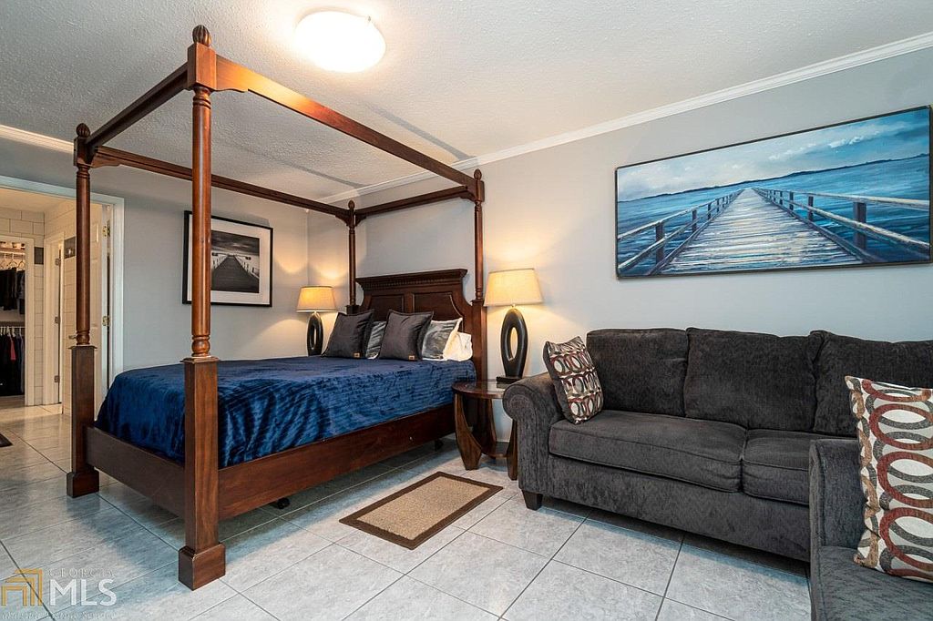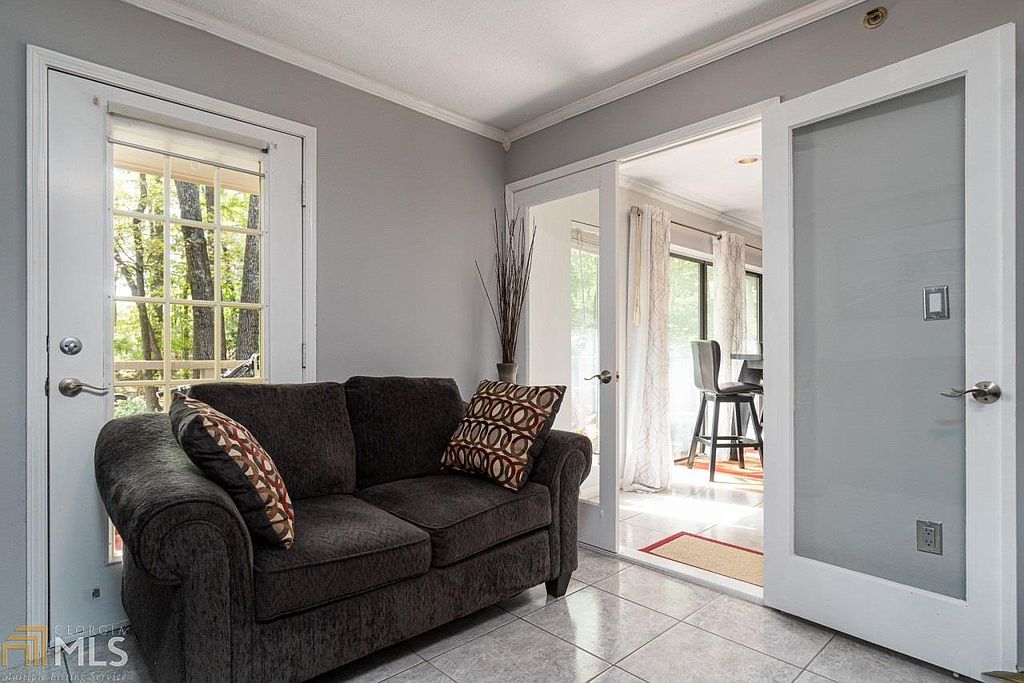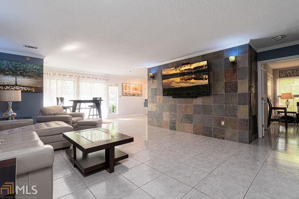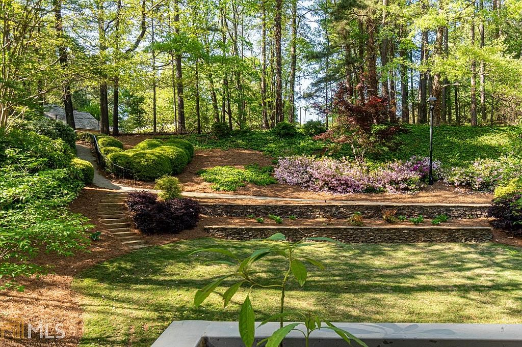 North Atlanta condo in a prime location! Located just inside the perimeter yet walking distance to Truist Park & Chattahoochee Nature Trails! This jewel of a find CORNER condo is on the first floor but is not ground level. Open the front door of the condo to an airy living space. Every living space has a view of nature! Large scale, easy to clean tile floors run throughout the entire unit. Slate accent walls add color & texture. The entertainment system, with a 75' flat screen & soundbar will remain with the unit. The newly renovated eat-in gourmet kitchen has a generous granite breakfast bar, SS appliances, pantry with glass door & a restaurant styled pull down faucet. The master suite is large enough for a sitting area. Master bath features 2 oversized apron sinks with waterfall faucets, jacuzzi tub & walk-in closet with built-ins. The second bedroom has a large full bath that features a SS bowl sink & laundry area & storage cabinets. The balcony is 42'x 4', the largest in the complex! All the living spaces have glass access to the balcony. Sliding glass doors can be opened for indoor/outdoor entertaining. You can literally walk out the door, down the stairs & out the back door into the landscaped greenspace & be on a nature trail in less than 5 min. The condo comes with 2 parking spaces with storage. Come get this jewel before its gone!
