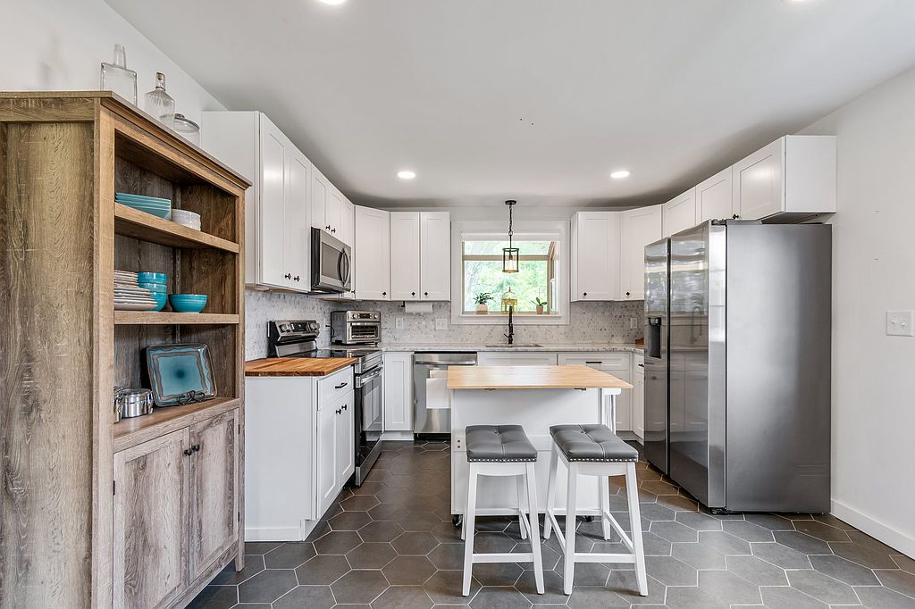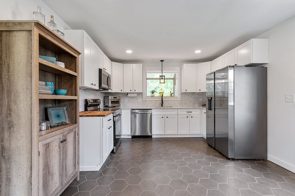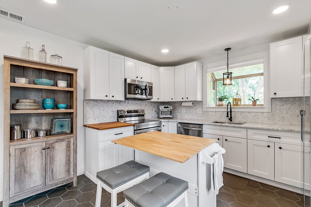 Completely renovated cottage on the Cumberland river side of Jacksonian Dr in sought after Hermitage Hills! The perfect blend of original and modern, this nearly 1900 square foot home comes with marble countertops, tile backsplash, stainless steel appliances, original refinished hardwood floors throughout, large windows to let natural light flow and completely renovated bathrooms. The one car garage has a workshop area; finished basement is complete with a storm shelter, washer/dryer, recessed lighting, tile floors and electric fireplace with a beautiful stone hearth. Minutes to transportation, shopping, restaurants, amenities, Tri Star Medical Center & lake access, while less than 20 minutes to downtown Nashville - all on a fenced wooded lot that backs to the Cumberland.
