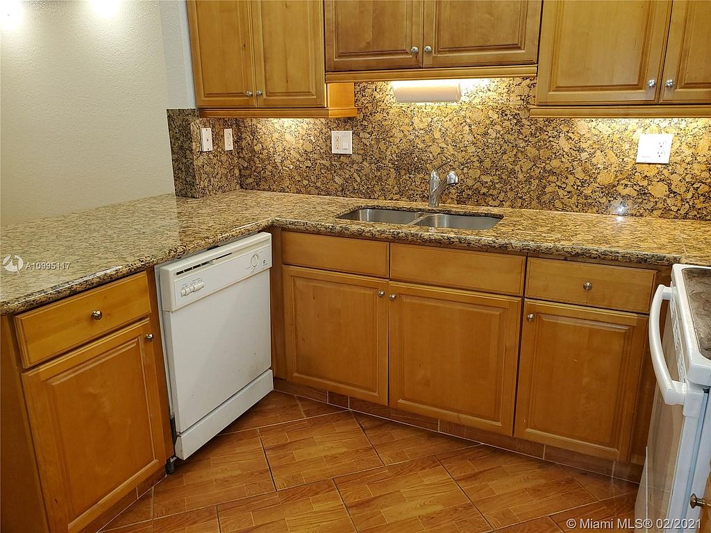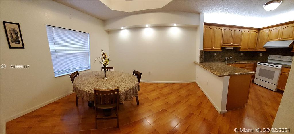 A precious diamond to own. Great starter home in a friendly and secured community. Well-kept 3 beds and 2.5 baths townhouse condo guarded by 24-hour on-site security officers. Kitchen and bathrooms renovated with elegant natural granite and honey amber onyx respectively. Tile throughout downstairs while solid real wood floor upstairs. Home appliances in great working condition. Accordion hurricane shutters installed with county permits. Minutes to FL Turnpike, Expressway 874 and major merchants like Publix, Wells Fargo, Home Depot and Chili’s, etc. Walking next to Deerwood Bonita Lakes Park at 14445 SW 122 AVE, with entertainment facilities like jogging trails, patio-covered children playground and basketball courts, etc.