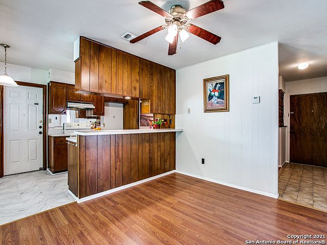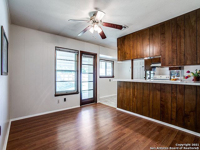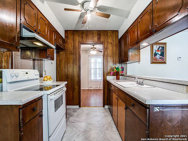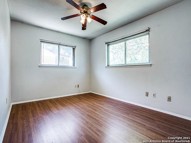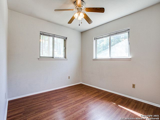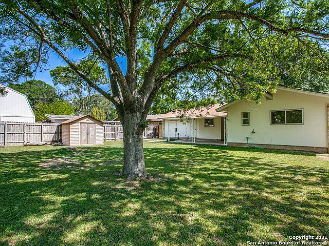 This charming single-story w/NO HOA fees is located in the well-established Lone Oak subdivision. Convenient to Randolph AFB, Forum Shopping Center, and H.E.B. off 3009. No carpet, new laminate flooring (living room, dining room, hall, and bedrooms), freshly painted (interior and exterior), brand new garage doors, and roof replaced in 2015. Oversized garage w/plenty of room for storage, plus long driveway. Large lot w/mature trees and 9X8 Storage Shed on a slab. Property being sold 'As-Is.'