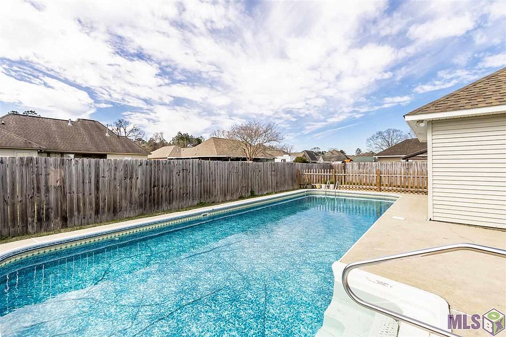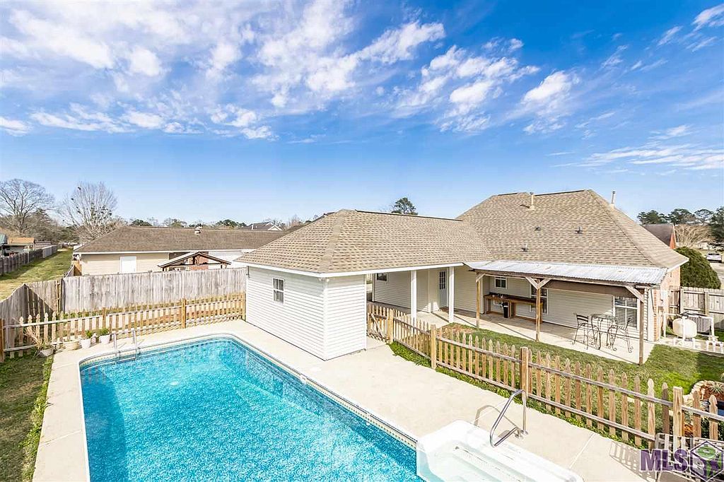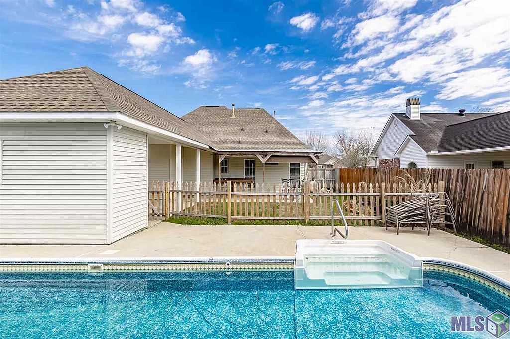 Honey stop the car! Charming 3 Bedroom 2 Bathroom home in highly desired Lake Crossing Subdivision with IN GROUND POOL! Lake Primary, Lake Middle, and St. Amant School districts! Walk in the front door to beautiful, stained hardwood floors with gas burning corner fireplace with beautiful mantle. The kitchen/dining combo boasts stained cabinets and granite counter tops with breakfast bar and pantry. Primary suite bedroom has new laminate wood floors and gorgeous stained wood plank accent ceiling! Primary bath is complete with dual vanity, soaker tub, stand alone shower and his & hers walk in closets!! Spare bedrooms are spacious and have brand new carpet. Completely painted interior and exterior! Brand new complete HVAC system installed Sept of 2020, and the roof is less than 5 years old! Enjoy cool summer nights on this large, covered back patio with galvanized accents or take a dip in the pool. The heavy-duty pool liner is only 2.5 years old! Don’t miss out on this one, schedule your appointment today!