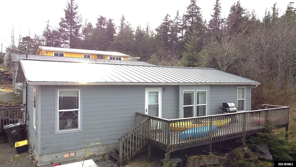 Sensible 1,064 SF home located on Ketchikan Lakes Road. This 2 bed, 2 full bath home has a good size kitchen/dining area with tiled floor extending through half of the interior, with the living room and both bedrooms carpeted. The living room area is sizeable with vaulted ceilings and a separate side entry to access the deck. Metal roof, cement board lap siding, & vinyl windows at the exterior to withstand the weather conditions. The 8,690 SF of land allows space for your ideas of further development in the back yard area!