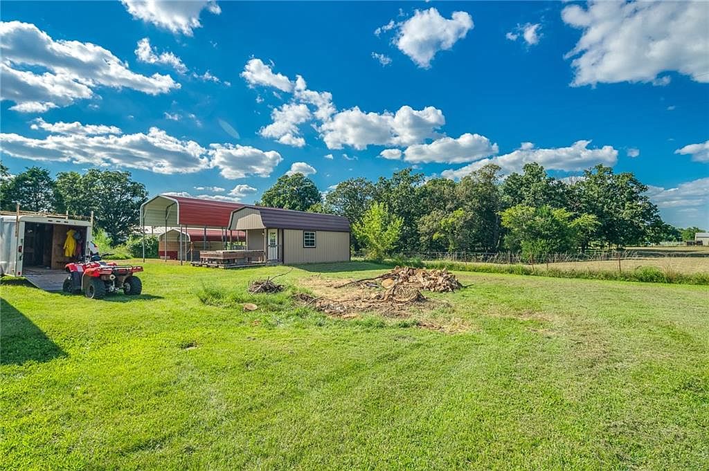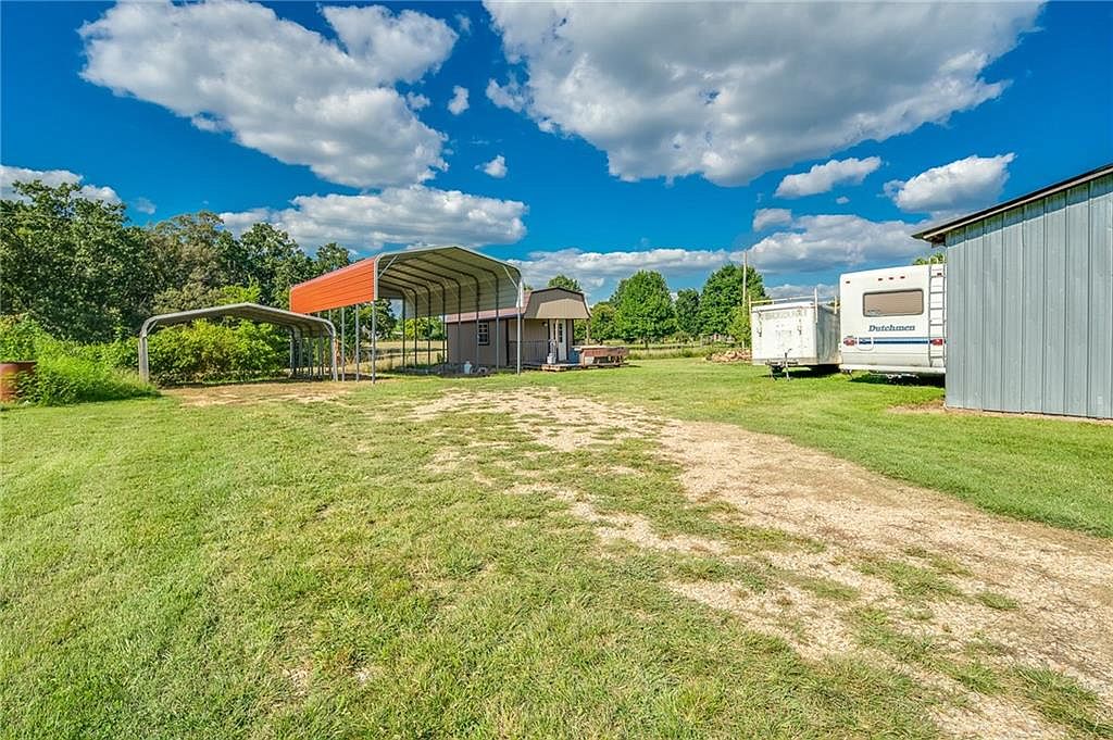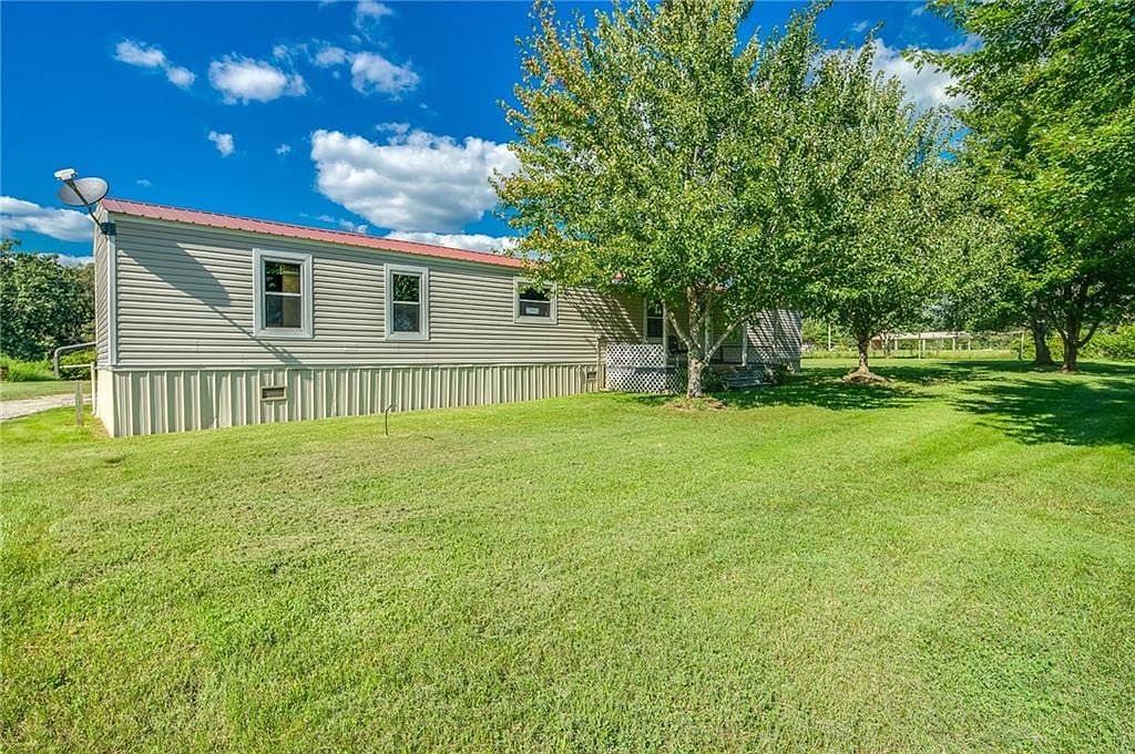 Close to downtown Pea Ridge but with a nice country setting! Great single-wide on almost 1 acre - 2 lots, new kitchen, new water heater, new heat pump, more! 3 carports, 10x12 Morgan Building, 12x24 cabin (fully wired, own breaker-box, walls insulated, hot tub on porch) Awesome above-ground storm shelter, great barn with workshop. Full RV hookup behind barn includes septic use. 2 walk-in showers. Living room has vaulted ceiling and is open to the kitchen. Kitchen has plenty of cabinet space and an eat-in space. Public water but has a well as an alternative water source. Enjoy the natural surroundings! Don't miss this one!
