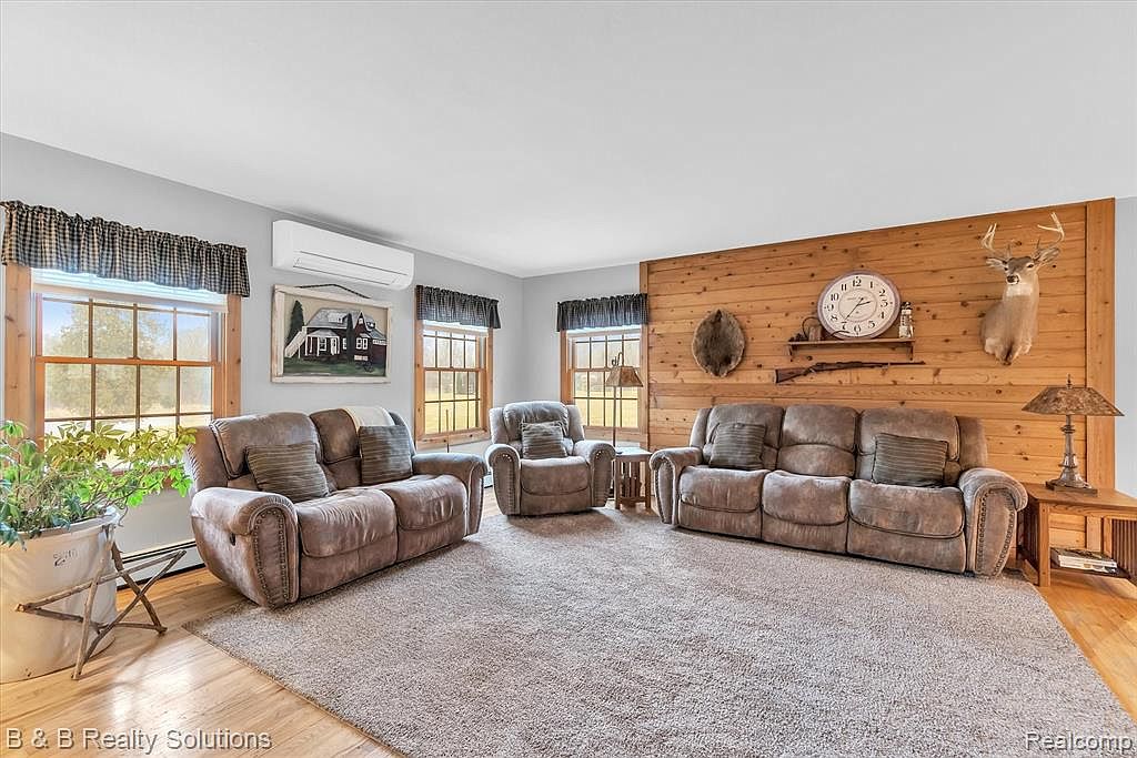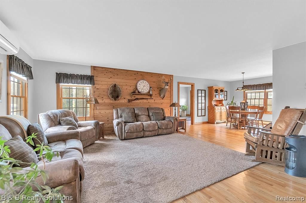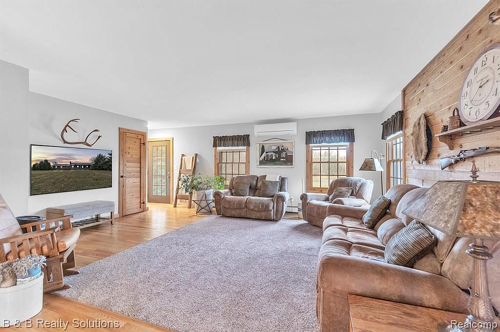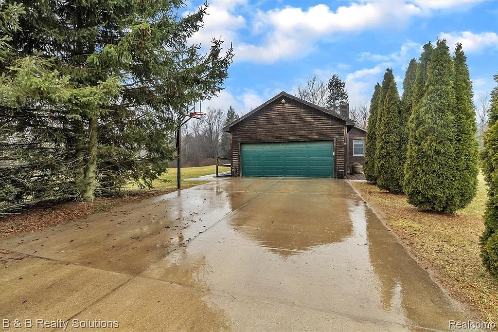 Sprawling and secluded 4 bedroom , 2 bath ranch sitting on 16+ acres. Large barn with lean-to. 2 car attached garage. North Branch Schools. Updates including new roof and well in 2019, mini split A/C 2018, pool and cement patio 2021, and all new appliances 2019. Wood flooring throughout the entire main level. Huge master bedroom with its own bath. 1st floor laundry and mud room. 2000 sq foot of basement, half of it finished with the rest partially finished. 1 lower bedroom with 3 others ready to be finished, potentially making this a 7 bedroom home! There is an Entertainment area as well as a work out room, along with endless storage space. Chicken coop, and wood shed with wood boiler for supplement heating. Pond out front with some wooded acreage , plentiful with wildlife. Country living with a short distance to M-24 for commute. Call to set up a showing today!