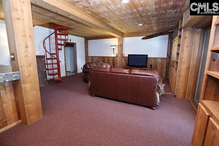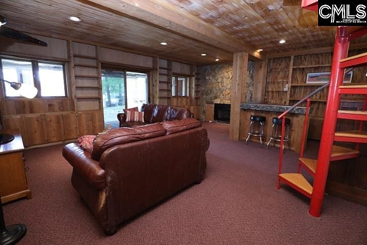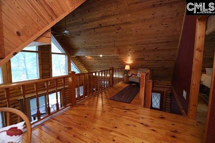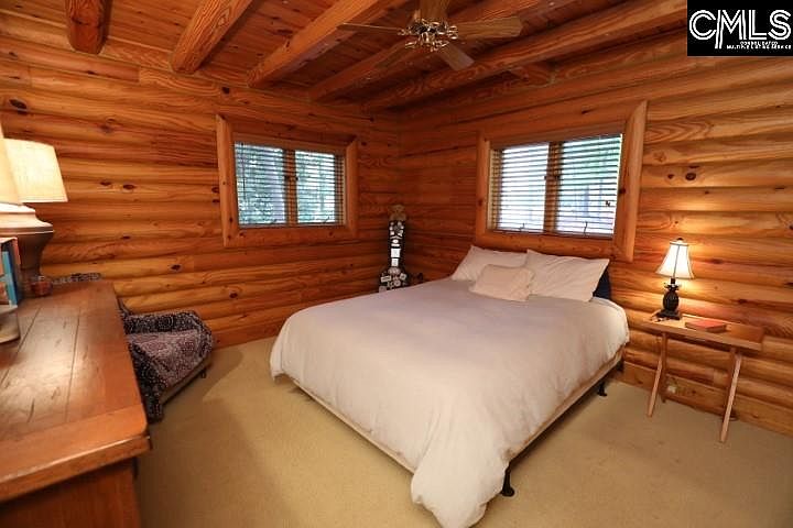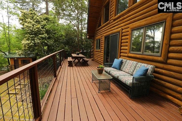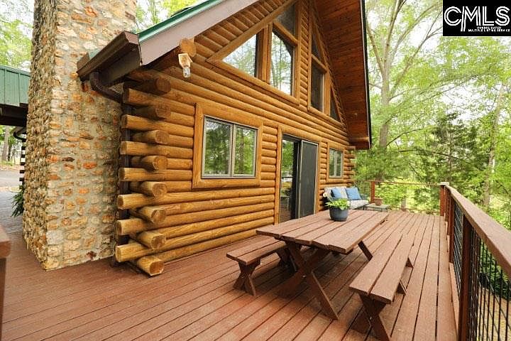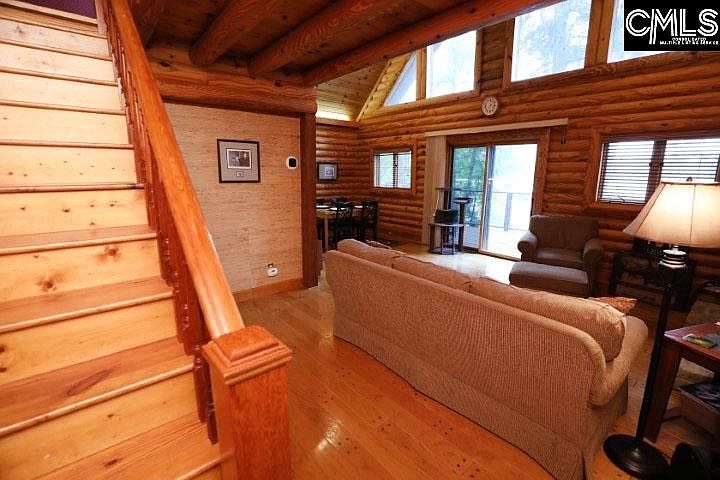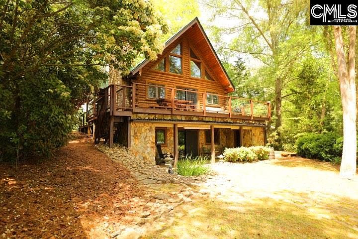 A log cabin on the lake with water frontage, a dock and a boat ramp! What more could you possibly ask for? This beautiful 3 story log home has 98' feet of year round water, as well as a large wrap around porch to enjoy your morning coffee and your evening wine. The lakeside of the home features expansive windows that capture natural light and stunning views of Lake Murray. The garage and lake shed exteriors match the log home, providing you with an all around cabin feel. Two bedrooms and two full bathrooms give you dual masters to choose from. The finished basement can be accessed from the sliding glass doors that take you out to the backyard and dock or you can descend the spiral staircase to the lower level where you will find a bar area, fireplace and a massive laundry/storage area. The uses for this area are endless. The loft area on the 2nd floor provides privacy for an office or a reading nook where you can still enjoy the beautiful views through the front glass windows. Home has been well maintained. Many upgrades were completed in 2018 including new roofs on the home, garage and lake shed; new gutters on the home; new hot water heater; new wrap around deck, an Ecobee smart thermostat and Velux Solar Powered Fresh Air Skylights. This would make an exceptional hideaway on the lake, airbnb or just a relaxing place to call home.