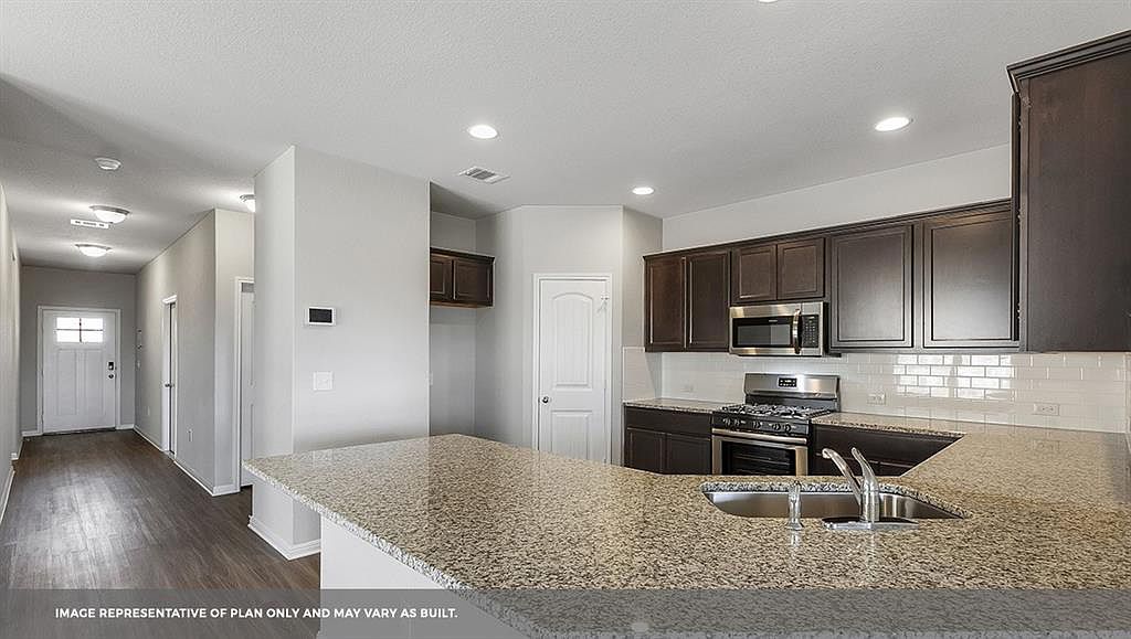 UNDER CONSTRUCTION - EST COMPLETION IN MAY. Only 3 left of this popular 1 story Reagan floor plan in beautiful Sorento featuring 1922 s.f. with a kitchen bar open to dining and living room. 2 1/2 garage for 2 cars and extra storage. His and her closets in primary bath. Beautiful dark cabinets with quartz counters and pearl colored vinyl plank flooring . Ceiling fans in main bedroom and living room. Full gutters, irrigation, landscaping, smart home tech package and more. Enjoy going to Lake Pflugerville across the street from Sorento or one of the 2 swimming pools in the community.