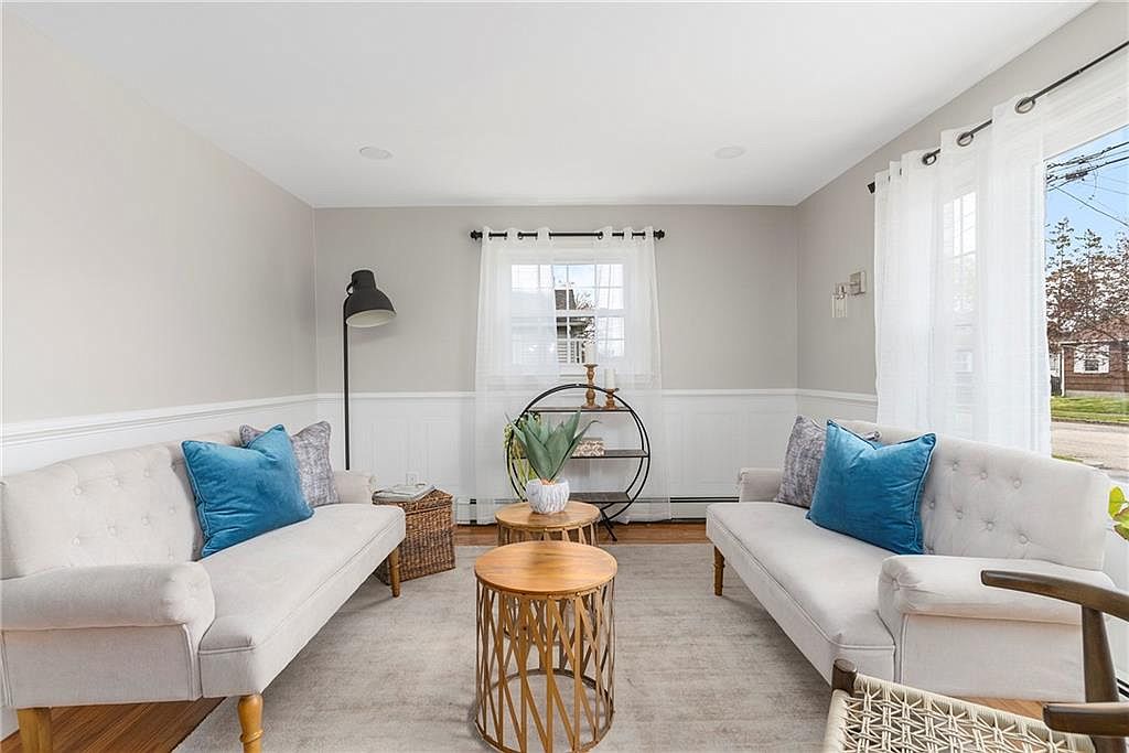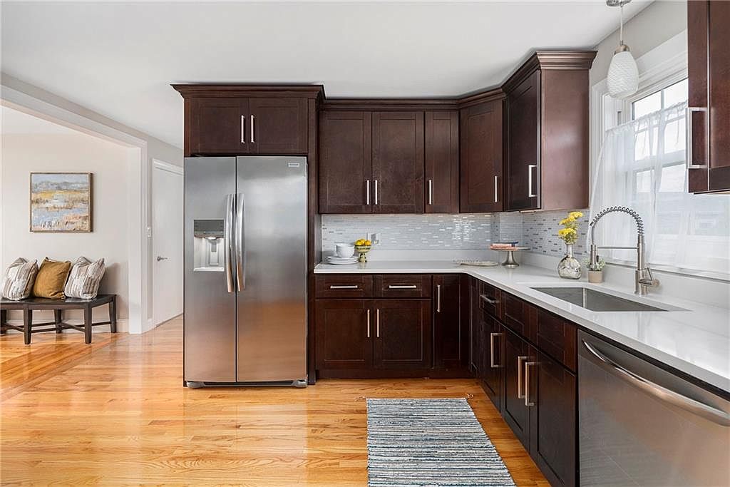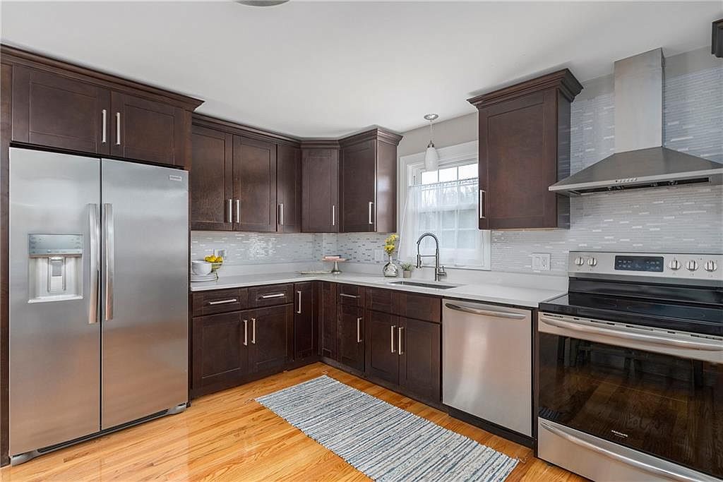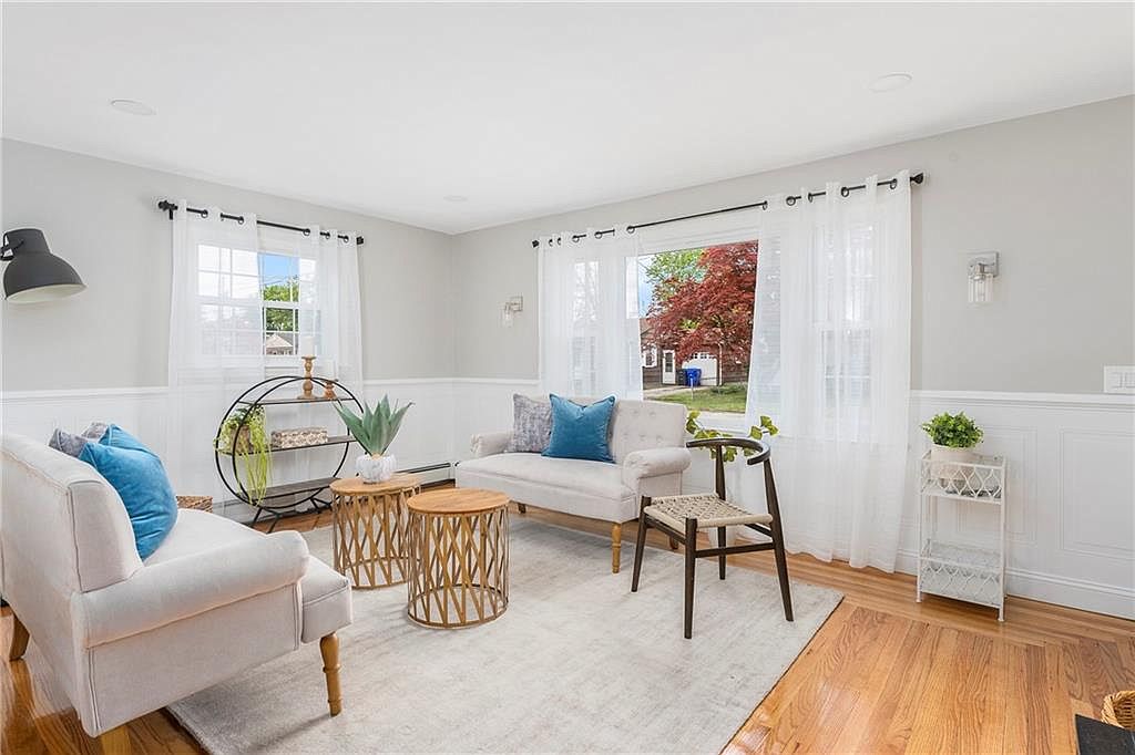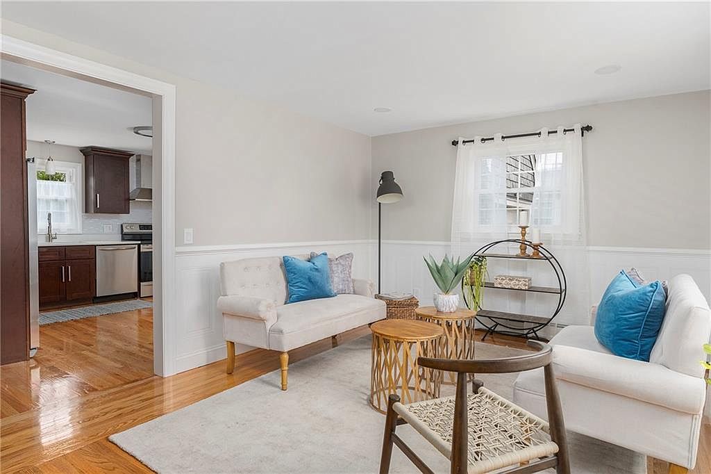 This beautiful and sunny turnkey Cape Cod located in desirable Rumford has so much to offer! With four generously sized bedrooms there is no lack of space to spread out. The newly remodeled kitchen features shaker style cabinets, under cabinet lighting, quartz countertops and stainless steel appliances. Hardwood floors have been freshly redone and flow throughout the entire home. Recent upgrades include a young roof, replacement windows and a new oil tank. Some other great features include an attached garage, fenced-in yard, easy highway access, close proximity to shopping and the bike path, all while being located on a cul-de-sac. Don't wait, schedule your tour today!