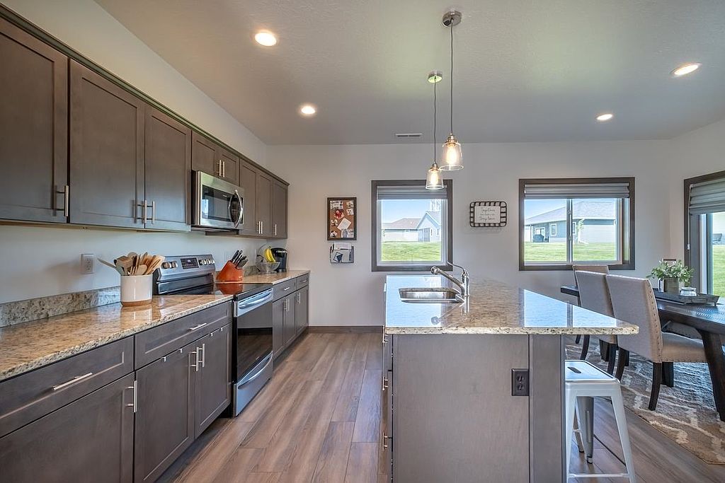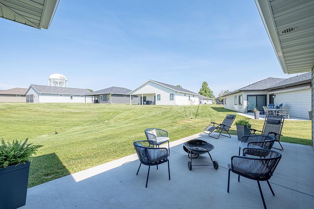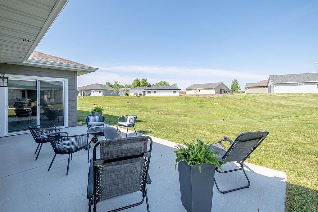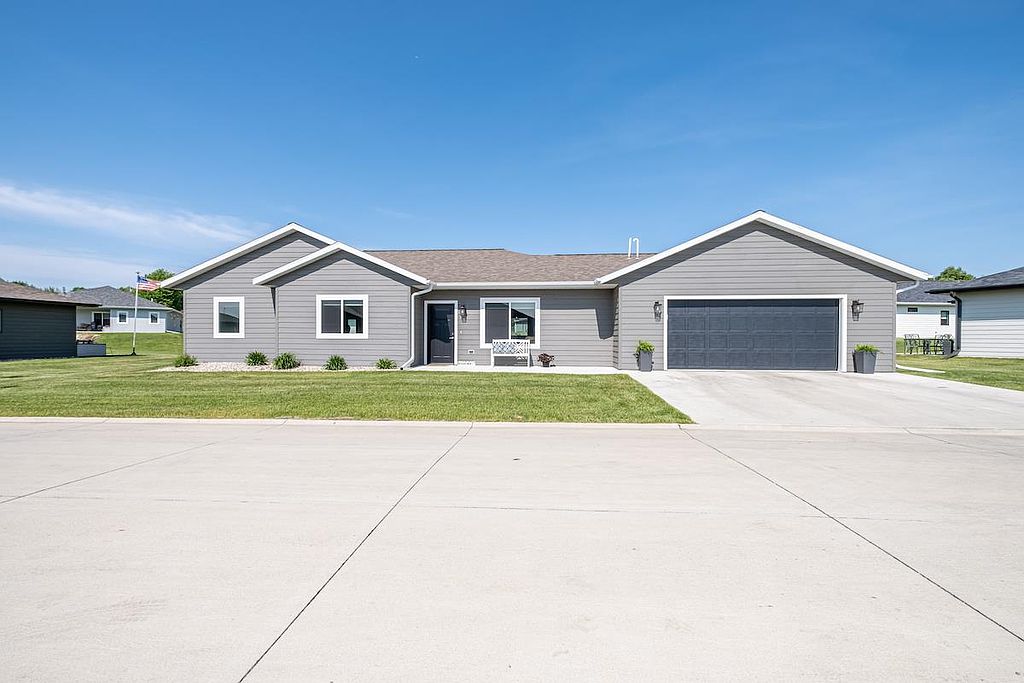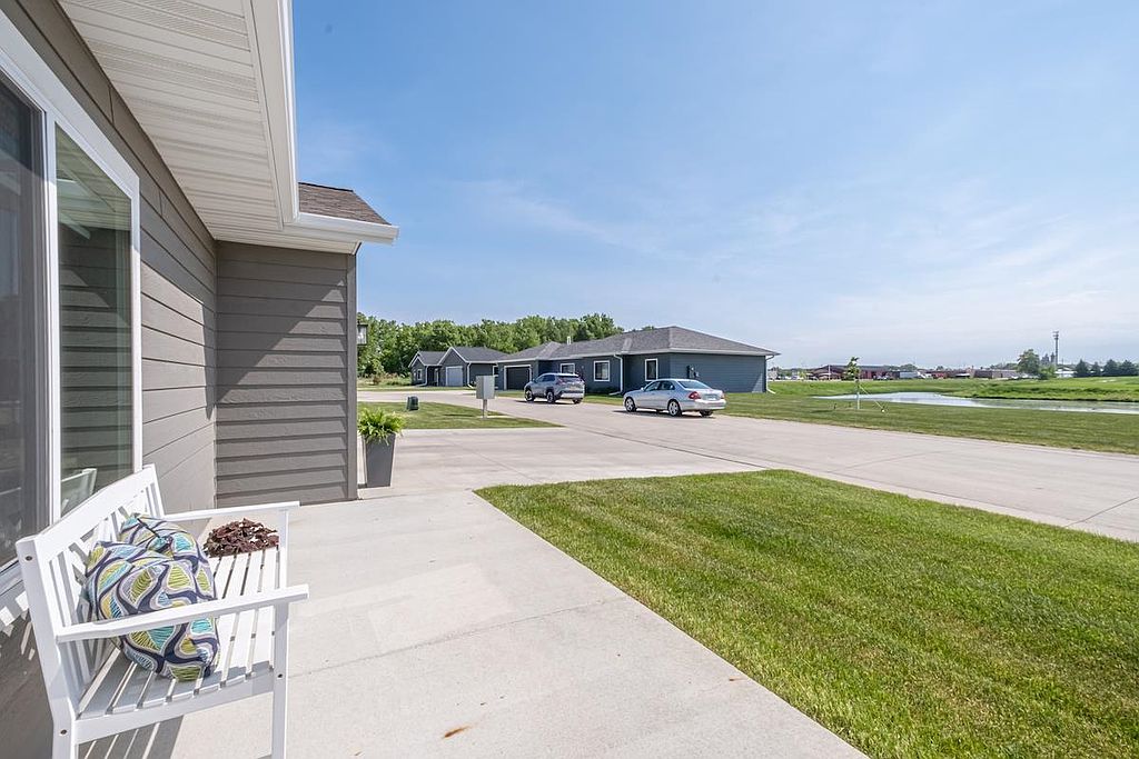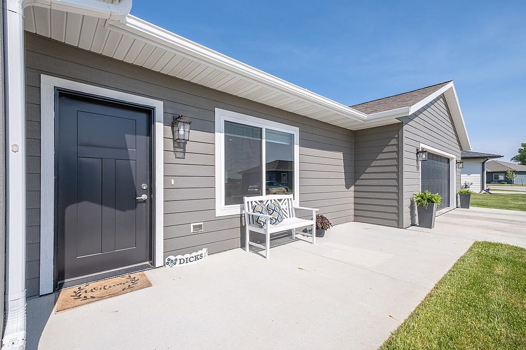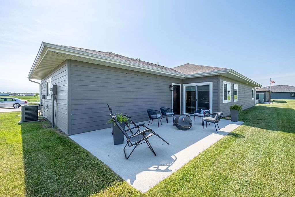 A beautiful, recent build perfect for young professionals or a new family! This 3 bedroom, 2 bathroom home offers a great open floor plan with a kitchen and dining area that opens to a patio surrounded by sunny green space. The windows are dressed with Hunter Douglas blinds. The double garage has ample shelving for storage and is heated, providing comfort in any season. Move in and enjoy!