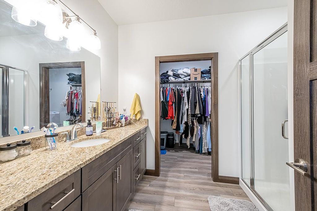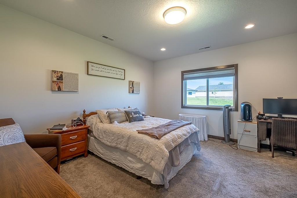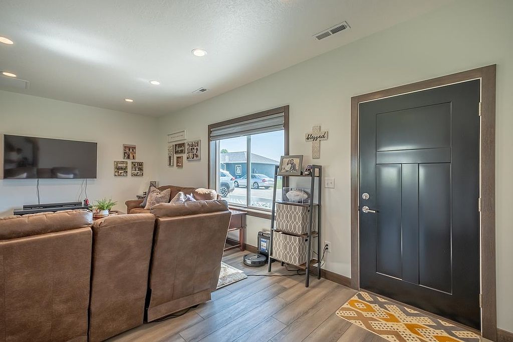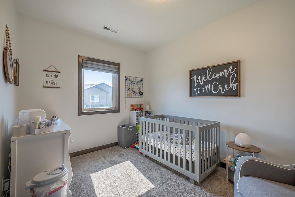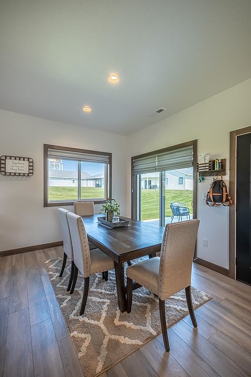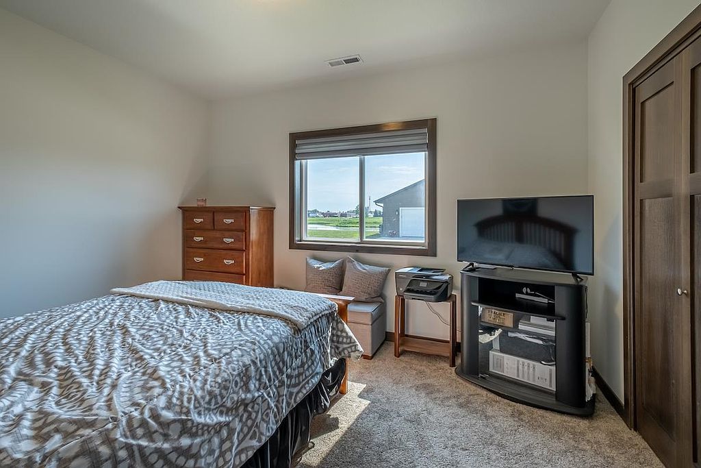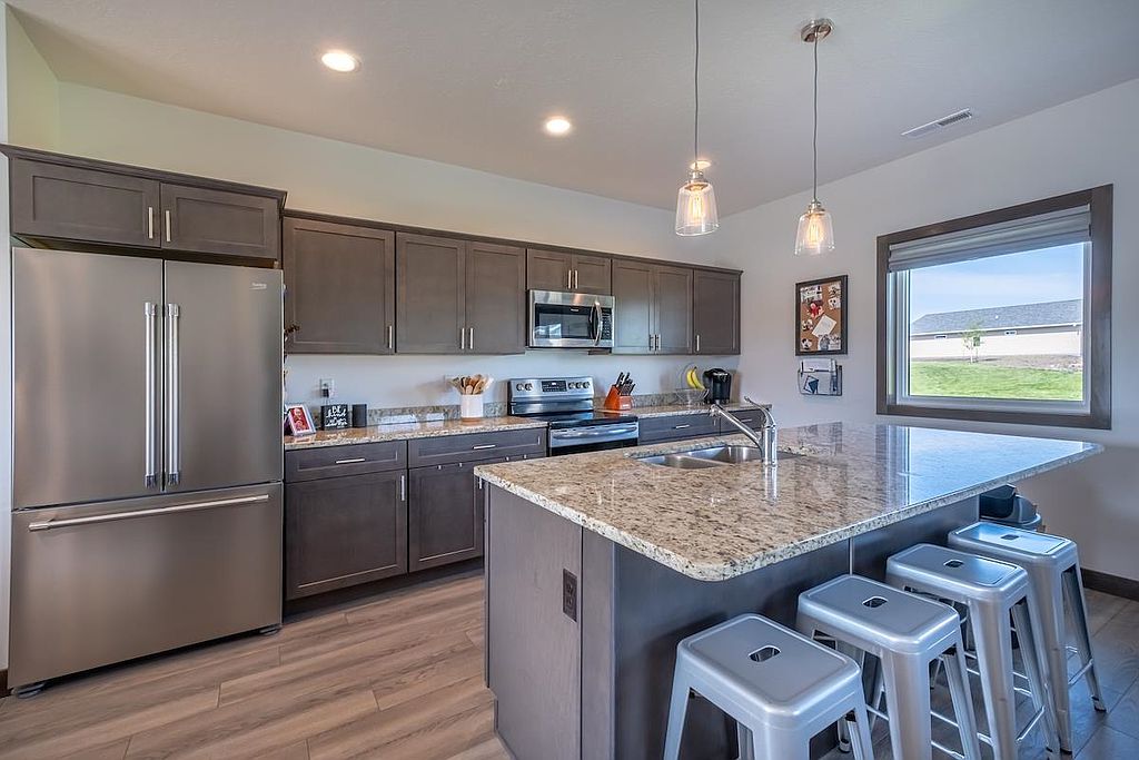 A beautiful, recent build perfect for young professionals or a new family! This 3 bedroom, 2 bathroom home offers a great open floor plan with a kitchen and dining area that opens to a patio surrounded by sunny green space. The windows are dressed with Hunter Douglas blinds. The double garage has ample shelving for storage and is heated, providing comfort in any season. Move in and enjoy!
