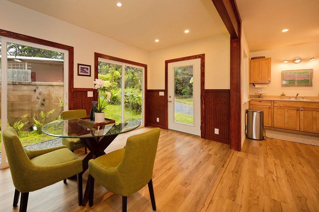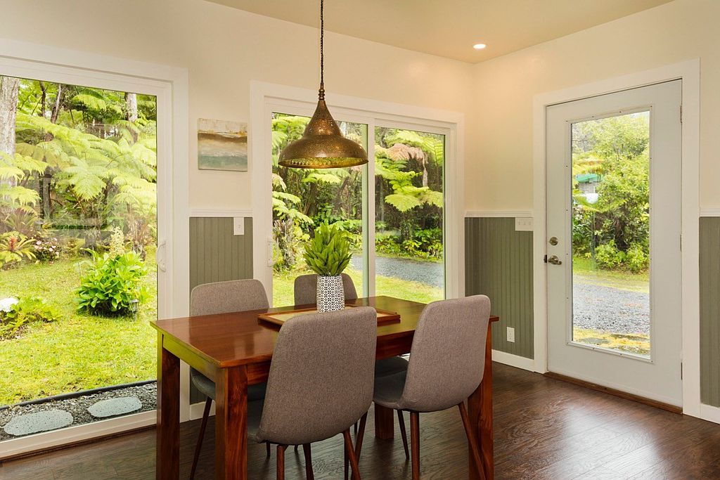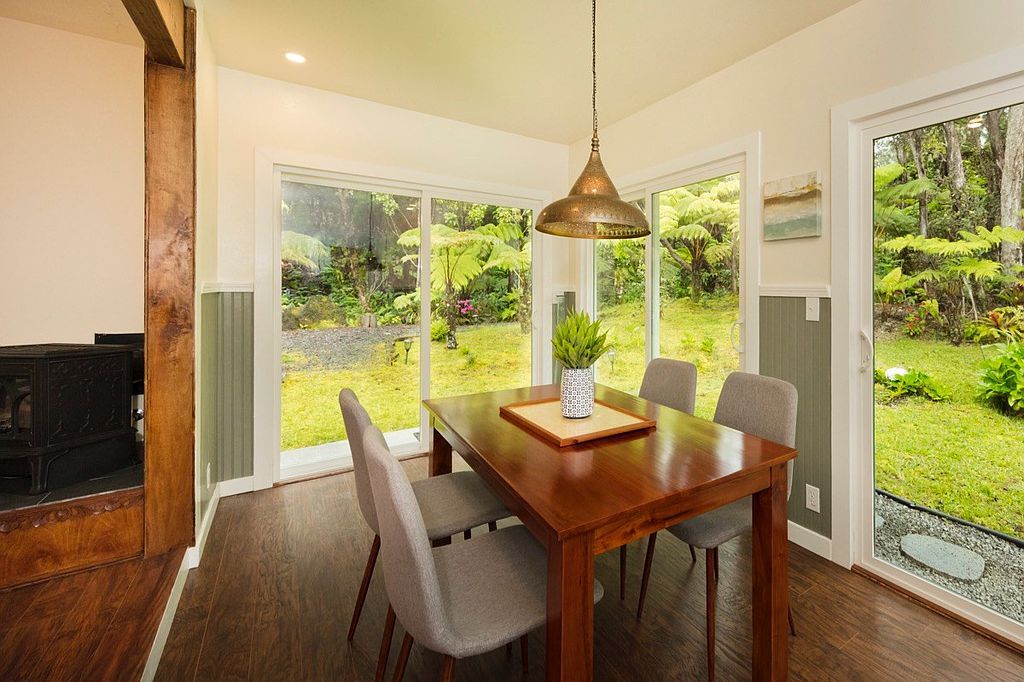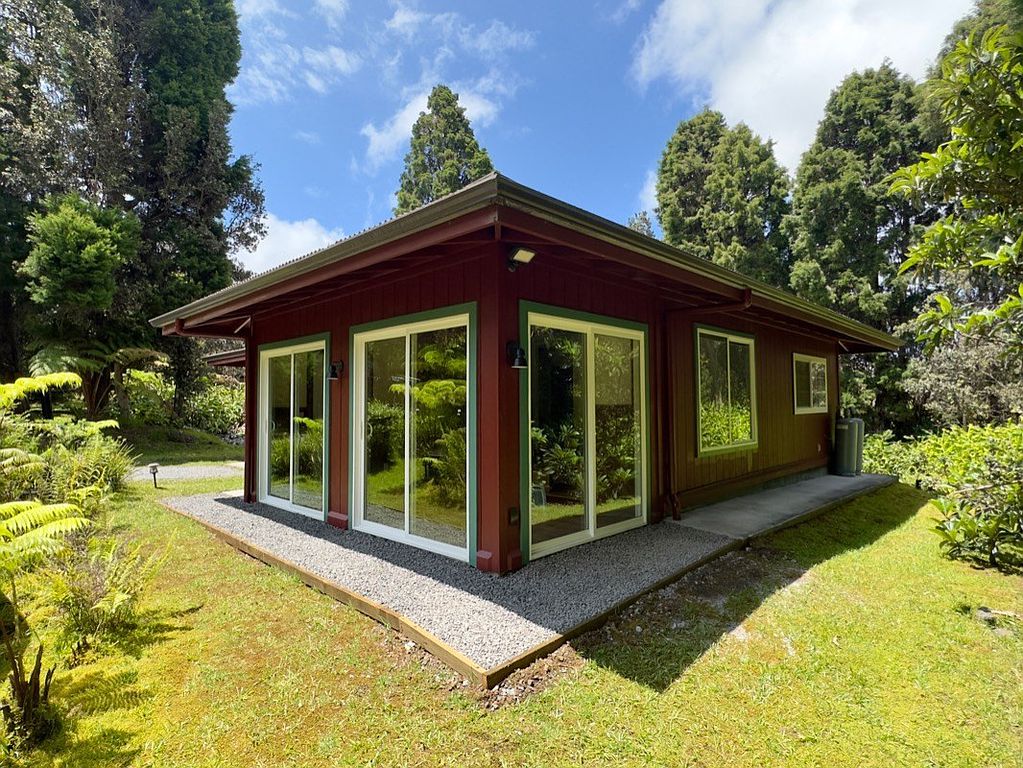 Immerse yourself in a tropical paradise. Two of the most adorable cottages in Volcano Village on tropical and forested Ala Nui Iiwi Road. Each residence hosts a full living room, a full kitchen, one bedroom, one full bathroom and an enclosed lanai with walls of glass that bring your beautiful exterior grounds into your home. There are so many possibilities here.. Live in one and host your guests in the other. Extend invitations to loved ones. Use one as an office or gym. Live here full-time or part-time but once you’re here, you probably won’t want to leave. Located in the very heart of Volcano Village amid the lush tropical and natural rainforest and beautiful landscape with sun-filtered hapu'u ferns and rain-kissed ohi'a trees that attract the melodic voices of the native Volcano apapane. Relax by an open-pit fire and decompress from all the external noise. Two cottages nestled into a forested parcel at a cool elevation of approximately 3600 feet above sea level you will be pleased to get away from the heat of the lowlands. Super-fast and reliable internet service available for remote work and family fun! Happy and bright, this charming Volcano rainforest home fits right into the Volcano culture; a perfect place to simplify your life and enjoy the great outdoors of Hawaii Volcanoes National Park; conveniently located just a few miles away. Hike the trails of our awesome volcanoes and bird watch at Kipuka Pua'ulu Trail. This is the 'Bird Park' Trail that is especially attractive to native birds because of the environment. Just 20 minutes away, is the District of Ka'u and Punalu'u Black Sand Beach. Enjoy the swimming and sunbathing but don't mess with the turtles! Green Sand Beach is just another 20 minutes further. Meet your neighbors at one of the best Sunday morning and Thursday evening Farmer's Markets. Fresh fruits, food, fun. Come to Volcano.