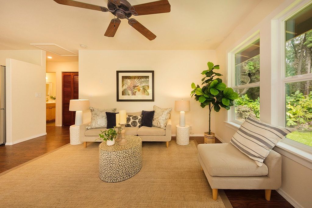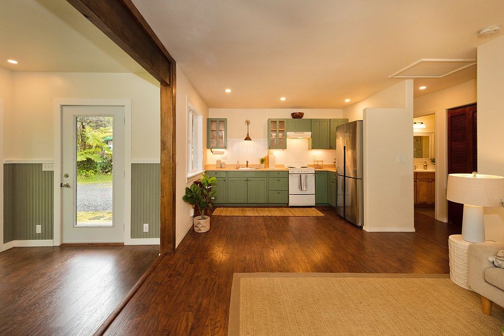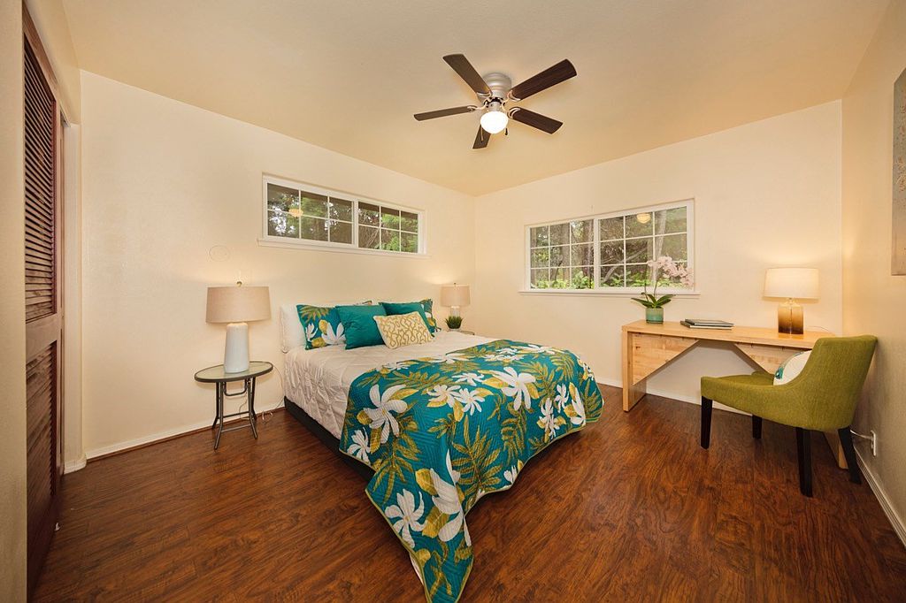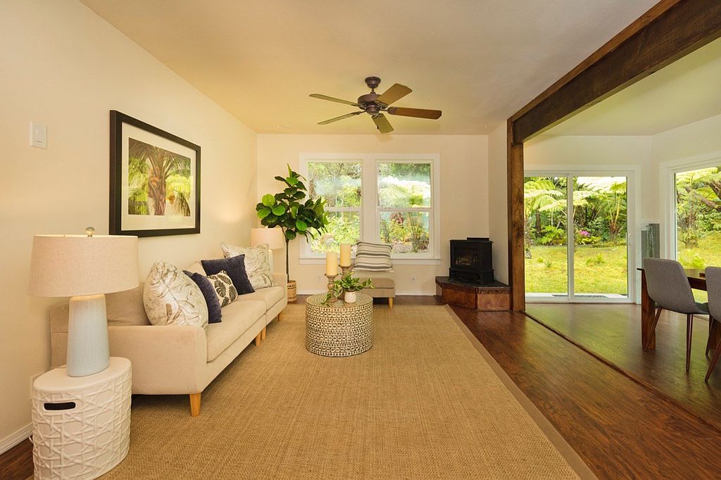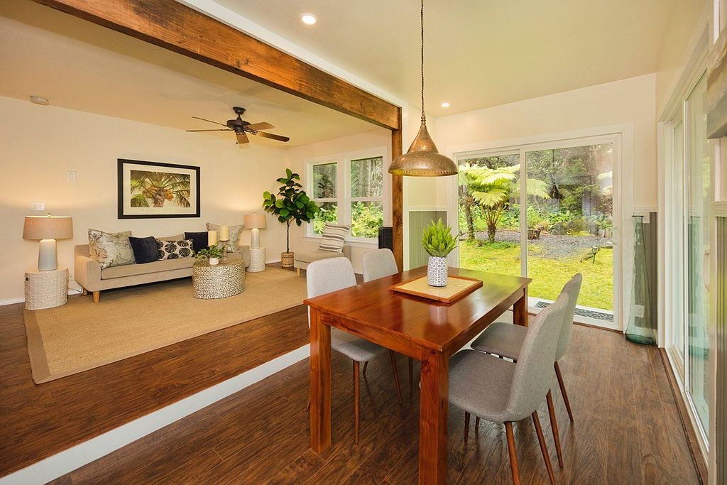 Immerse yourself in a tropical paradise. Two of the most adorable cottages in Volcano Village on tropical and forested Ala Nui Iiwi Road. Each residence hosts a full living room, a full kitchen, one bedroom, one full bathroom and an enclosed lanai with walls of glass that bring your beautiful exterior grounds into your home. There are so many possibilities here.. Live in one and host your guests in the other. Extend invitations to loved ones. Use one as an office or gym. Live here full-time or part-time but once you’re here, you probably won’t want to leave. Located in the very heart of Volcano Village amid the lush tropical and natural rainforest and beautiful landscape with sun-filtered hapu'u ferns and rain-kissed ohi'a trees that attract the melodic voices of the native Volcano apapane. Relax by an open-pit fire and decompress from all the external noise. Two cottages nestled into a forested parcel at a cool elevation of approximately 3600 feet above sea level you will be pleased to get away from the heat of the lowlands. Super-fast and reliable internet service available for remote work and family fun! Happy and bright, this charming Volcano rainforest home fits right into the Volcano culture; a perfect place to simplify your life and enjoy the great outdoors of Hawaii Volcanoes National Park; conveniently located just a few miles away. Hike the trails of our awesome volcanoes and bird watch at Kipuka Pua'ulu Trail. This is the 'Bird Park' Trail that is especially attractive to native birds because of the environment. Just 20 minutes away, is the District of Ka'u and Punalu'u Black Sand Beach. Enjoy the swimming and sunbathing but don't mess with the turtles! Green Sand Beach is just another 20 minutes further. Meet your neighbors at one of the best Sunday morning and Thursday evening Farmer's Markets. Fresh fruits, food, fun. Come to Volcano.