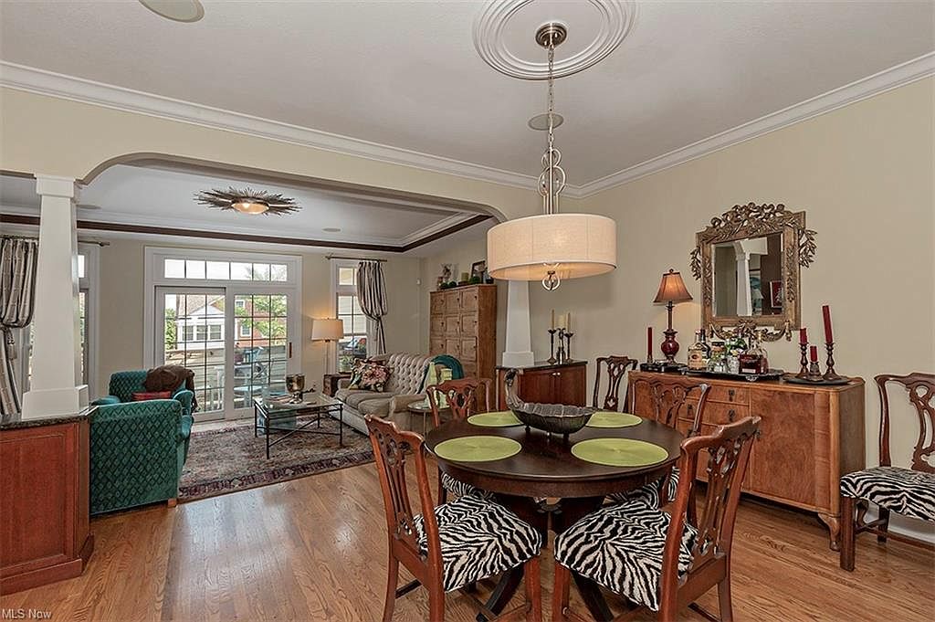 Fabulous 3 story townhouse with 2 bedrooms on third floor and in home office/3rd bedroom on first. Exquisitely maintained, hardwood floors throughout first and second floors.The main level offers a beautiful cherry kitchen with breakfast bar, newer stainless steel appliances, granite countertops, newer tile backsplash and opens to the formal dining room. Living room with fireplace and sliding patio door opens to charming deck. Surround sound and a half bath completes the main level. The third floor is home to the master bedroom with en suite bath, dual sink vanity, jetted tub and generous closets. Another spacious bedroom, handsomely remodeled full bath and laundry with washer/dryer to remain. Private Brick patio in front and spacious deck in back offers great outdoor experiences and is the perfect spots for those spring and summer evenings. Attached 2 car garage. Water tank 2020, newer lighting throughout, 1/2 bath vanity replaced, newer countertop and sinks in Master Bath. Walk to the popular Van Aken shopping district and Thornton Park. Excellent location, close to hospitals, universities, cultural centers, shopping and restaurants galore.