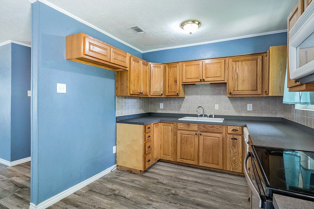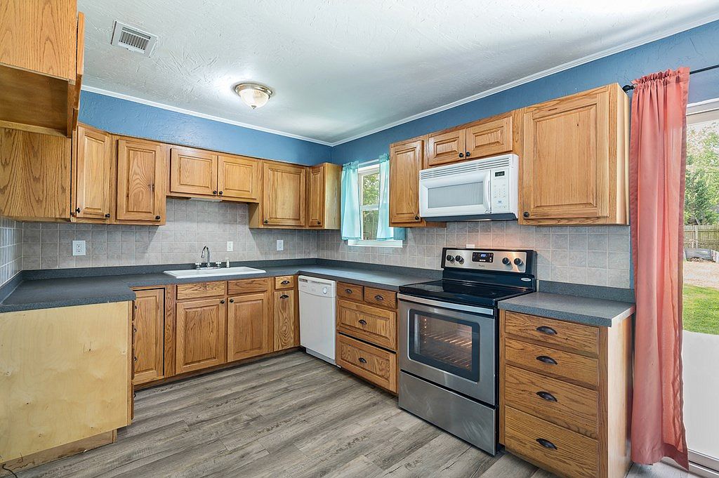 SWEET & SIMPLE! Take advantage of this super clean little starter home that sits on 2 lots and has a huge back yard...one even large enough for that in ground pool! Custom cabinets, range, DW, MW and disposal in kitchen. Back yard fully fenced with extra large storage building. An affordable option to renting yet you will own it!