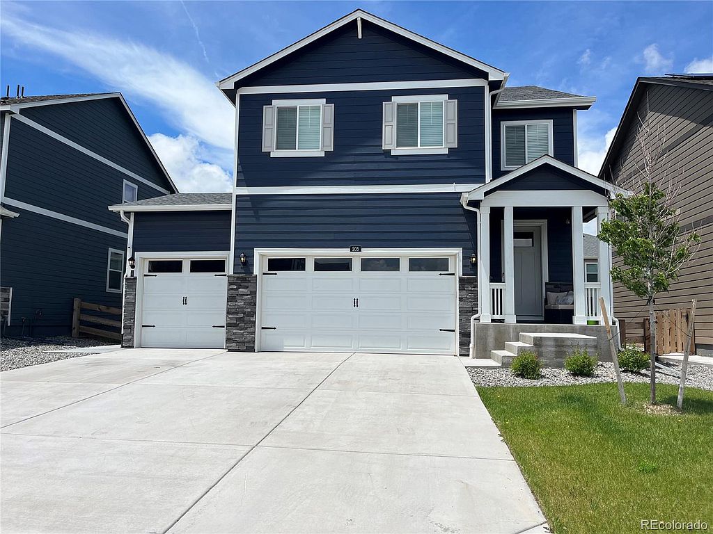 Discover a stunning 2-story home flooded with natural light and an open floor plan. Boasting 5 bedrooms, 3 baths, and a 3-car garage, this spacious residence is perfect for a growing family. The great room, kitchen, and dining room seamlessly blend together, creating a welcoming atmosphere for gatherings and entertaining. The main floor presents a convenient bedroom with a full bath, offering versatility for guests or multigenerational living. Upstairs, a generous primary suite awaits, providing a private retreat away from the other 3 bedrooms. Indulge in the expansive walk-in closet and the upgraded 4-piece master bathroom with quartz countertops. The secondary bathrooms also feature elegant quartz countertops.Enjoy the convenience of an upstairs laundry room, complete with a washer and dryer that come with the home. Rich decor and modern gray cabinetry are complemented by beautiful granite kitchen counters and a subway tile backsplash. The kitchen is equipped with stainless steel appliances, including a gas range, microwave, and dishwasher. Luxury vinyl floors adorn most of the main level, offering both style and durability.This home is packed with desirable features such as an 8' front door, 2-panel interior doors, A/C, and a tankless water heater for energy efficiency, and window coverings. The 8' tall garage doors feature smart openers, providing ample space for vehicles and storage. Smart Home technology enhances daily life with video doorbell, thermostat, door lock, lighting control, and more. Nestled in a family-friendly neighborhood, this home offers access to a community park, playground, and picnic area, ideal for outdoor activities. Conveniently located near I-70, commuting and exploring nearby attractions is a breeze. With its open layout, upgraded features, and modern conveniences, this home presents an exceptional opportunity to enjoy a beautiful new home in a sought-after area. Don't miss out on the chance to make this stunning property your own!