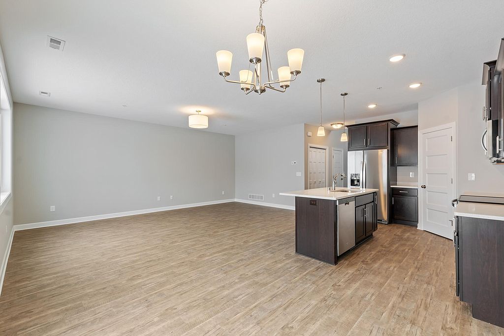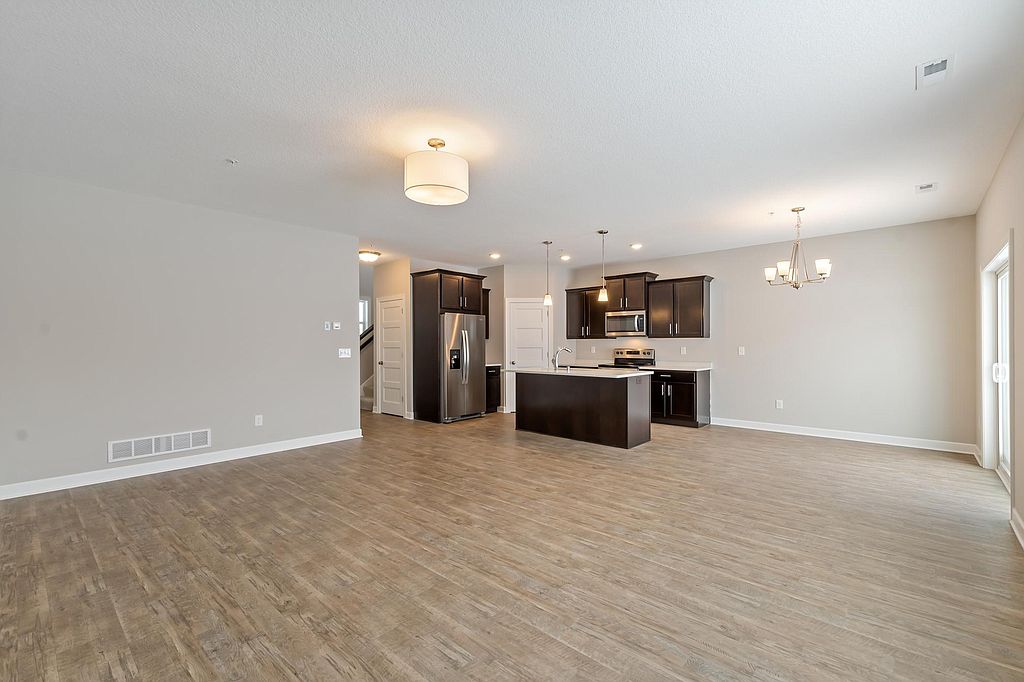 Stunning two level townhome with three stall garage! Two level foyer is a grand entrance to the open concept living, dining, KT layout - perfect for entertaining. Upper level provides four generous bedrooms, laundry room, extra storage space and a loft that overlooks the foyer. Kitchen features generous soft-close cabinetry, quartz countertops, corner pantry. Stunning lighting fixtures, large windows for natural light and top-quality finishes throughout. Convenient location near shopping and easy access to Hwy 65. Near popular Pioneer Park, Sanbrook Golf Course & Lake Francis.