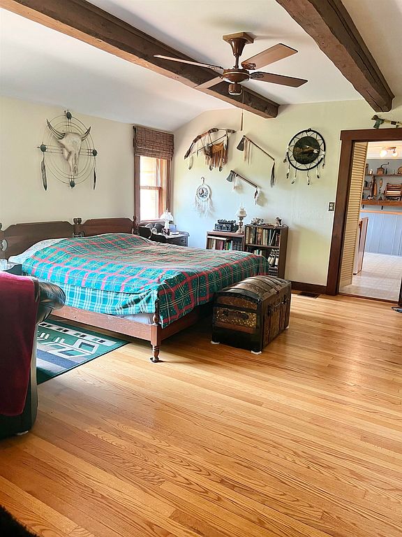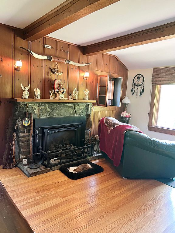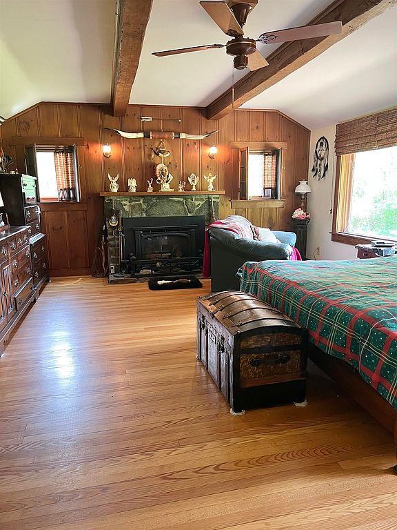 Beautifully situated, 2 bedroom home on 10 acres! Gas fireplace in the living room, hardwood floors in most rooms, remodeled bathroom with large walk-in shower. TWO detached garages, one has one bay with a tool shed, potting shed, workshop and a room upstairs. The other garage is a detached 2-bay (one bay is large enough for an RV or large boat), with another workshop and a storage room above. Grapevines, blueberry bushes, firepit, and garden spaces. Take in the mountain view from the covered porch or enjoy the sun on the open deck! Gas fireplace, hardwood floors in most rooms, remodeled bathroom with large walk-in shower. Nearly all windows are new Marvin brand. Privacy but not too 'off the beaten path'. Walk to the Rock river to cool off on hot summer days. Easy drives to Brattleboro and Mount Snow. PLEASE NO DRIVE BY! SHOWN BY APPOINTMENT ONLY.