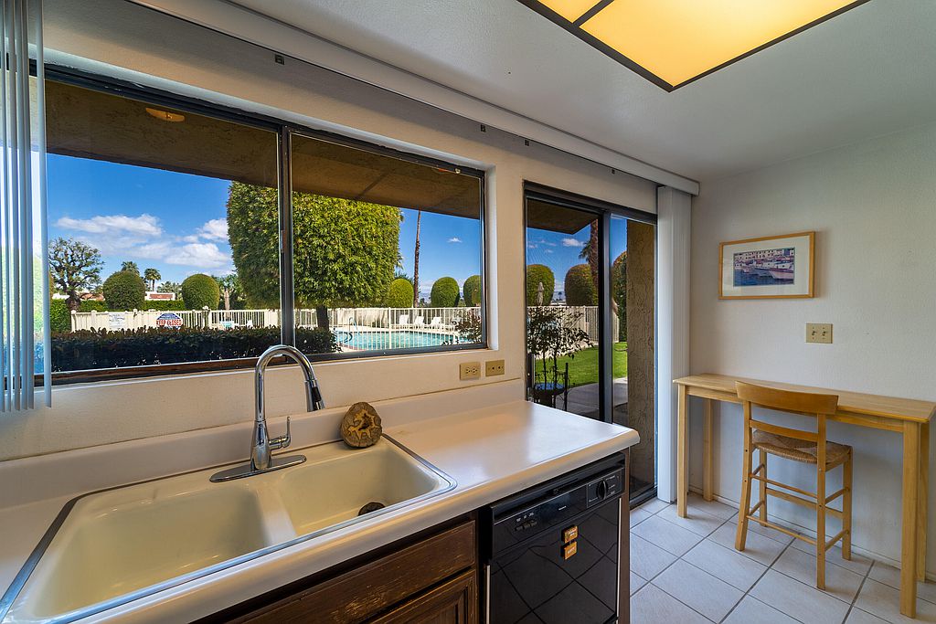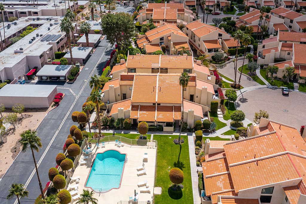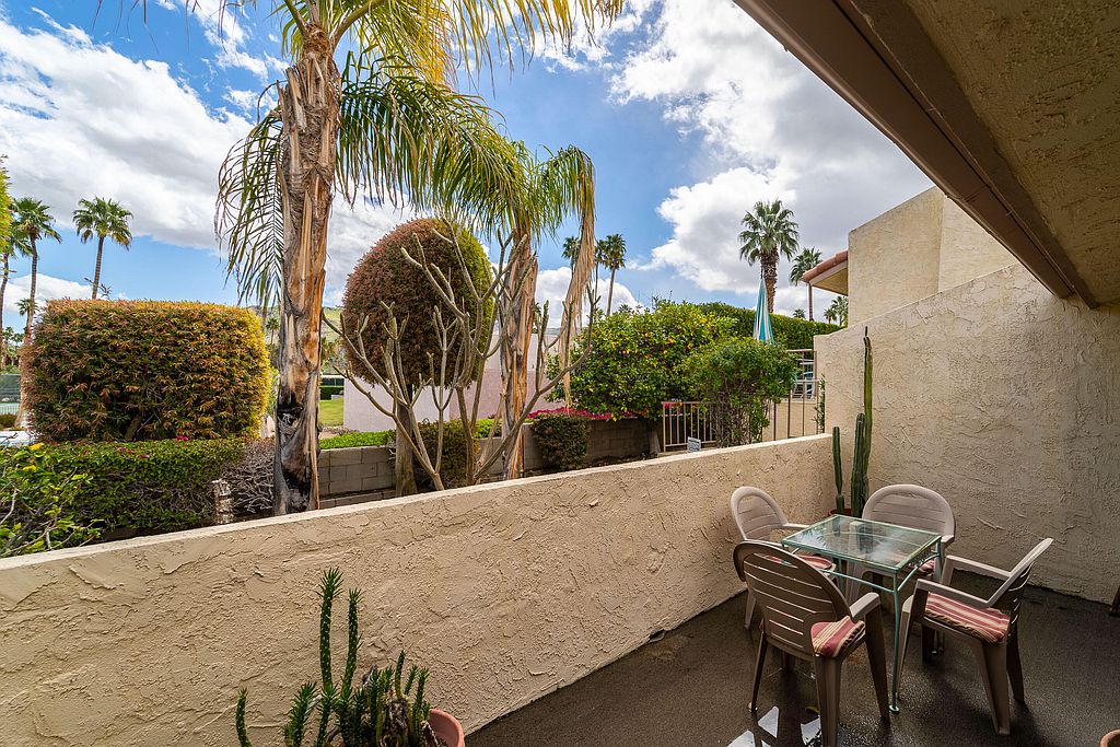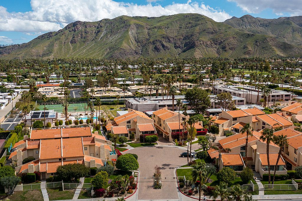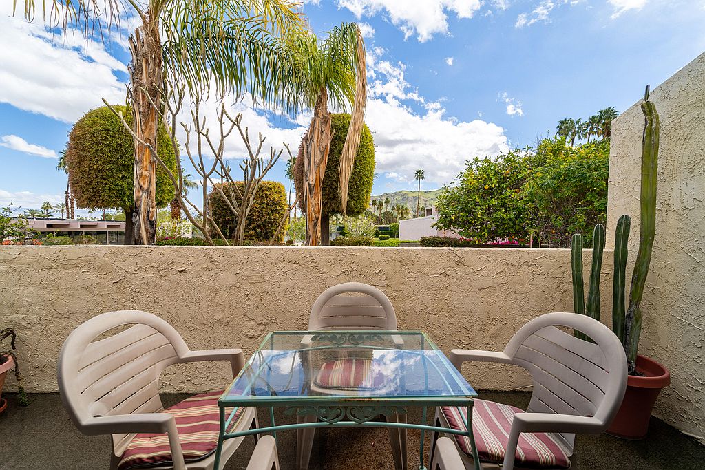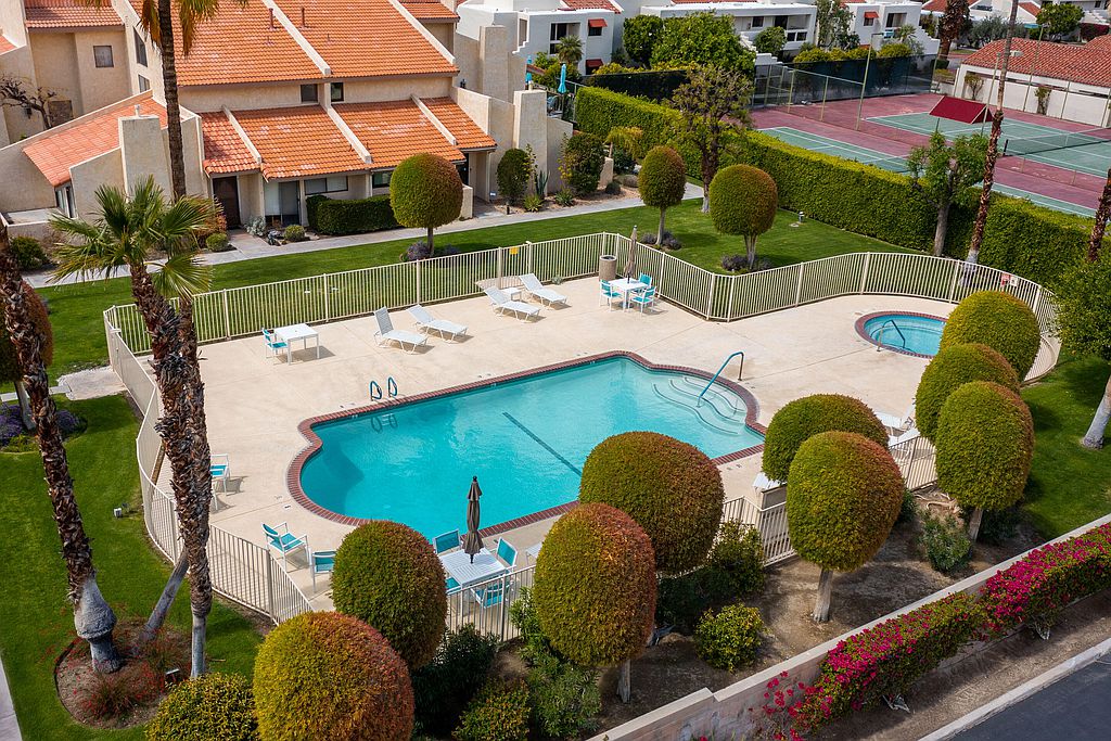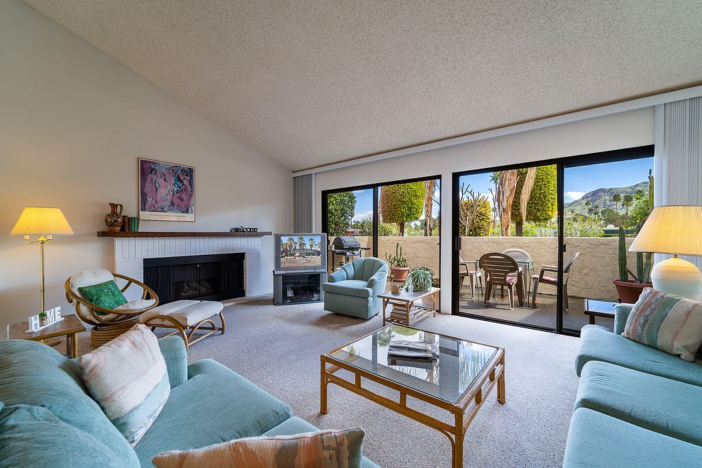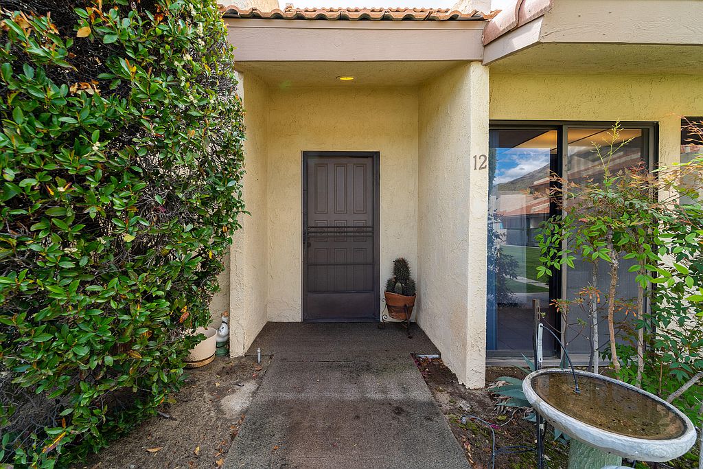 This beautiful, split-level condo is a rare gem in the heart of South Palm Springs. 49 years ago, the owner/seller chose Unit 12 as the community was being built for its location next to the pool & the views. During the 49 years of ownership, the condo has been used primarily during winter months & has been well loved & maintained. Nestled near the mountains in one of the most desirable areas of the city, this condo is situated in the pristine community of Canyon Villas. The community is perfect for those seeking a calm lifestyle in close proximity to downtown Palm Springs. The main level is bright & airy, w/ an open floor plan that flows seamlessly from the dining area to the living room. The living room boasts vaulted ceilings & a gas fireplace, providing a warm & inviting atmosphere, perfect for lounging & relaxing. The sliding doors in the living room open onto the patio that offers peek-a-boo mountain views to the west, making it the perfect spot to entertain guests. The kitchen offers tile flooring, Formica countertops, & beautiful north-facing pool & mountain views. The lower level of the condo features a convenient laundry area, ample storage, & a 2-car carport. The upper level of the condo is ultra-private and features a spacious master suite with vaulted ceilings, a walk-in closet, & western mountain views. The property is Fee Simple-Land, meaning that you own the land. The HOA covers maintenance of the building, roof, water, trash, cable TV, tennis, pools and spas.