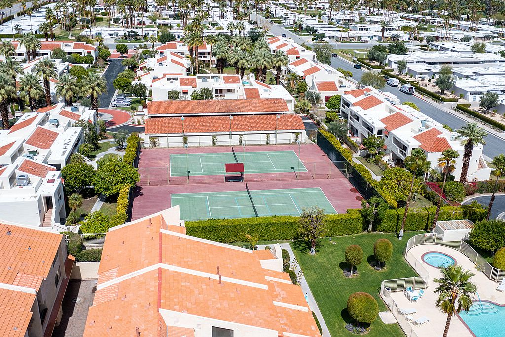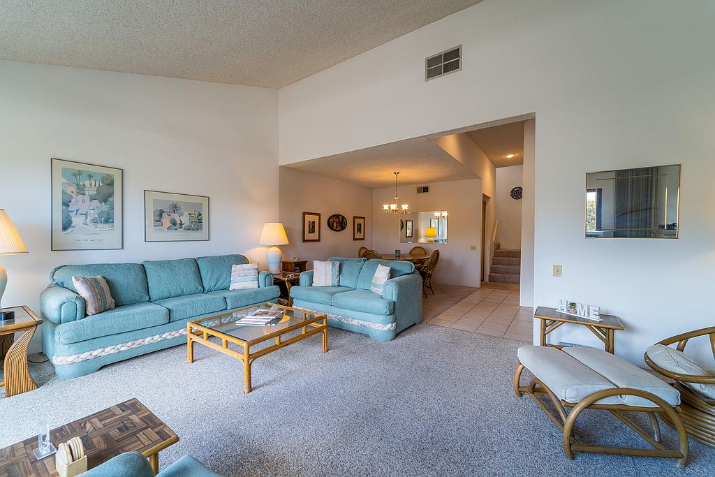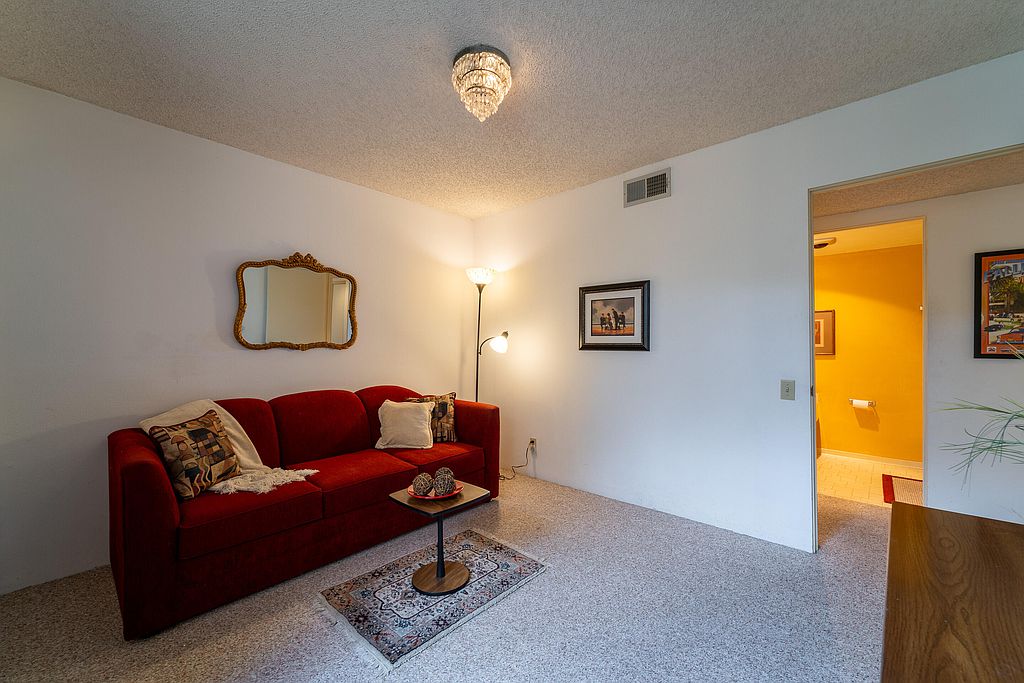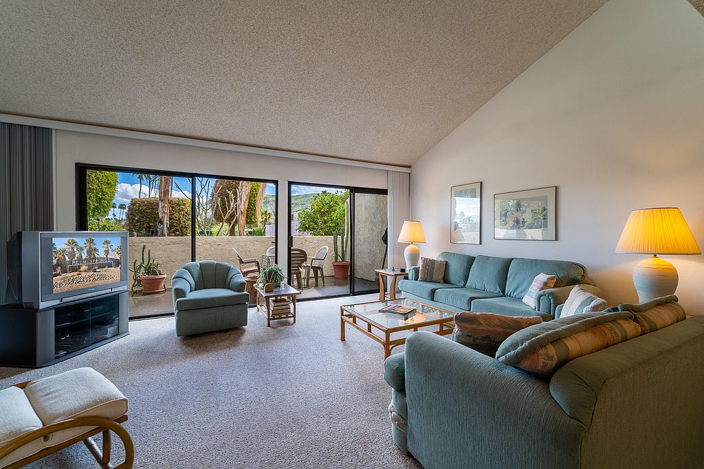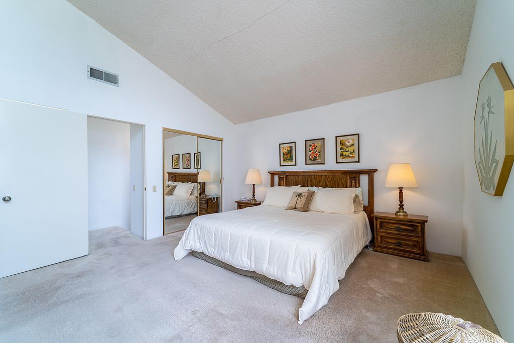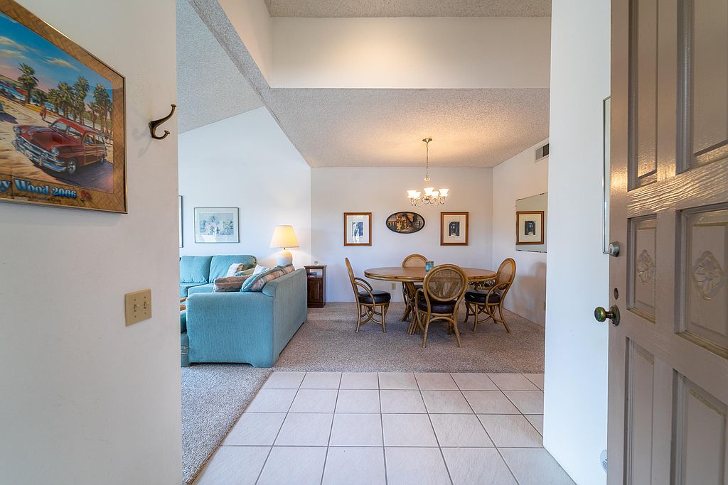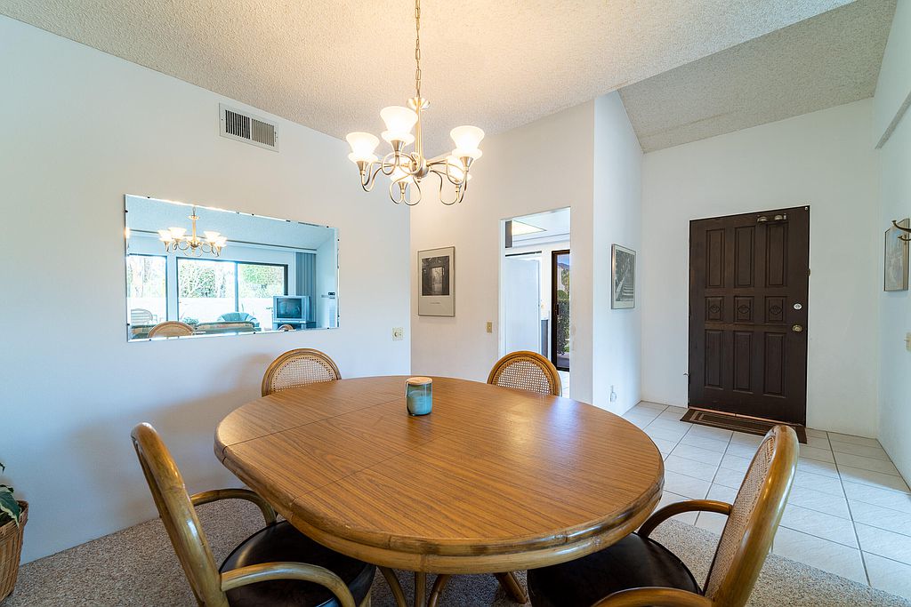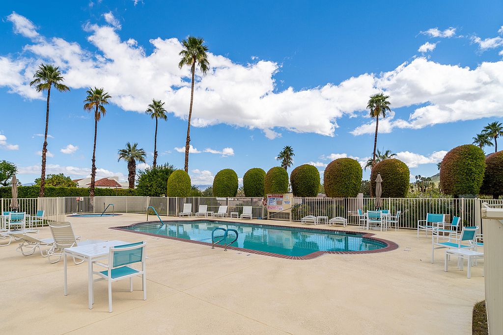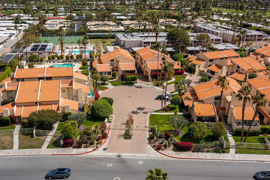 This beautiful, split-level condo is a rare gem in the heart of South Palm Springs. 49 years ago, the owner/seller chose Unit 12 as the community was being built for its location next to the pool & the views. During the 49 years of ownership, the condo has been used primarily during winter months & has been well loved & maintained. Nestled near the mountains in one of the most desirable areas of the city, this condo is situated in the pristine community of Canyon Villas. The community is perfect for those seeking a calm lifestyle in close proximity to downtown Palm Springs. The main level is bright & airy, w/ an open floor plan that flows seamlessly from the dining area to the living room. The living room boasts vaulted ceilings & a gas fireplace, providing a warm & inviting atmosphere, perfect for lounging & relaxing. The sliding doors in the living room open onto the patio that offers peek-a-boo mountain views to the west, making it the perfect spot to entertain guests. The kitchen offers tile flooring, Formica countertops, & beautiful north-facing pool & mountain views. The lower level of the condo features a convenient laundry area, ample storage, & a 2-car carport. The upper level of the condo is ultra-private and features a spacious master suite with vaulted ceilings, a walk-in closet, & western mountain views. The property is Fee Simple-Land, meaning that you own the land. The HOA covers maintenance of the building, roof, water, trash, cable TV, tennis, pools and spas.