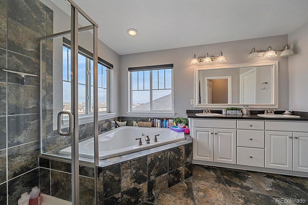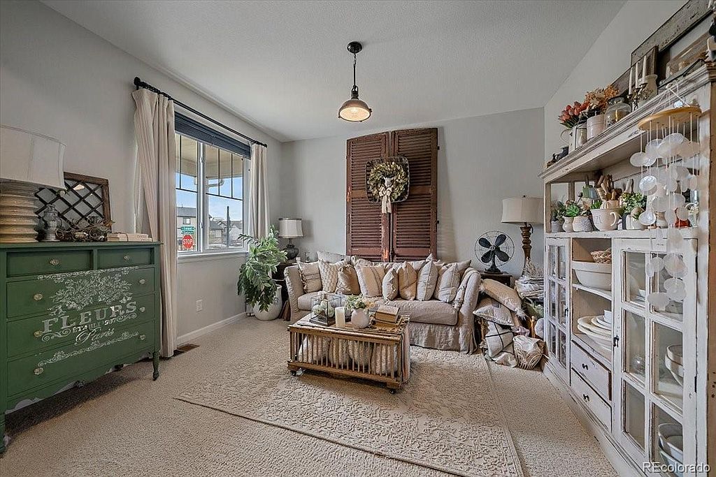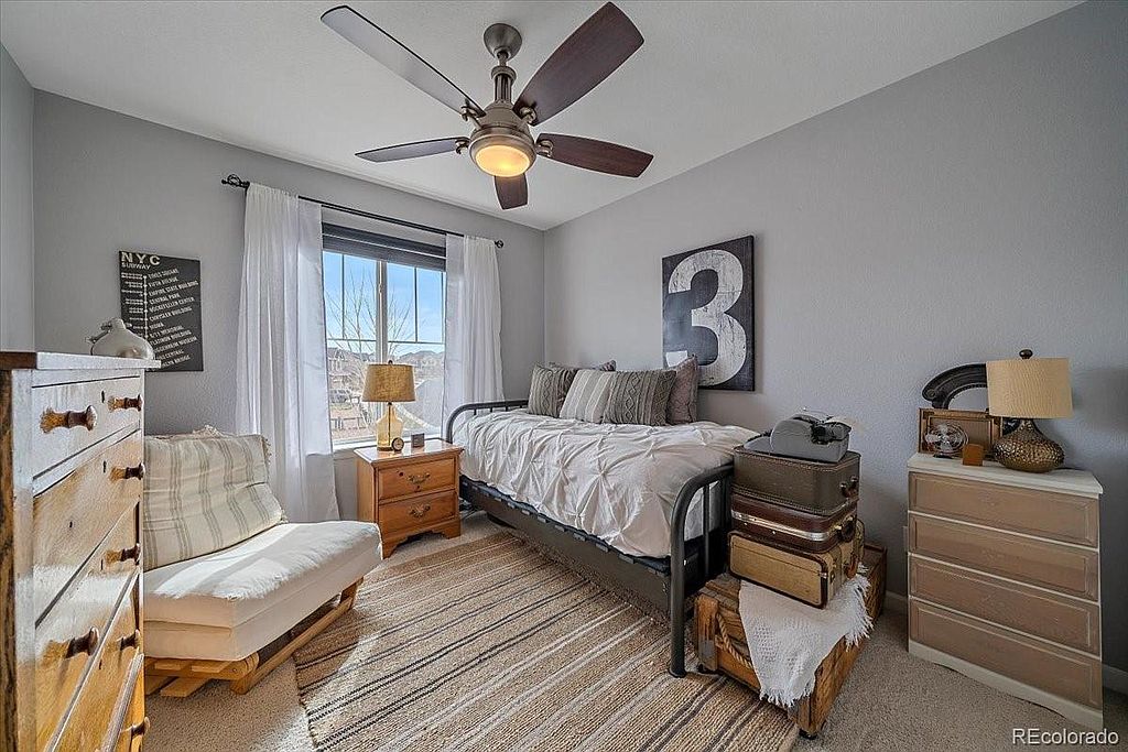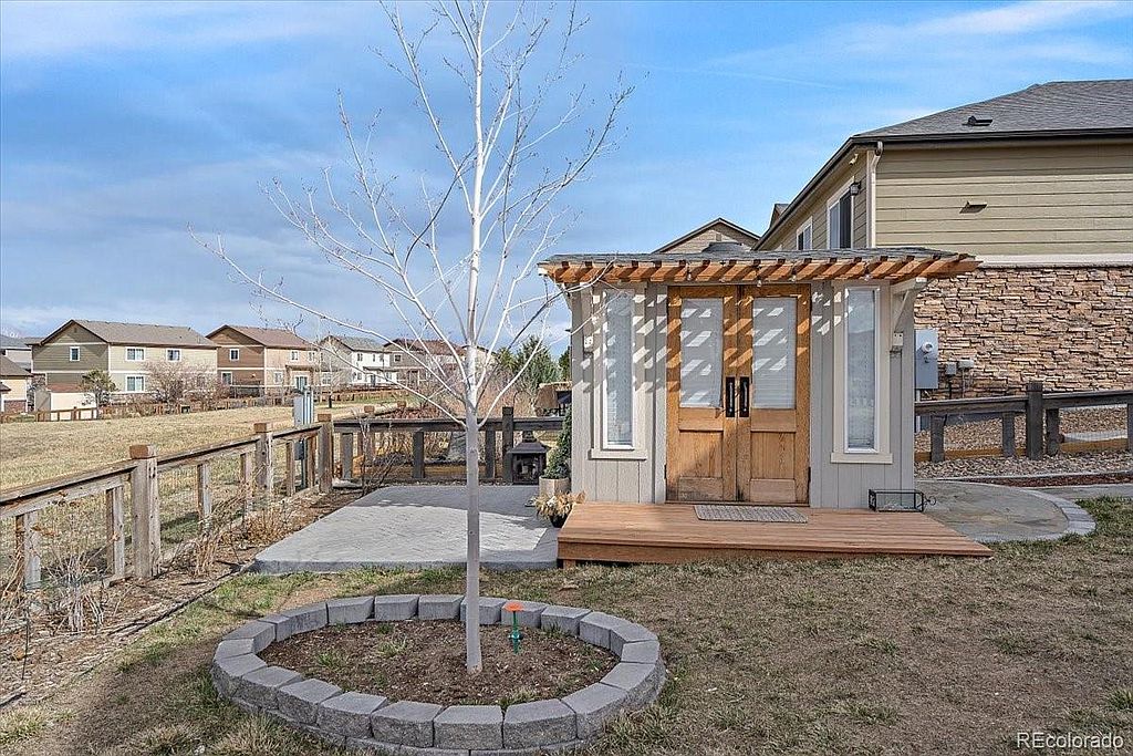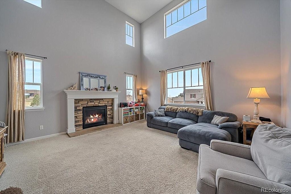 Serenity Ridge beauty located on a cul de sac on a large corner lot, backing to greenbelt. This is the perfect family home with all 4 bedrooms upstairs and a conveniently located laundry room with w/d included. Kitchen boasts granite counter tops, good sized island, pantry, s/s appliances that are all included, desk area perfect for homework that opens up to your family room with huge vaulted ceilings and your gas fireplace. Just off the front door is a flex room that is currently set up as a living room, but could be used as an office or formal dining. The full garden level basement is waiting for your finishes. Just off the kitchen step onto your deck overlooking almost a 1/4 acre lot with designated fire pit, planters ready for your garden, ideal for entertaining. This is a great location in the Cherry Creek School district, close to Southlands Mall, numerous restaurants and easy access to DIA.