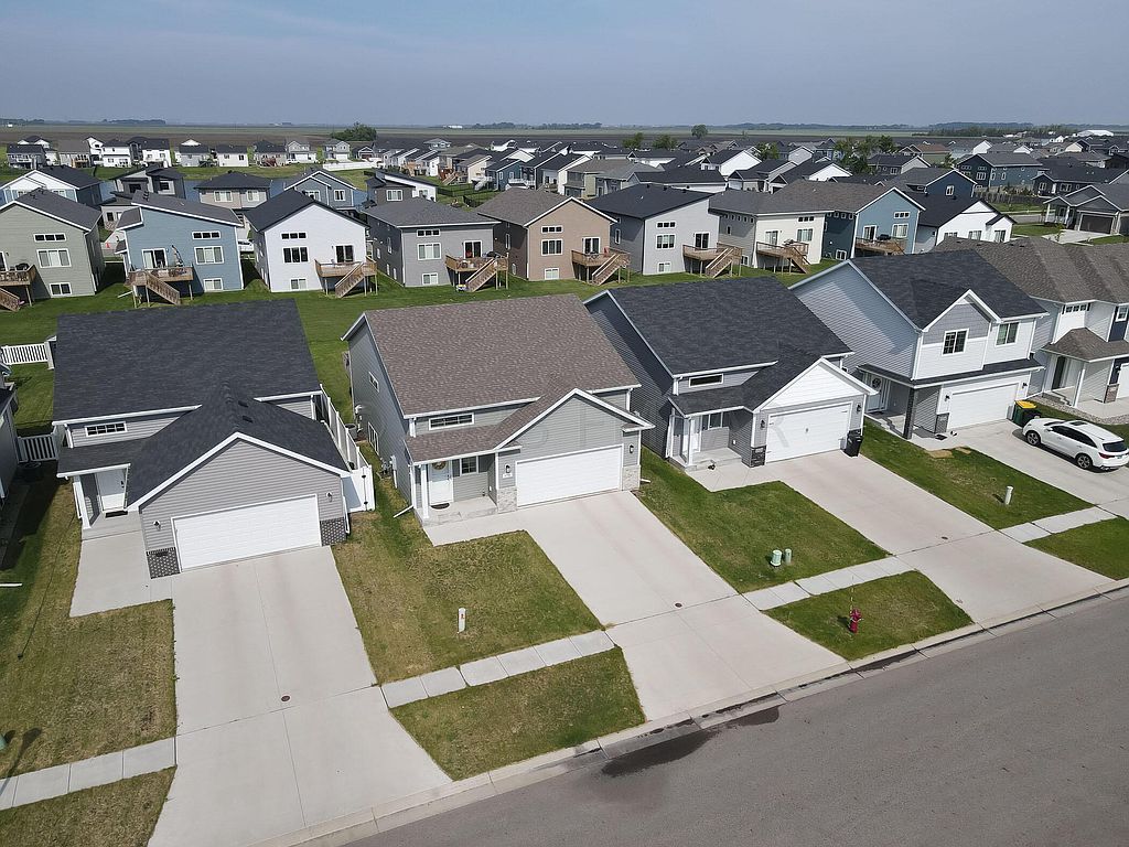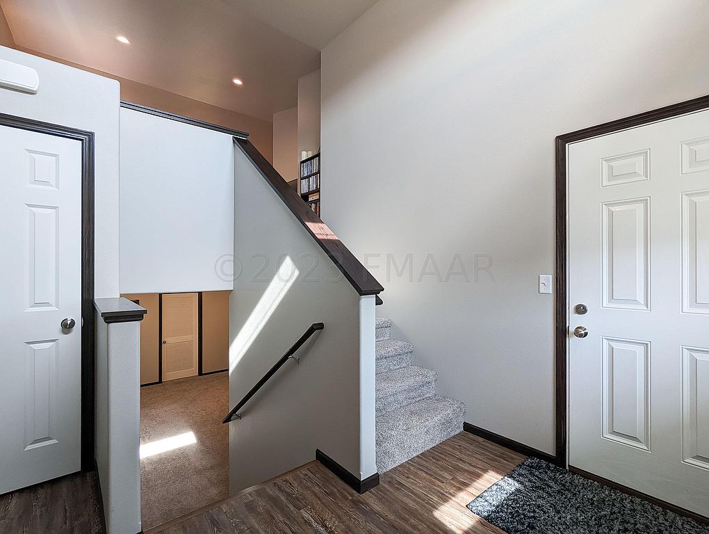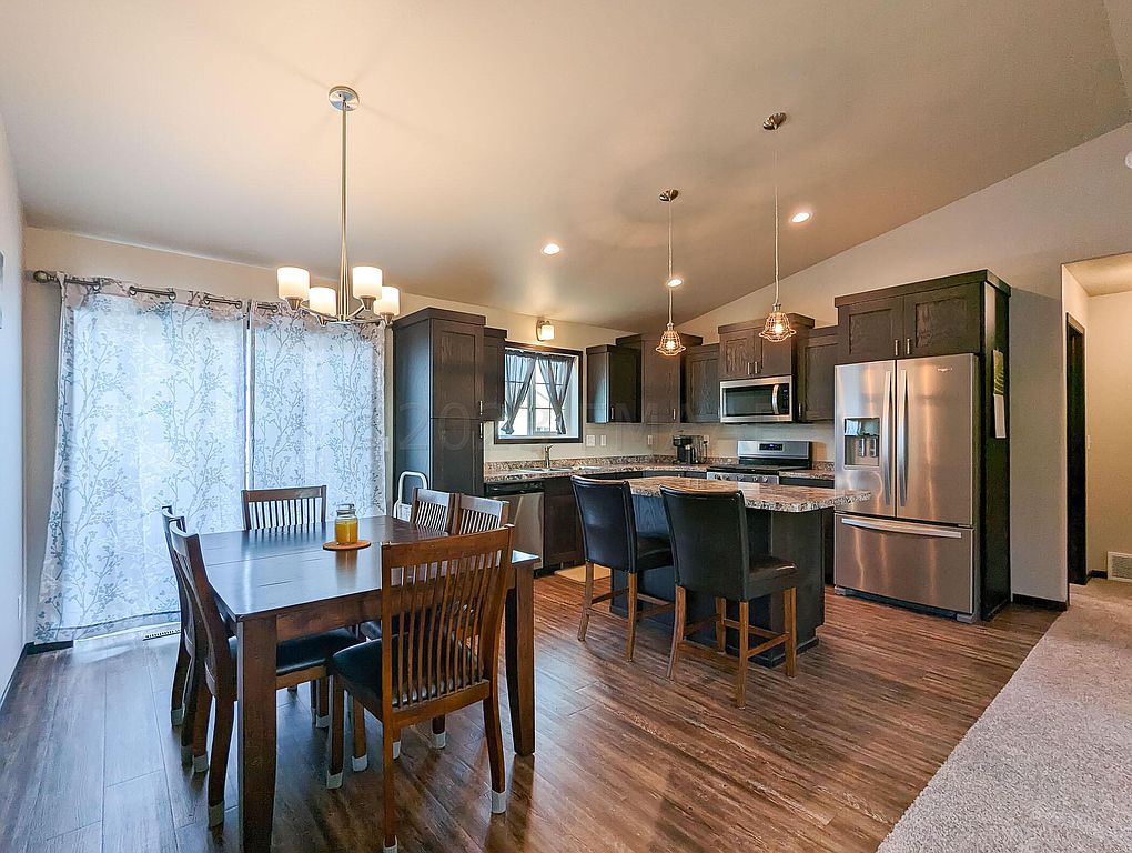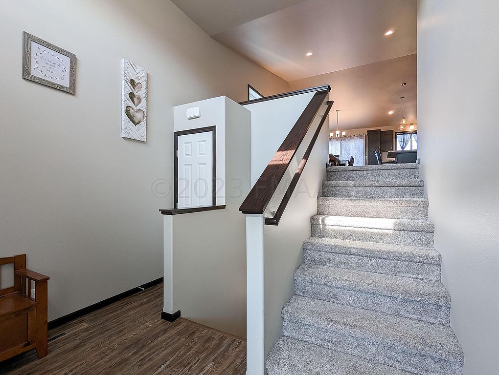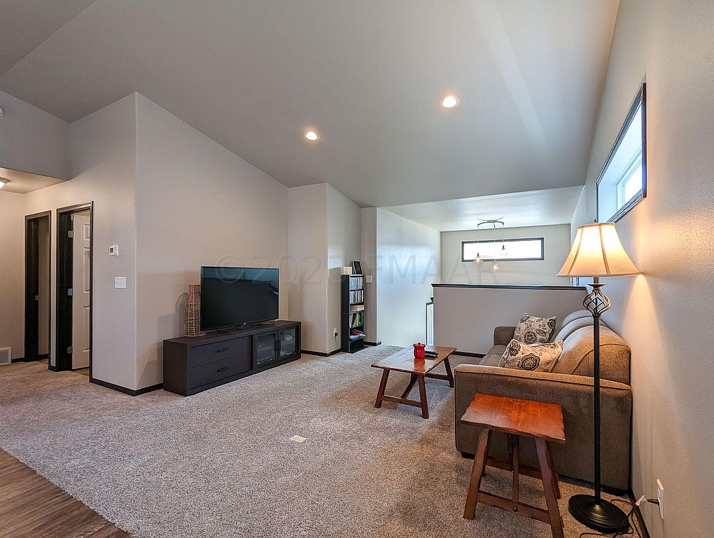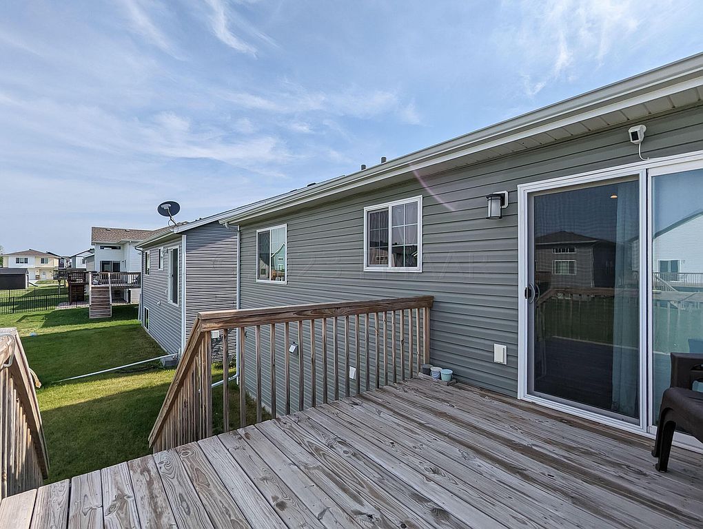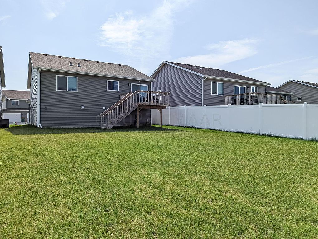 Here is an opportunity to own this quality built SINGLE FAMILY home featuring 3 bedrooms, 2 bathrooms, and 2 stall attached garage, located in a desirable neighborhood of Eaglewood Development in West Fargo. The yard is fully done for your entertainment including a deck and sprinklers to keep the yard plush & green. On the upper level you will find an open floor plan featuring a large living room w/updated hard surface flooring, vaulted ceilings, recessed lights, beautifully designed kitchen w/custom cabinets, upgraded stainless steel appliances including GAS RANGE, fancy countertops, island, & pendant lights. Amazing private suite w/large Hollywood bathroom and walk in closet. Upper-level laundry room comes with shelving for storage and washer/dryer included. Lower level has a huge family room, 2 bedrooms, a bathroom, and storage space. Garage is also finished for your convenience along with a service door. Home has many appealing features including battery backup sump pump, sprinklers, horizontal blinds, magnetic storm windows and much more. Make this your home today!