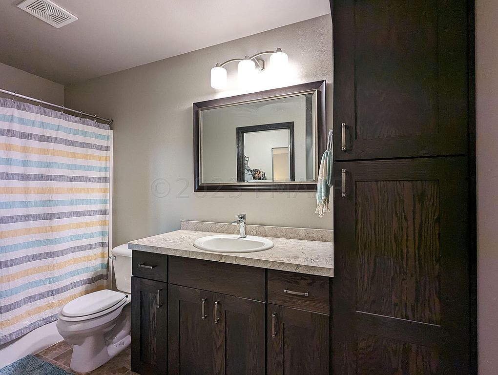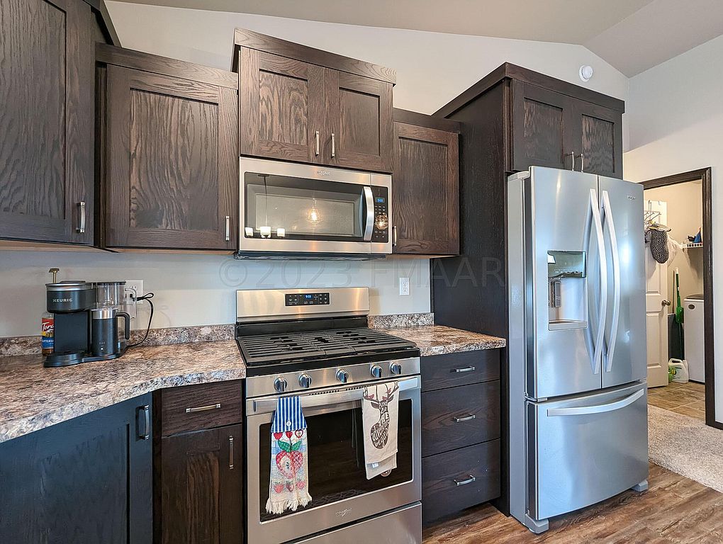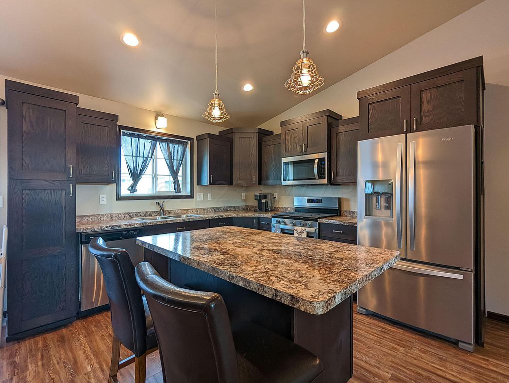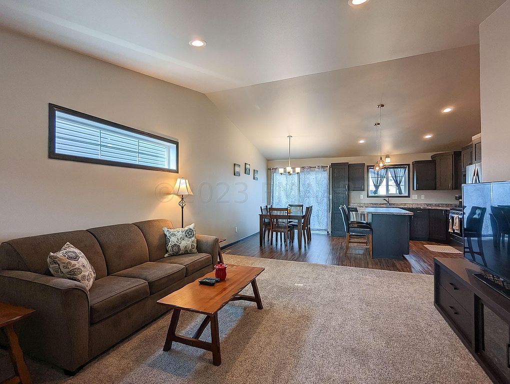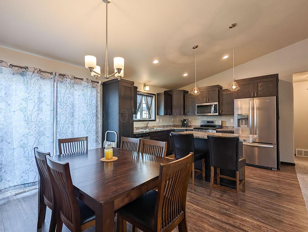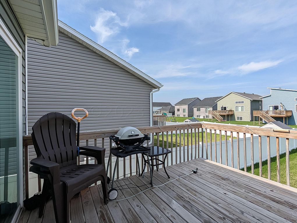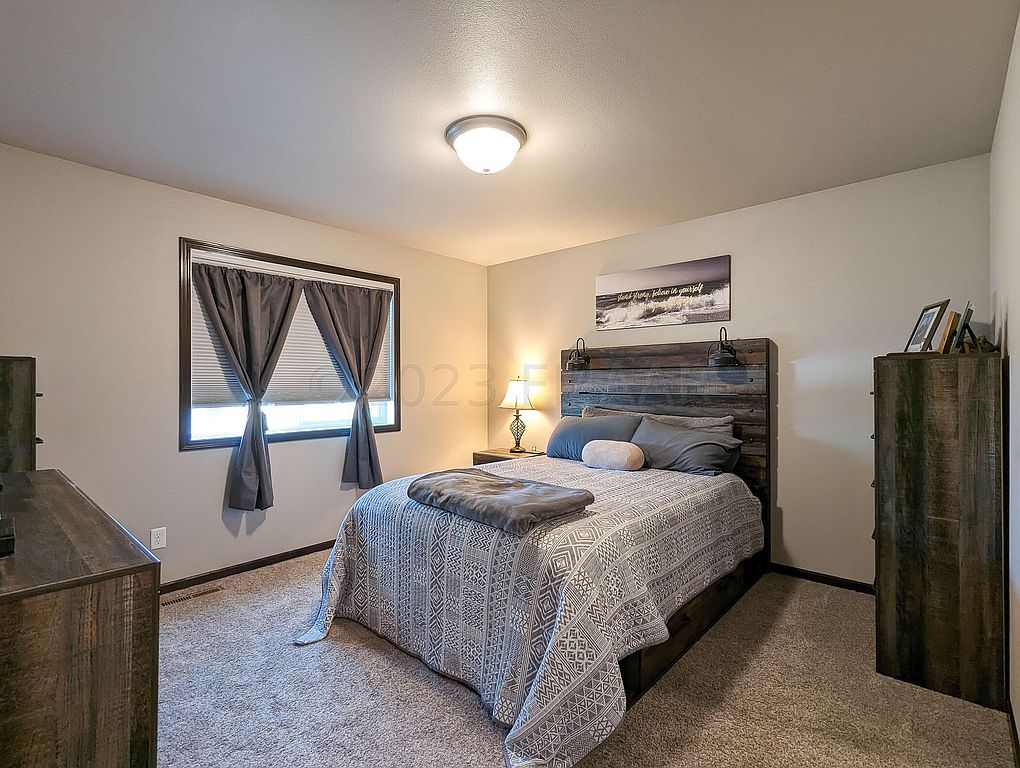 Here is an opportunity to own this quality built SINGLE FAMILY home featuring 3 bedrooms, 2 bathrooms, and 2 stall attached garage, located in a desirable neighborhood of Eaglewood Development in West Fargo. The yard is fully done for your entertainment including a deck and sprinklers to keep the yard plush & green. On the upper level you will find an open floor plan featuring a large living room w/updated hard surface flooring, vaulted ceilings, recessed lights, beautifully designed kitchen w/custom cabinets, upgraded stainless steel appliances including GAS RANGE, fancy countertops, island, & pendant lights. Amazing private suite w/large Hollywood bathroom and walk in closet. Upper-level laundry room comes with shelving for storage and washer/dryer included. Lower level has a huge family room, 2 bedrooms, a bathroom, and storage space. Garage is also finished for your convenience along with a service door. Home has many appealing features including battery backup sump pump, sprinklers, horizontal blinds, magnetic storm windows and much more. Make this your home today!