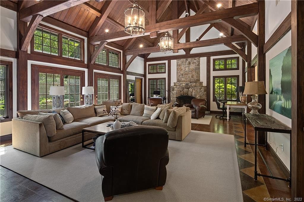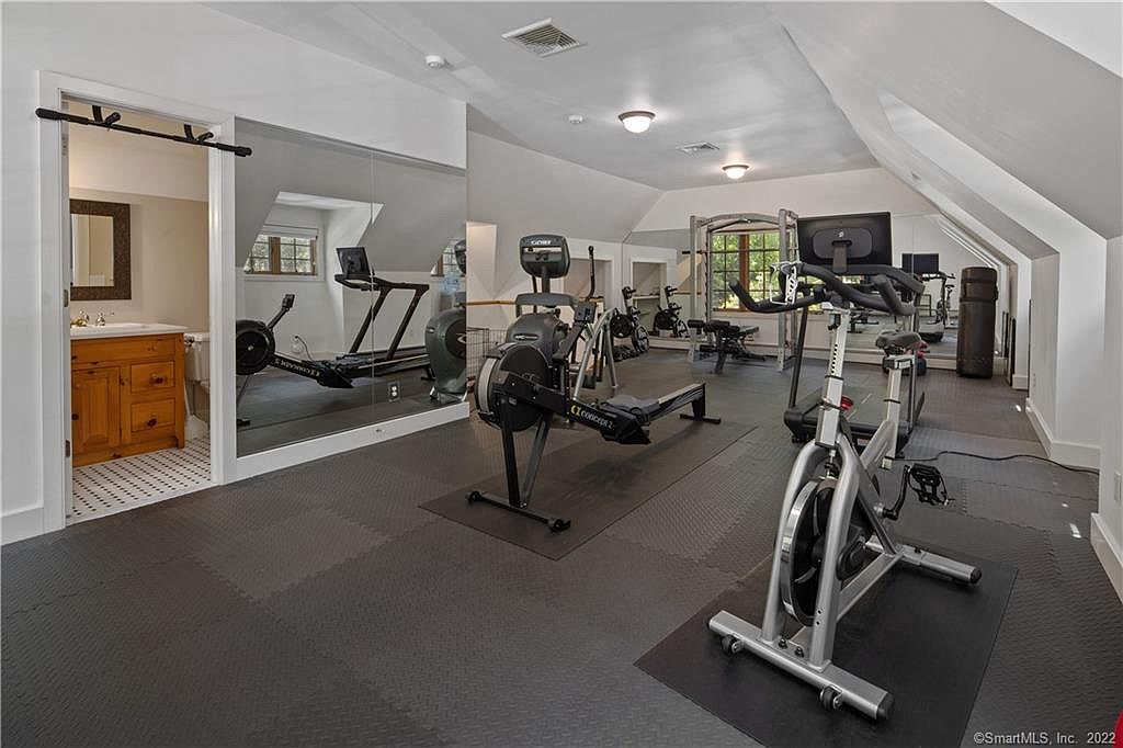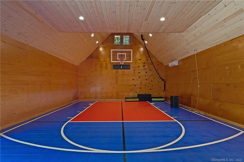 Tucked away down a private, stone wall bordered driveway, in one or Westport's premier country estate enclaves, is a sport + recreation enthusiasts dream property. As you enter the compound, you will be captivated by the impressive clapboard and stone colonial style home. It is further defined by the incredible features including open floor plan, floor to ceiling windows, reclaimed wood + exposed beams, stone + brick fireplaces, handsome wide board wood floors, expansive great rooms, intimate + grand entertaining spaces, home office options, seamless indoor + outdoor living spaces and family friendly rooms for multigenerational gathering. The estate like property offers something for everyone to enjoy! Tennis anyone? You will love the lighted tennis court, which could easily be utilized as a pickle ball court! Prefer paddle tennis? Meander over to the regulation paddle court to perfect your game, day or night. If a pick up game of basketball is more your style, bring your game to the half court basketball pavilion. After indulging in various sport activities, retreat to the pool to relax + recharge. Beautiful landscaping provides the perfect privacy backdrop to the various outdoor living areas including the screened porch, patios, decks + expansive lawn. 3 Greenbrier Road is conveniently located to all Westport features + amenities including award winning schools, restaurants, arts, boutiques, beaches, commuting options + more. This amazing opportunity is not to be missed! The Gym + Full Bath could easily be converted to an in-law, au pair, guest suite or home office. There are hardwood floors under the Gym composite flooring.