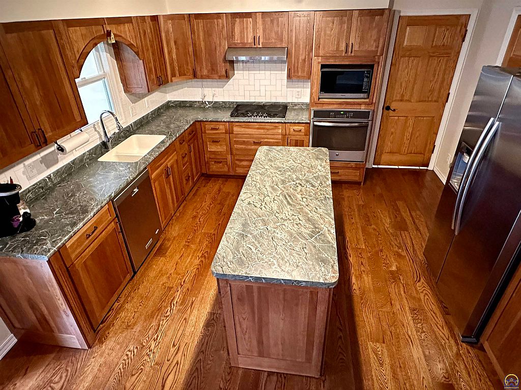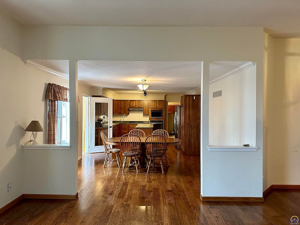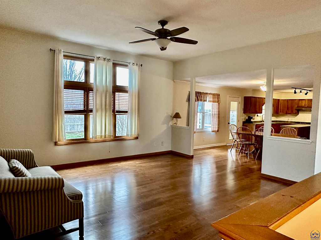 Welcome to your dream home in small town Perry, KS. This well maintained 3 bedroom 2.5 bath ranch style home is within walking distance to the school & ball parks with easy highway access to Lawrence or Topeka. A few features include a spacious three car garage, new hardwoods throughout the home, & a recently remodeled master bathroom that is handicap accessible. Fall in love with the fenced in secluded back yard oasis & mature landscaping that gives you the feeling that you are not even within city limits. Don't forget to check out the goldfish in the gorgeous koi pond. Tons of potential to make the unfinished basement into more living space as well. Very nice 24 x 30 detached shop. Don't miss the opportunity to call this beautiful ranch yours! Welcome Home!
