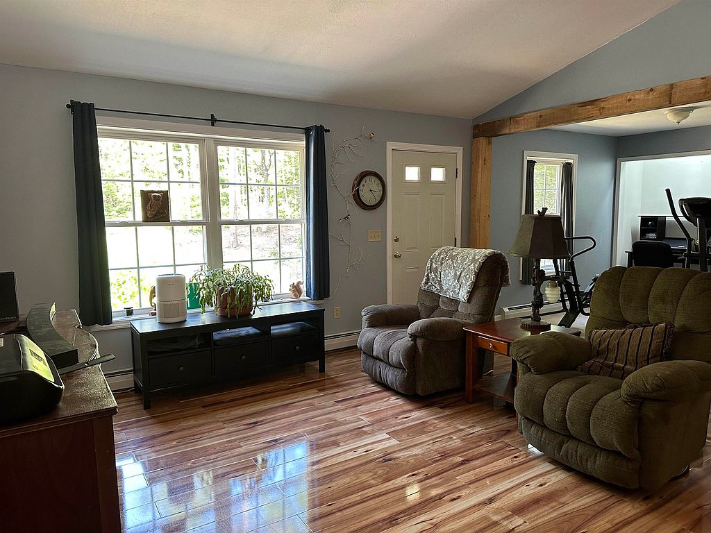 Whether it be for vacation, year-round use or investment, this sweet ranch is ready for you to call home! All one-level living with a gorgeous open concept living area, natural light beams in through the sliders surrounding your expansive deck overlooking your one+ acre lot nestled into the woods. This home enjoys a fresh coat of paint throughout easing the transition for a new owner. Two bedrooms occupy one end of the home along with a full bathroom. The vaulted ceilings in the main living space make gatherings easy and provide ample room for friends and guests. The combination office/exercise area was recently finished adding to the open concept living areas but can easily be converted back to a third bedroom if desired. The full basement is clean and dry with nice high ceilings offering the possibility of added living space. This home offers a Pellet Stove which supplements the heat and will keep you warm all winter. This area is conveniently located for anyone commuting north or south along Route 16. Lake Ossipee, Indian Mound, Mt Chocorua, King Pine, are just a few of the many places to swim, fish, hike, golf, kayak, ski and enjoy all the year-round recreation this area has to offer.