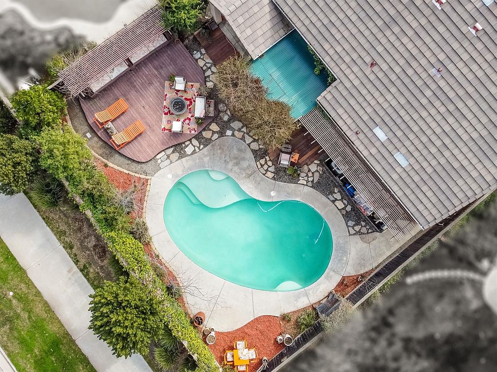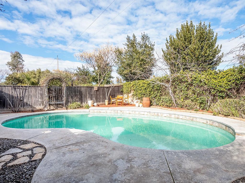 Rare 5BED 3BATH home with LOFT & POOL! Master suite conveniently located on the MAIN floor along with the indoor laundry room, the living spaces, 2 spacious bedrooms, & their dedicated bathroom. Master suite offers large windows with views into the backyard, an en-suite bathroom with soak-in oval tub, separate shower, dual sinks, & a walk-in closet with custom organizers. Upstairs you'll find a large loft, currently used as a game room, 2 additional bedrooms, & another full bathroom. This is an entertainer's dream home with 2 living areas, 2 dining areas, an open concept kitchen with large island & additional bar-stool seating. Cozy up around the ambiance of the gas fireplace, make a statement dining experience in the formal dining room with sky-high ceilings, or have a quiet moment to yourself in the formal sitting room. Located in a beautiful neighborhood in one of the most desirable areas in Clovis, with fantastic curb appeal, private yard with NO backyard neighbors, & large swimming pool, this is sure to be a great opportunity for the growing family. Backyard offers large block wall with ornate vines as the back drop to your private oasis, a large deck, perfect for sun bathing or sitting around the fire pit enjoying some friendly conversation, & a large covered porch for those romantic dinners at home. The garage is a 3-car tandem garage offering plenty of space for additional storage or your own workshop area. Immaculately maintained & ready for you. Come see today.