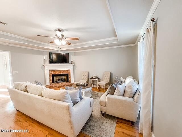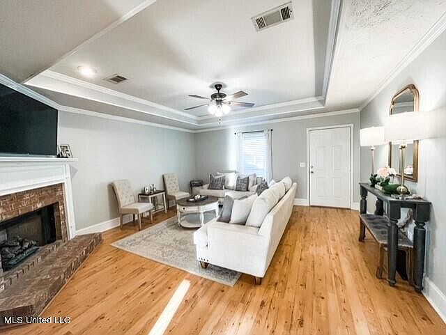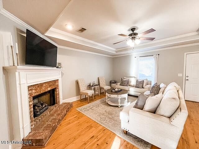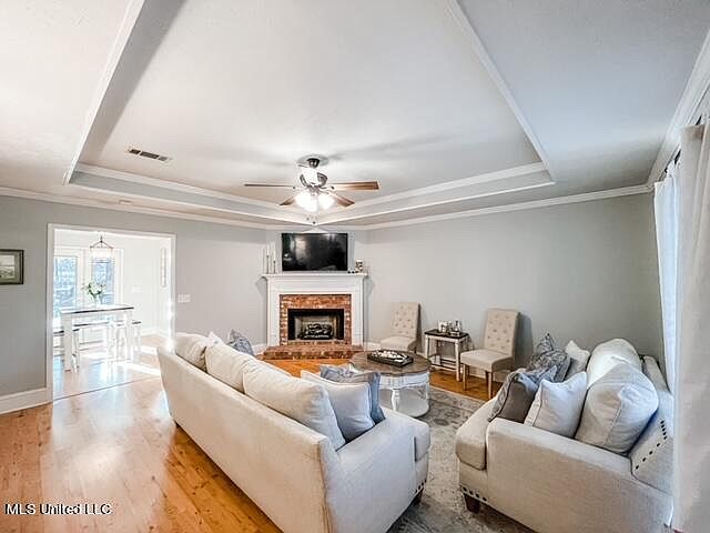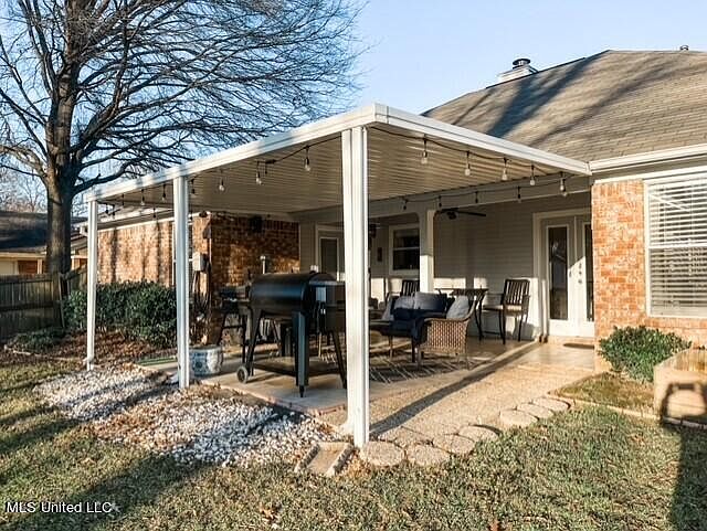 Beautiful 3 bedroom 2 bath split plan in the heart of Flowood. Fresh paint throughout. Large living room with cozy fireplace. Dining room opens up to large covered patio with new outdoor porch lights added. Large master bedroom. Owners have had 4 new ceiling fans installed. Gutters installed in 2021. New sod in backyard and brand new side fence gate. New Garage opener just installed. Refrigerator stays! Very well maintained and move in ready.