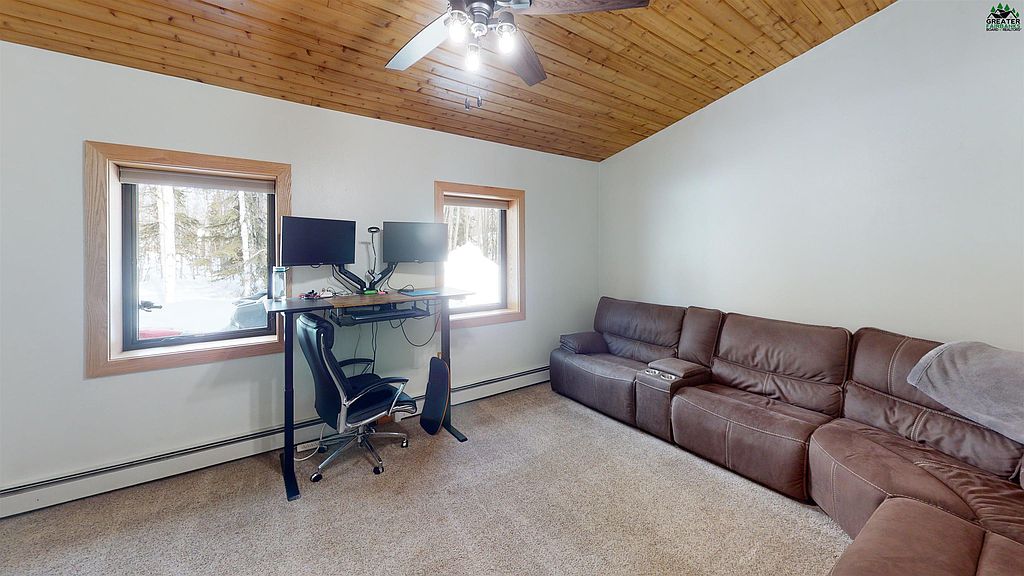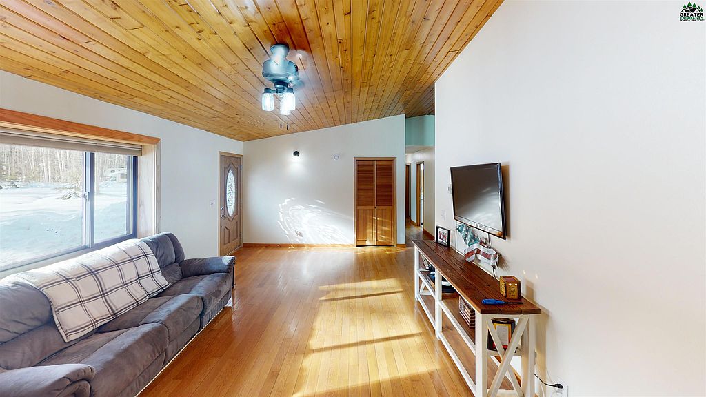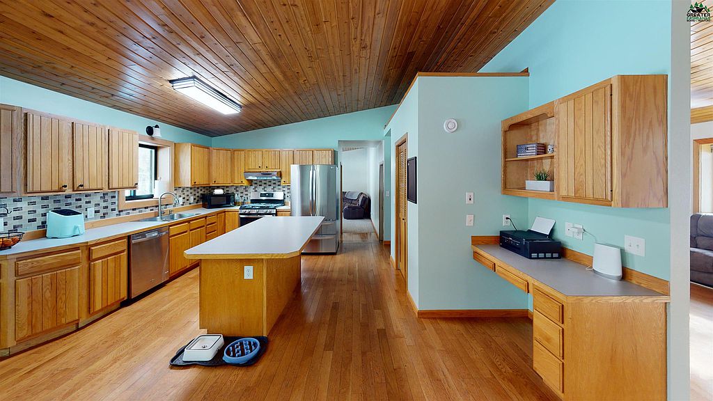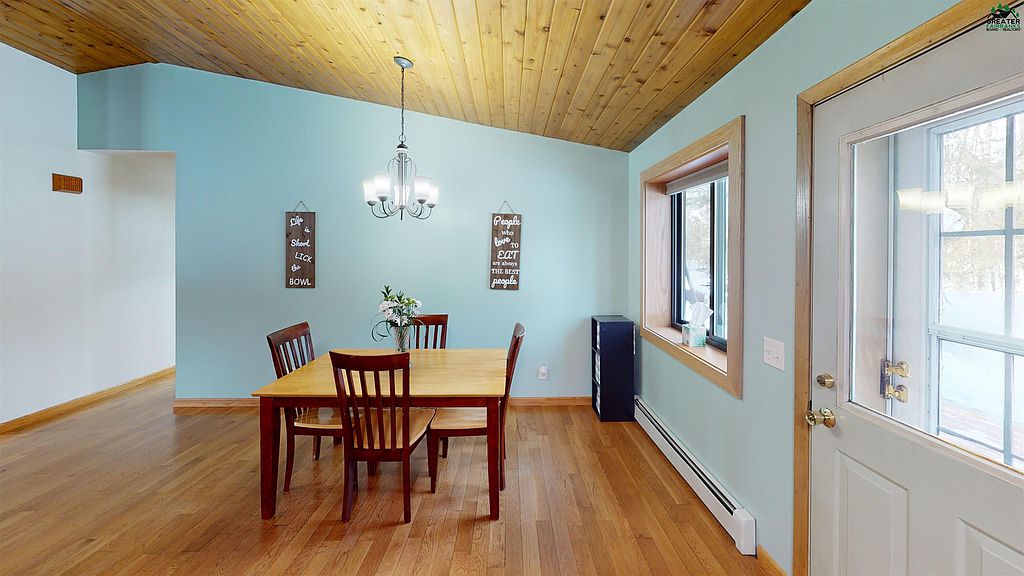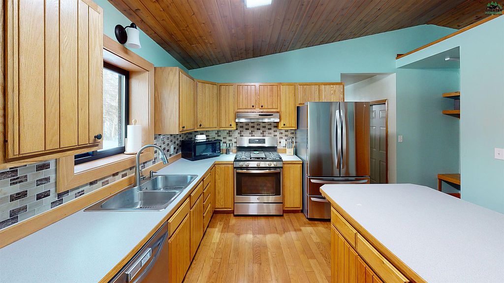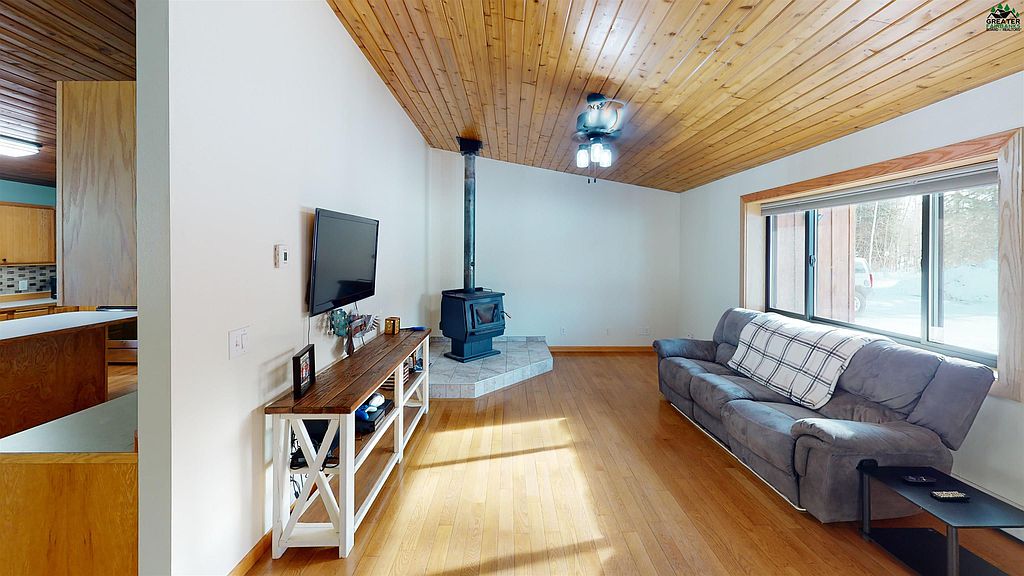 Beautiful home on almost 21/2 acres. Real hard wood flooring that is no maintenance. Ceiling in main open space is also beautiful wood which makes this home so cozy and warm. Double wall construction makes it extra efficient. Blaze King Wood stove for that extra warmth needed on the long winter days. All new Anderson windows throughout. Both bathrooms are freshly remodeled. New hot tub installed by Arctic Home Living. New roof in 2018 and new seemless gutters Open floor plan with an extra room for a second living room or family room. Kitchen has walk in pantry with stainless steel appliances, the stove/oven in propane for those who love to cook. All closets are extra big, even in the smaller bedrooms. Beautiful family home waiting for their new owners to enjoy.