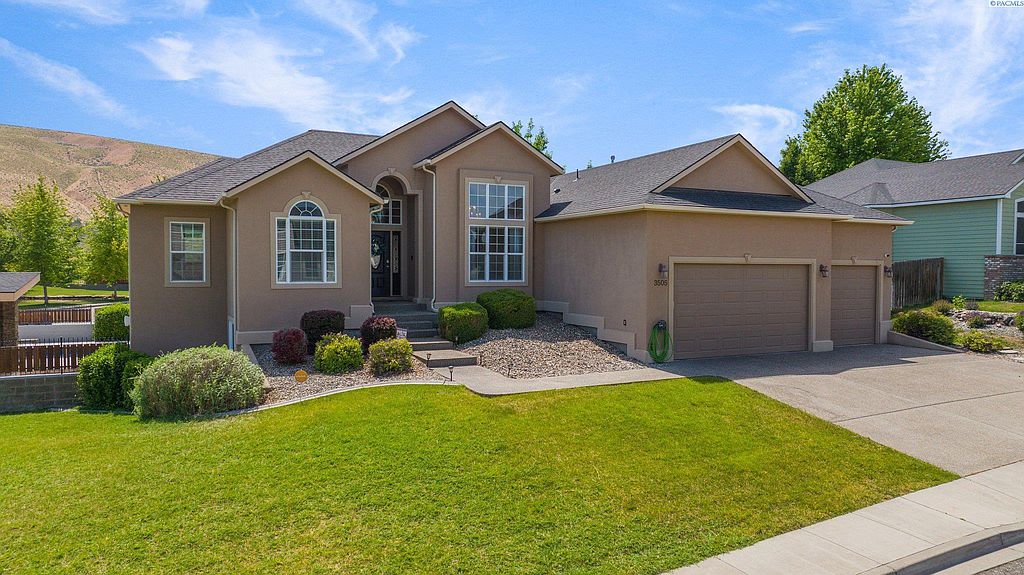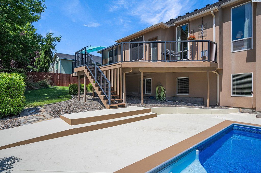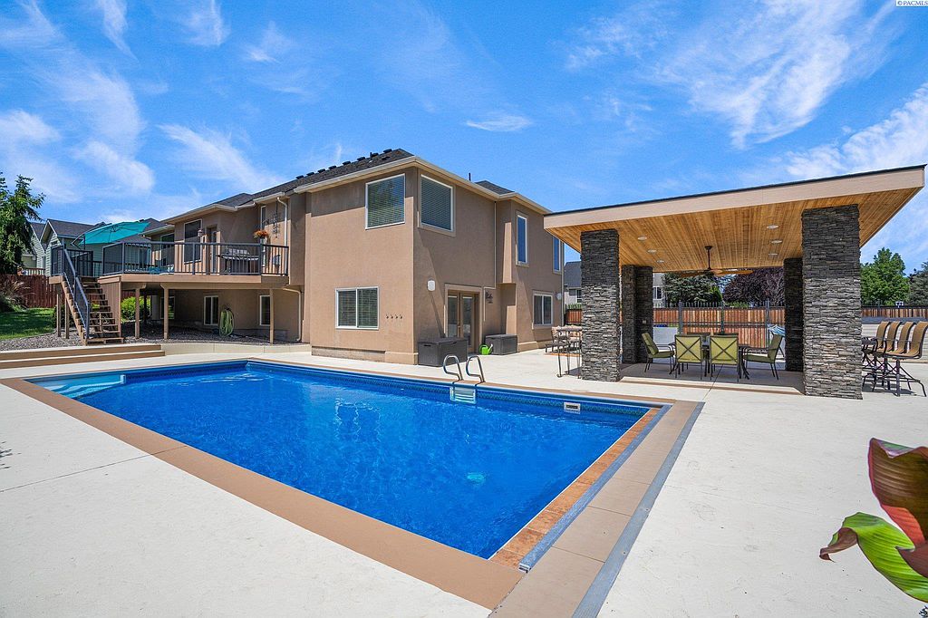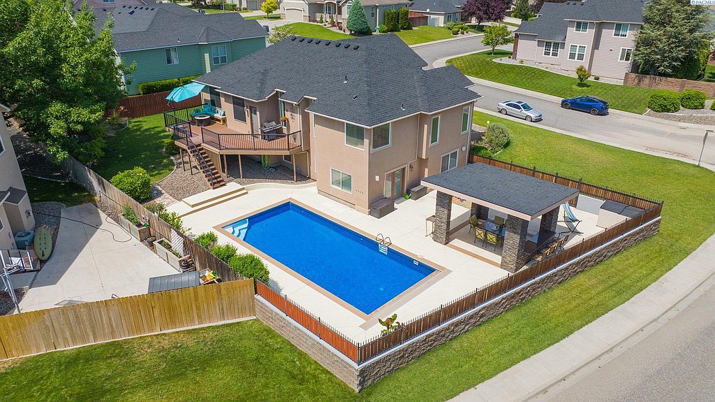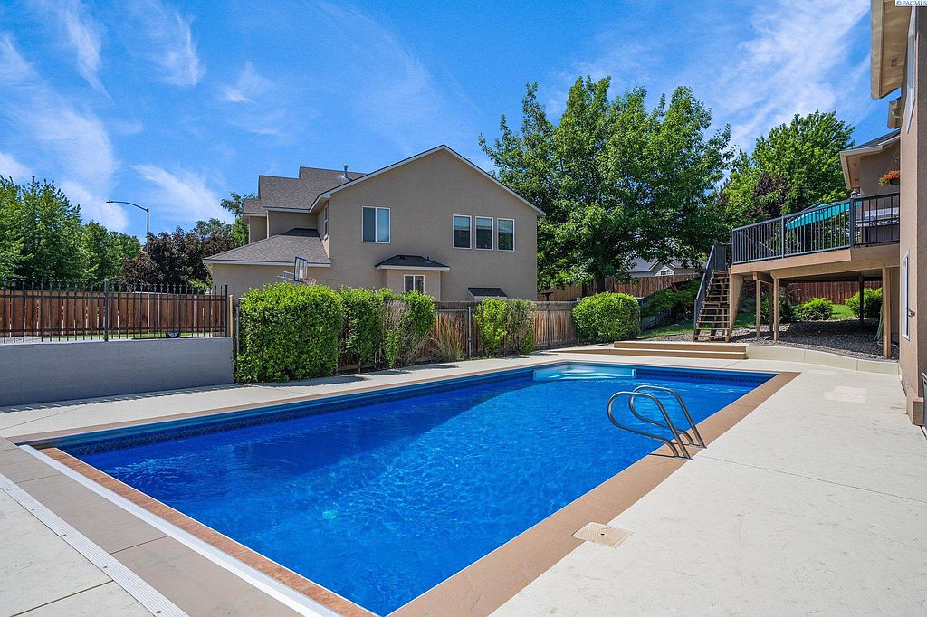 Welcome to your dream home - situated in desirable Brookshire Estates on a spacious 1/3 acre corner lot boasting 6 bedrooms, 3 full baths, almost 4000 square feet and an incredible outdoor pool area...this stunning home is designed to cater to your every need. As you step inside, you'll be greeted by the bright and open living spaces. The main floor features a formal dining, luxurious primary suite, office, laundry, full bathroom and 2nd bedroom. A spacious deck off of the kitchen provides that indoor/outdoor living space that includes cozy firepit area as well as easy access to the pool area. Kitchen updates include slate accents and beautiful quartz countertops. One of the highlights of this home is the expansive daylight basement which provides the ideal setting for entertaining friends and family with the large rec room and kitchenette/bar. There are 4 additional bedrooms downstairs and another full bathroom. As you venture outside, you'll discover a private oasis awaiting you. The large, sparkling pool is accented with a custom covered pergola, that features beautiful stone accents and a large granite bar top as well as plenty of extra deck space. It is the perfect space to indulge in leisurely afternoons in the sun - soaked relaxation and outdoor gatherings. The pool is heated, has automatic safety cover and low maintenance ion filtration system. Home is conveniently located moments away from neighborhood park, Queensgate shopping area and White Bluffs Elementary. Make your appointment today to see this beauty!