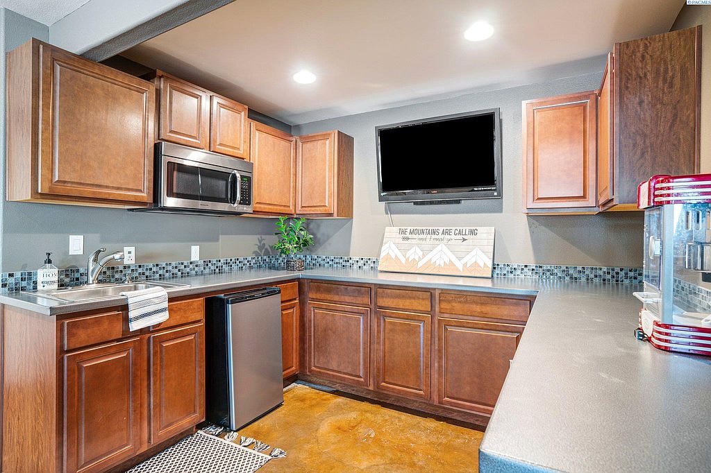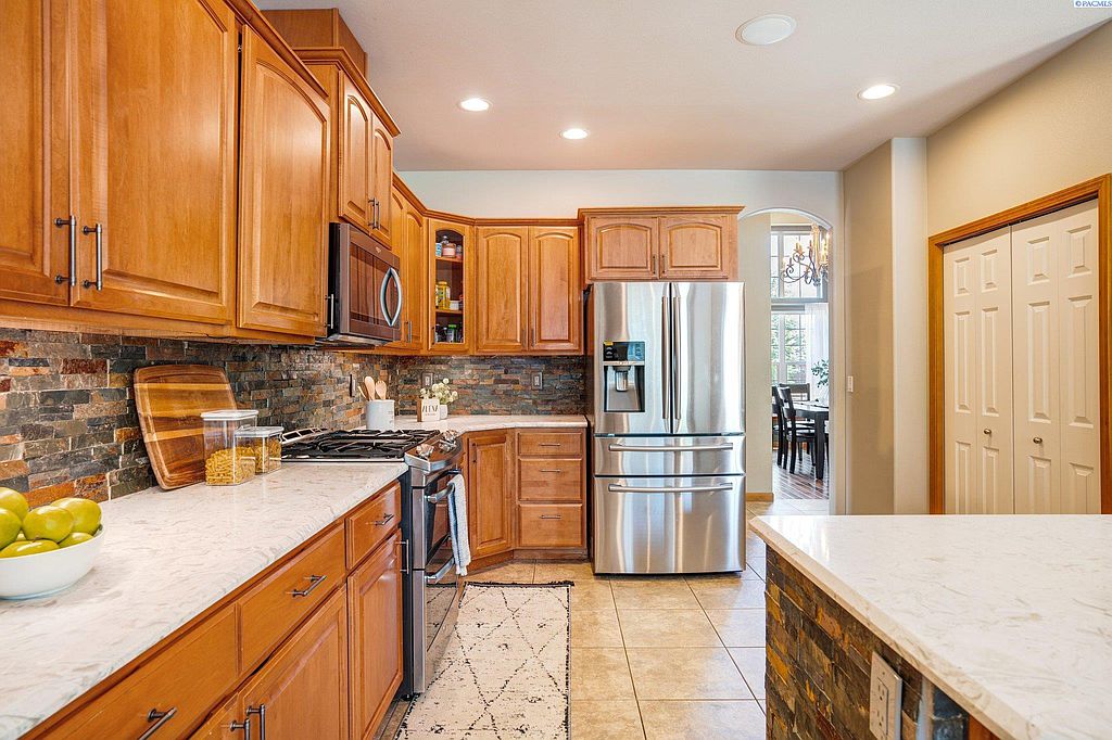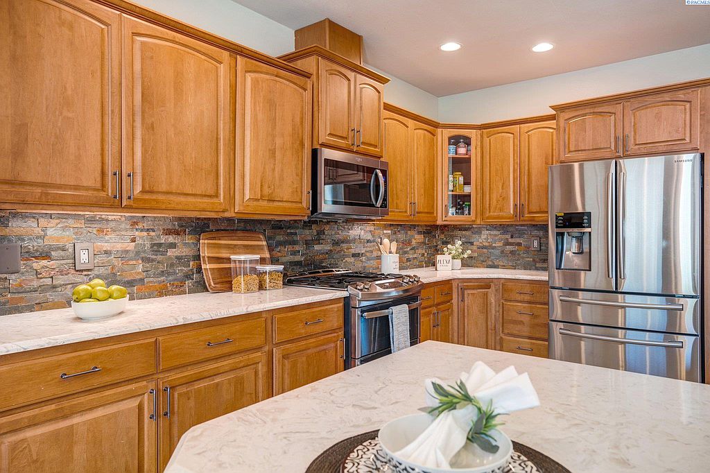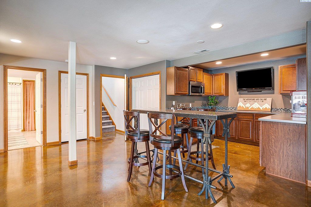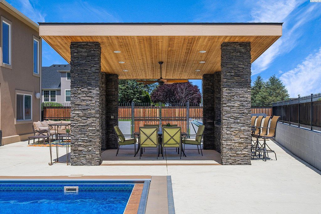 Welcome to your dream home - situated in desirable Brookshire Estates on a spacious 1/3 acre corner lot boasting 6 bedrooms, 3 full baths, almost 4000 square feet and an incredible outdoor pool area...this stunning home is designed to cater to your every need. As you step inside, you'll be greeted by the bright and open living spaces. The main floor features a formal dining, luxurious primary suite, office, laundry, full bathroom and 2nd bedroom. A spacious deck off of the kitchen provides that indoor/outdoor living space that includes cozy firepit area as well as easy access to the pool area. Kitchen updates include slate accents and beautiful quartz countertops. One of the highlights of this home is the expansive daylight basement which provides the ideal setting for entertaining friends and family with the large rec room and kitchenette/bar. There are 4 additional bedrooms downstairs and another full bathroom. As you venture outside, you'll discover a private oasis awaiting you. The large, sparkling pool is accented with a custom covered pergola, that features beautiful stone accents and a large granite bar top as well as plenty of extra deck space. It is the perfect space to indulge in leisurely afternoons in the sun - soaked relaxation and outdoor gatherings. The pool is heated, has automatic safety cover and low maintenance ion filtration system. Home is conveniently located moments away from neighborhood park, Queensgate shopping area and White Bluffs Elementary. Make your appointment today to see this beauty!