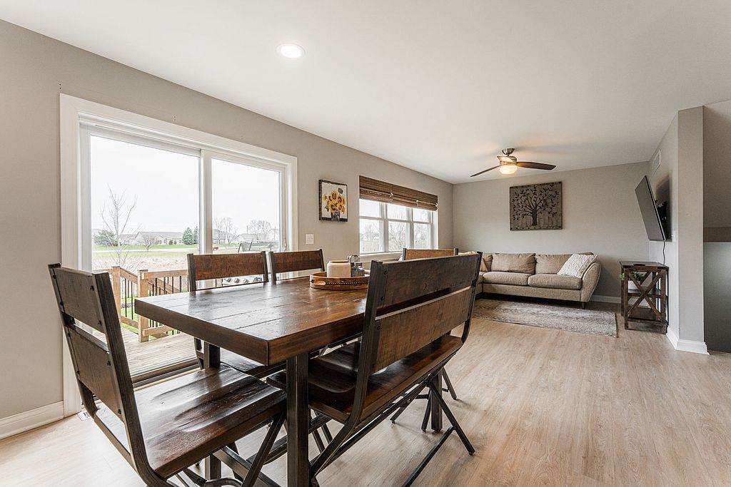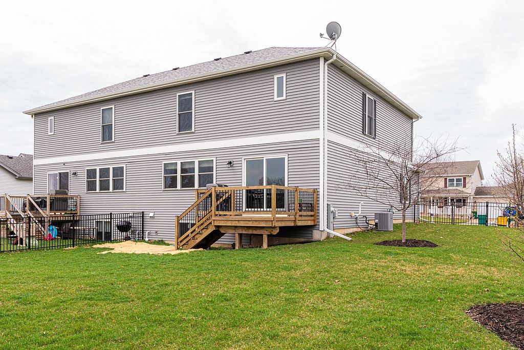 You won't want to miss this beautiful open concept, 3 bedroom (potential 4), 2 1/2 (potential 3 1/2) bath home, less than 4 years from new, on a corner lot with a fenced yard and NO home owners association dues. The two story high foyer welcomes you in and leads you to the open concept kitchen, dining, and living room on the main floor. The kitchen offers 40' high upper cabinets, crown molding, pantry cabinet, soft close doors and drawers, a lazy susan corner cabinet, brushed nickle hardware, huge stainless steel farmer sink, and stainless steel appliances including a 5 burner range and french door refrigerator. The open flow from the kitchen offers convenient access to the dining space via a serving bar. With doors leading to the large deck overlooking the rear fenced yard, the setup is perfect for grilling out or spending time in the rear yard. The main floor also offers a 1/2 bath. On the upper level you will find the open concept continues with a railed hall overlooking the main level foyer. The master suite offers a private bath with dual sinks and a huge walk in closet. The two additional bedrooms on the upper level share the second full bath and there is a second floor laundry closet as well. The lower level is already partially framed for a 3rd bathroom, potential family room approx 18' x12', and a fourth bedroom approx. 14' x13'. Offering potential for this to be a 4 bedroom, 3 1/2 bath home. There is also a large storage/utility room in the lower level. Other notable features of this home include an attached 2 car garage, maintenance free exterior, professional landscaping, high efficiency furnace, and tilt in windows for easy cleaning. Located approx. 8 miles from Elburn Metra and shopping, take a short drive West and see for yourself how much more home your purchasing dollars will get you. You won't be disappointed!