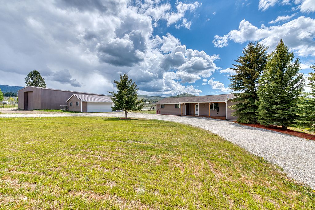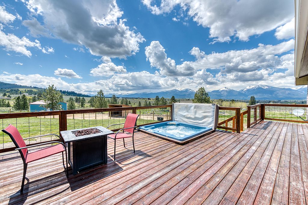 Experience the beauty of the Bitterroot and Sapphire Mountains from the comfort of this spacious Montana property. The 3300 square foot home is complete with 5 bedrooms, 3 bathrooms, a large kitchen with dual refrigerators, heated flooring on the main level, and ample living space. The finished daylight walkout basement offers an amazing place for entertaining, complete with a propane fireplace, attached 3/4 bath, and barnwood accents. Take the party to the deck and watch the sunset over spectacular views from the built-in hot tub. The 9.94 acres is very versatile, with perimeter and cross-fencing for 3 separate pastures, a huge 40x60 shop, and detached 2 car garage. Call Trever Throop @ 406-544-4907, April Hawkes @ 406-370-4567, or your real estate professional.