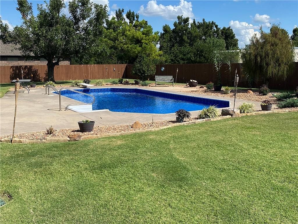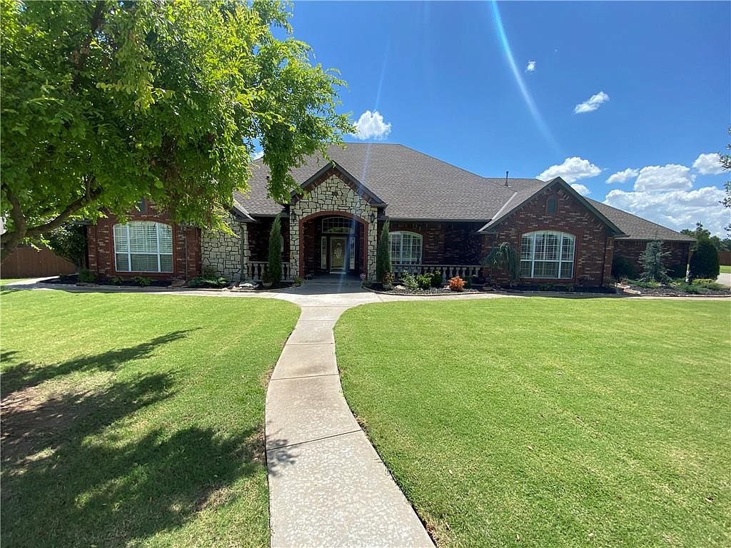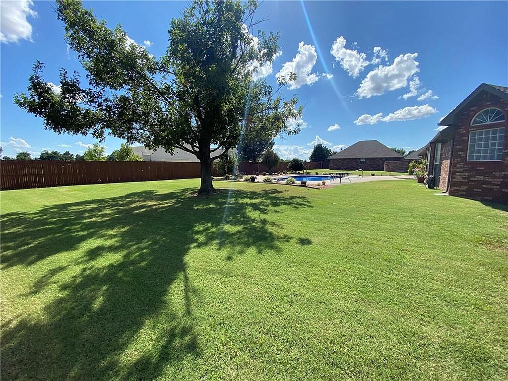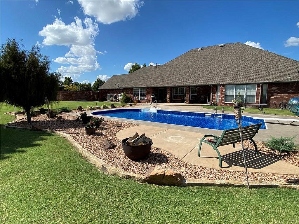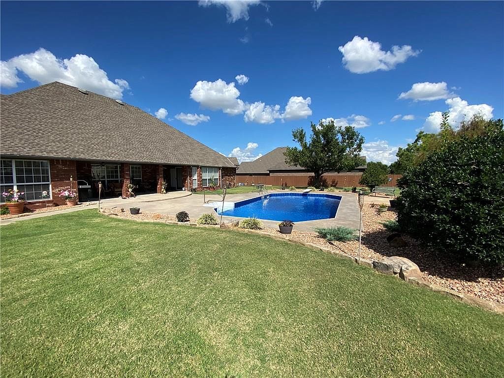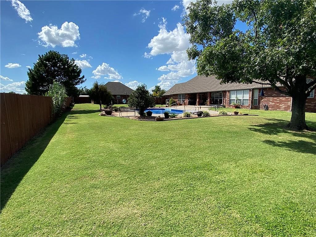Large Executive Home on an acre with inground pool and shop. The house has been updated with wood floors, paint inside and out, granite and appliances. Pool liner, pump and filter all replaced within the last two years. Great house for entertaining, large kitchen with walk-in pantry, gas stove, double ovens, ice maker and beverage cooler, two large dining rooms and huge living room with gas fireplace, bookshelves and windows overlooking the pool. Master bedroom is oversized to accommodate large furniture with door to access the covered patio/pool, large master bath has separate sinks, large walk-in shower, whirlpool tub and two walk-in closets. Secondary bedrooms are all large with the potential to have a total of 3 master suites all with walk-in closets. Saferoom inside the house and full staircase to access the attic. City water inside, water well for outside and sprinkler system covering the entire acre, 30x40 shop with 1/2 bath and staircase to attic. Realtor is owner