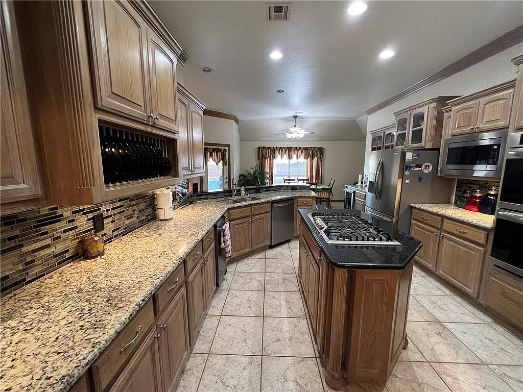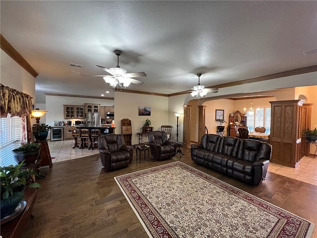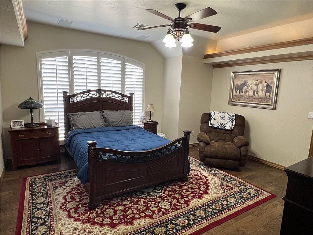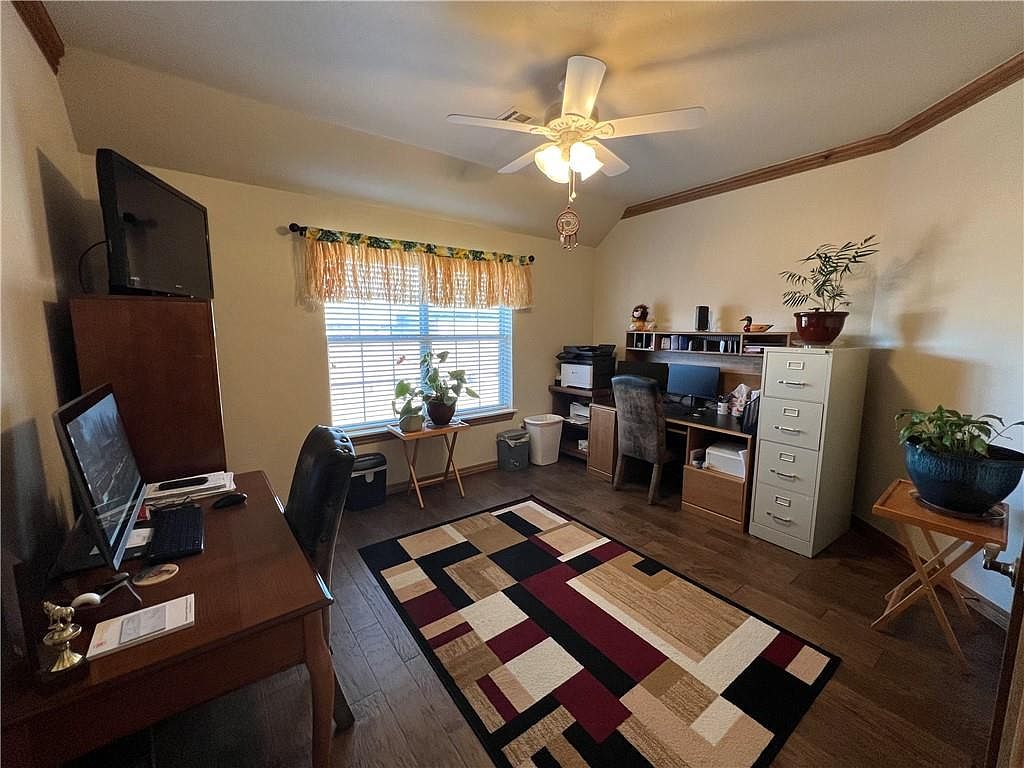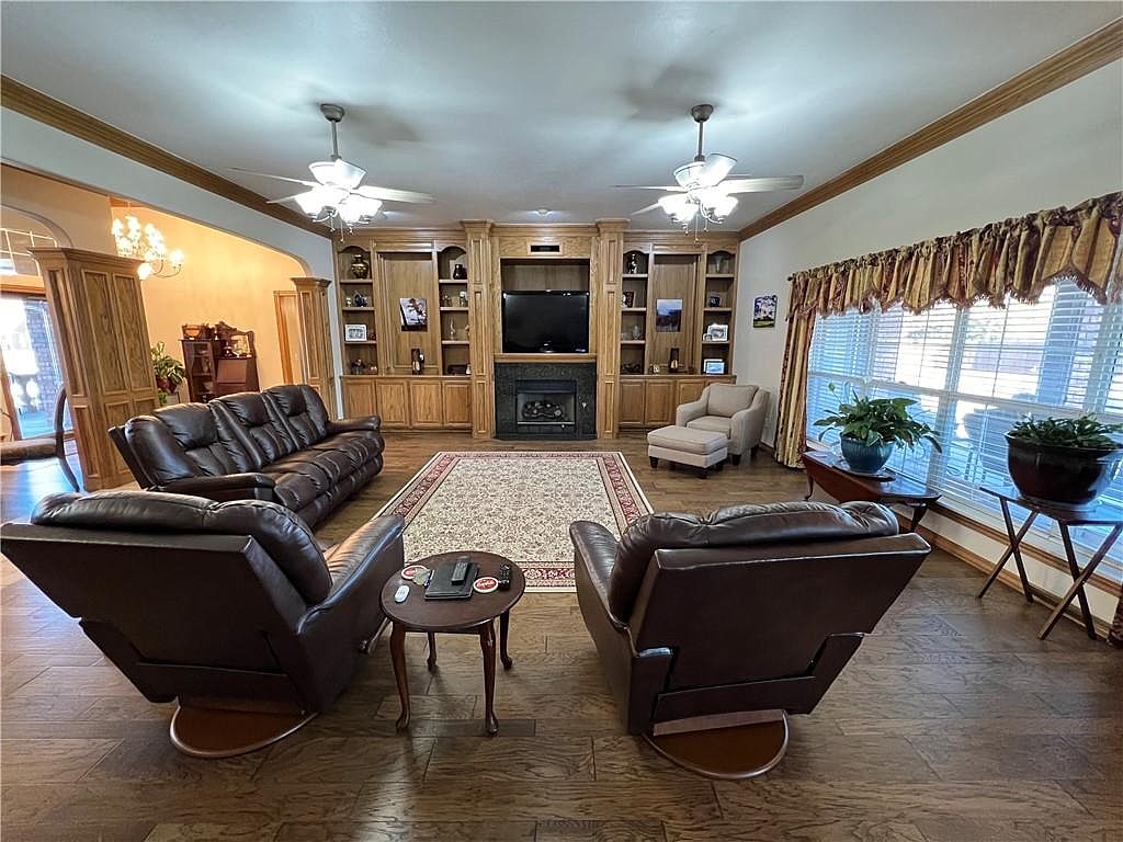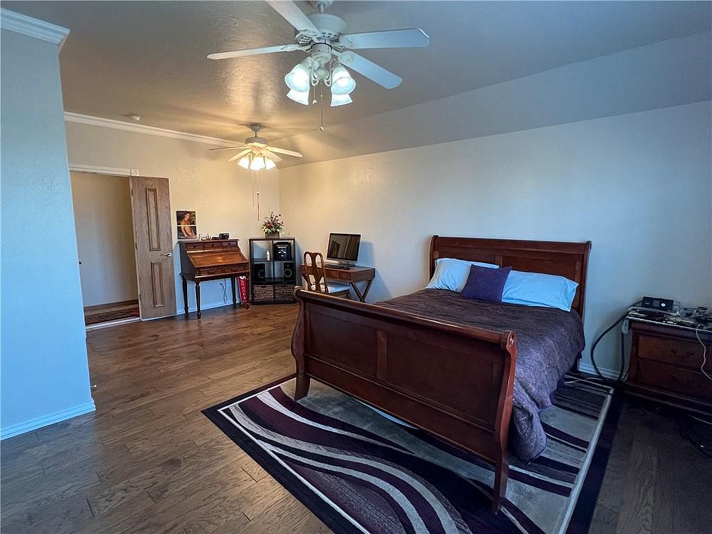 Large Executive Home on an acre with inground pool and shop. The house has been updated with wood floors, paint inside and out, granite and appliances. Pool liner, pump and filter all replaced within the last two years. Great house for entertaining, large kitchen with walk-in pantry, gas stove, double ovens, ice maker and beverage cooler, two large dining rooms and huge living room with gas fireplace, bookshelves and windows overlooking the pool. Master bedroom is oversized to accommodate large furniture with door to access the covered patio/pool, large master bath has separate sinks, large walk-in shower, whirlpool tub and two walk-in closets. Secondary bedrooms are all large with the potential to have a total of 3 master suites all with walk-in closets. Saferoom inside the house and full staircase to access the attic. City water inside, water well for outside and sprinkler system covering the entire acre, 30x40 shop with 1/2 bath and staircase to attic. Realtor is owner