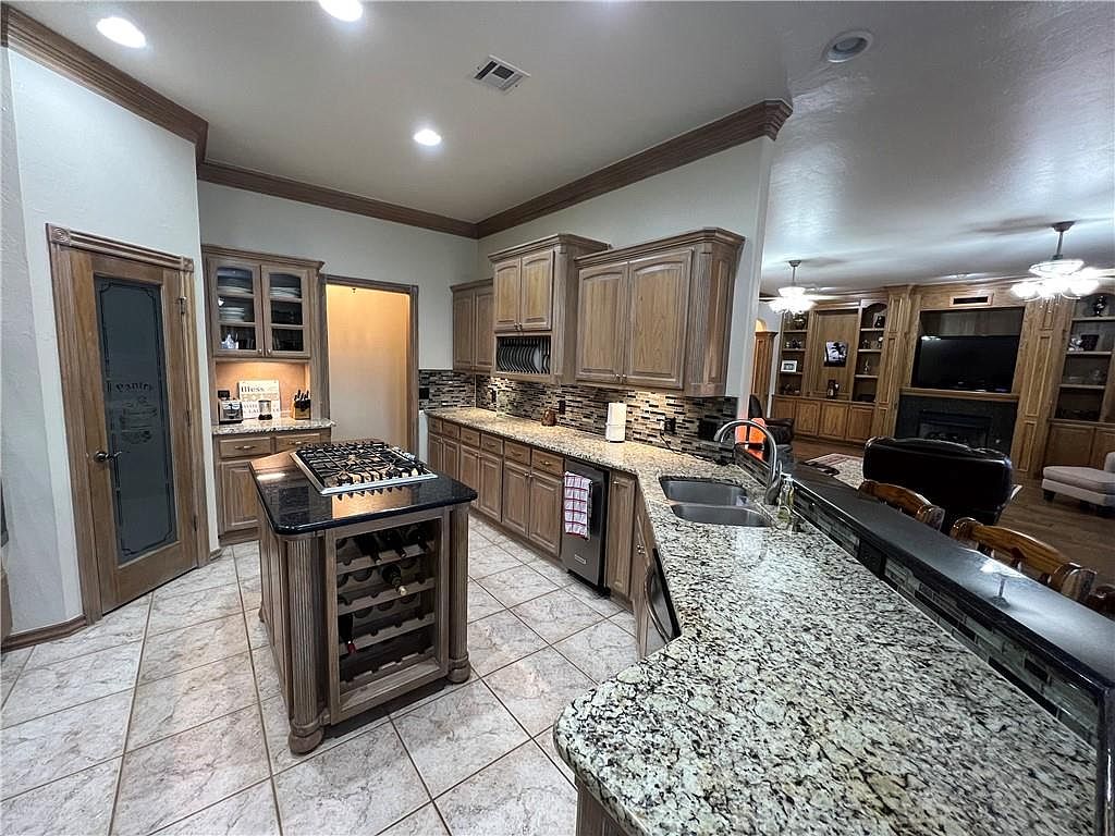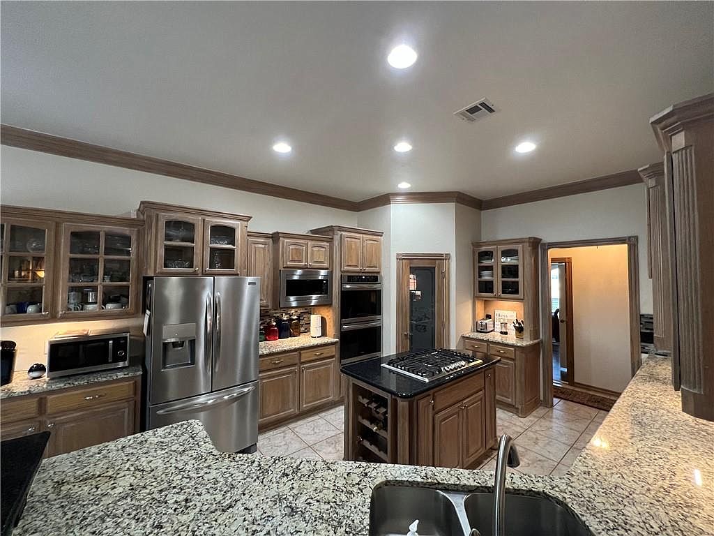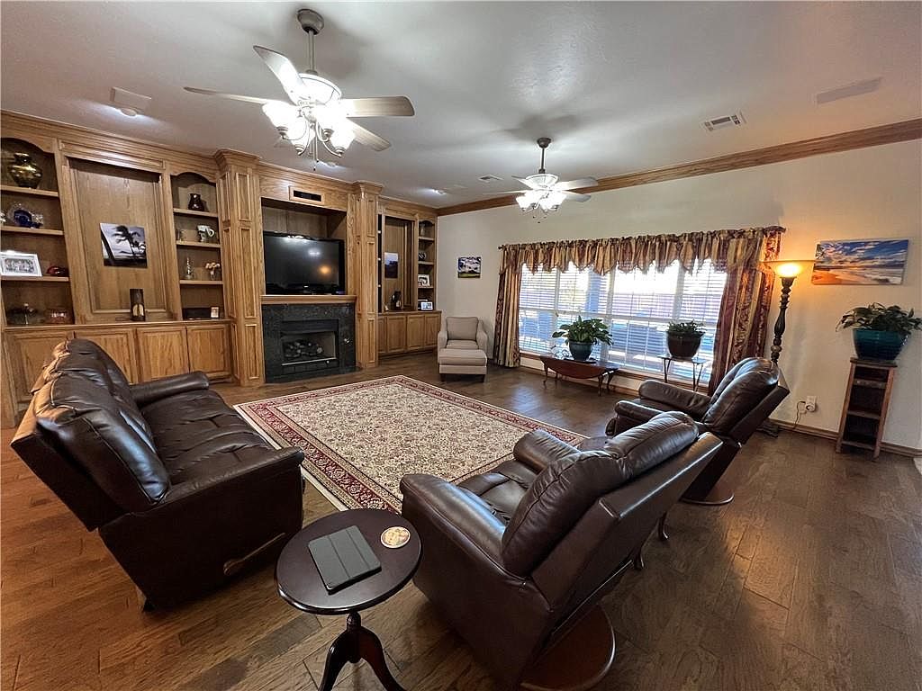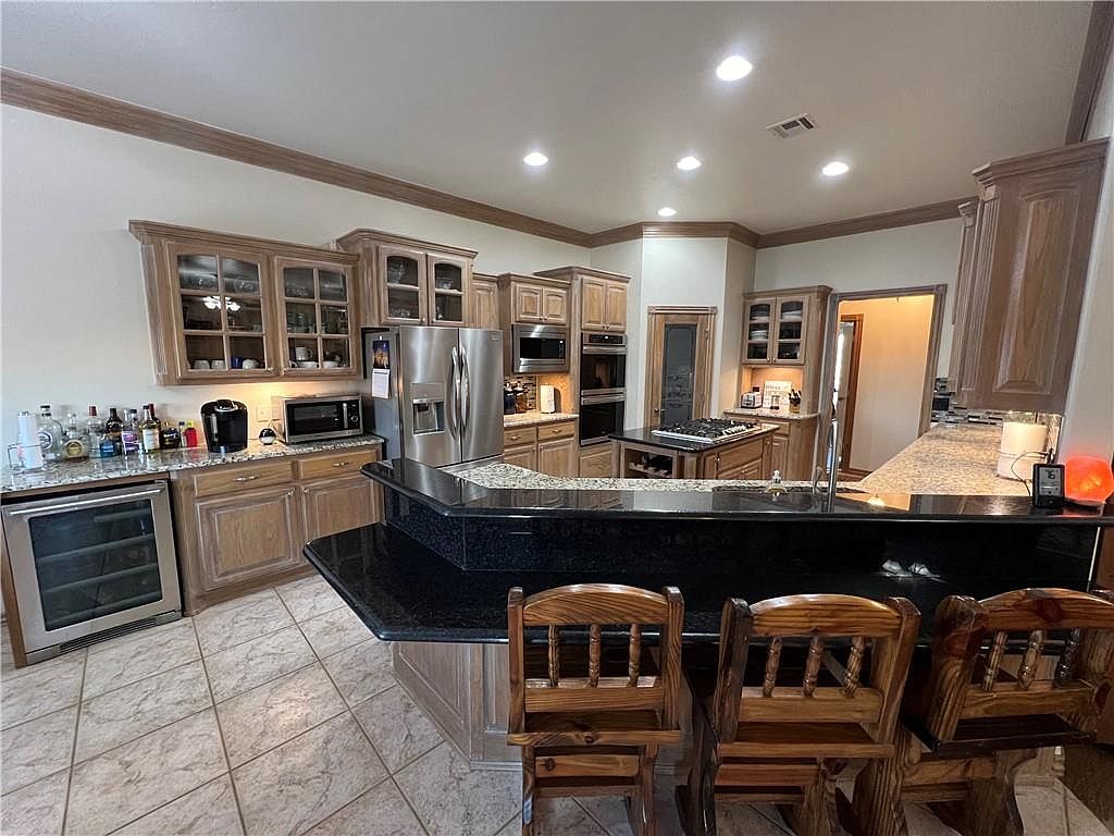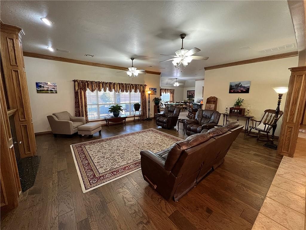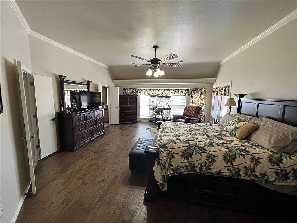 Large Executive Home on an acre with inground pool and shop. The house has been updated with wood floors, paint inside and out, granite and appliances. Pool liner, pump and filter all replaced within the last two years. Great house for entertaining, large kitchen with walk-in pantry, gas stove, double ovens, ice maker and beverage cooler, two large dining rooms and huge living room with gas fireplace, bookshelves and windows overlooking the pool. Master bedroom is oversized to accommodate large furniture with door to access the covered patio/pool, large master bath has separate sinks, large walk-in shower, whirlpool tub and two walk-in closets. Secondary bedrooms are all large with the potential to have a total of 3 master suites all with walk-in closets. Saferoom inside the house and full staircase to access the attic. City water inside, water well for outside and sprinkler system covering the entire acre, 30x40 shop with 1/2 bath and staircase to attic. Realtor is owner