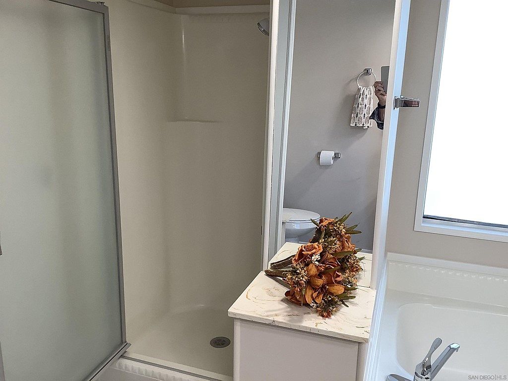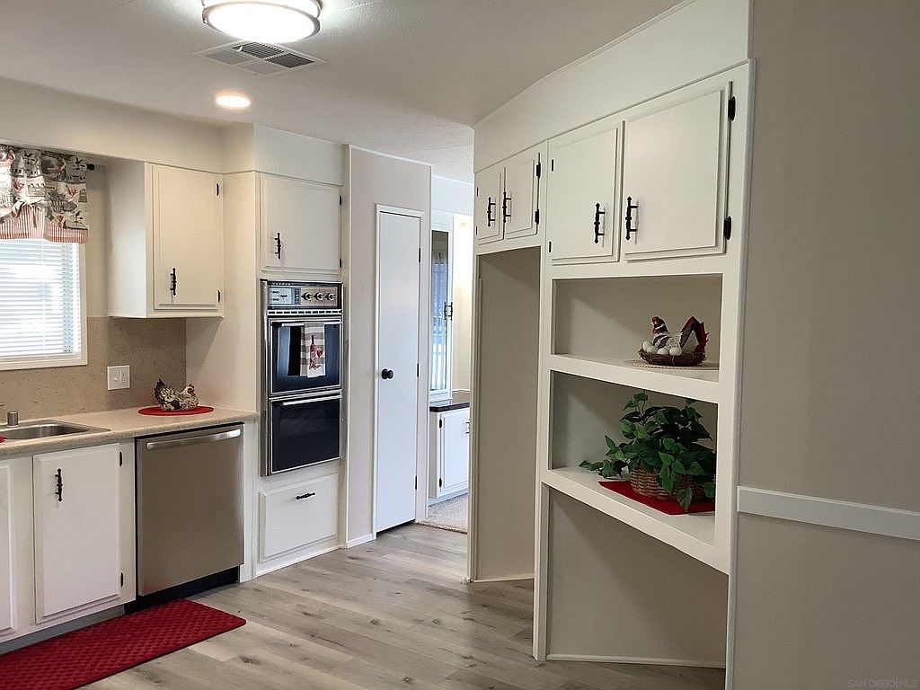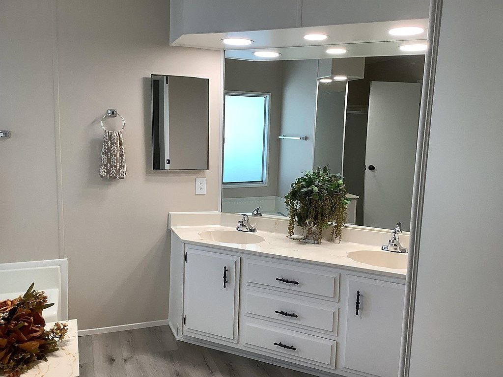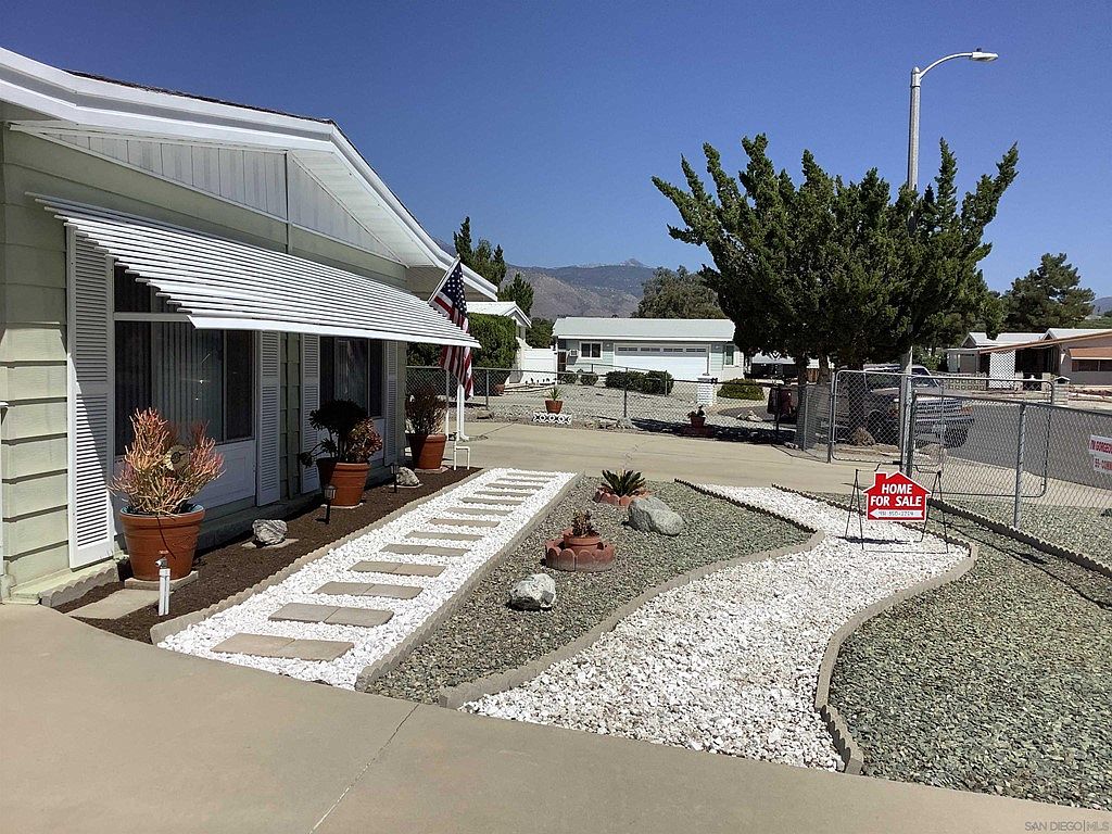 Gorgeous, move in ready 2 Bedroom 2 Bathrooms located in the beautiful 55+ Bautista Estates community. Including: New 2 A/C mini split units New Carpet New Waterproof Laminate New All indoor paint New Dishwasher New Rangehood New garbage disposal New faucets New commodes New Light fixtures The front door opens to the livingroom and formal dining room with a built-in china cabinet. The kitchen is stunning with new appliance and double ovens. There is plenty of cabinets for storage and ample counter space. Also, includes a wet bar. The family room is adjacent to the kitchen with a sliding glass door with access to the front covered patio area. Master bathroom is large, featuring 2 sinks and 2 medicine cabinets. Enclosed shower and roman tub. In the hallway is a large linen closet. 2nd bedroom is large with a wall to wall closet. This bedroom connects to the hall bathroom featuring a tub/shower combo, with sliding shower doors Also, this bathroom connects to the hallway, laundry room. Laundry room features a large wash sink. the back yard has a storage shed and covered work area. There are 3 citrus trees.. The lot has room for a RV and has a clean out for an RV. the yard offers beautiful mountains views and is very low maintenance. You own your own land, it is not leased. Low HOA $55.00 yearly and low taxes. Currently not on a permanent foundation, but can be, The home is not currently on a permanent foundation, if can be put on a permanent foundation. Sewer: Sewer Connected Topography: LL