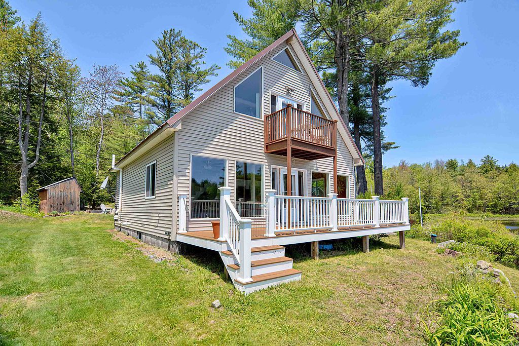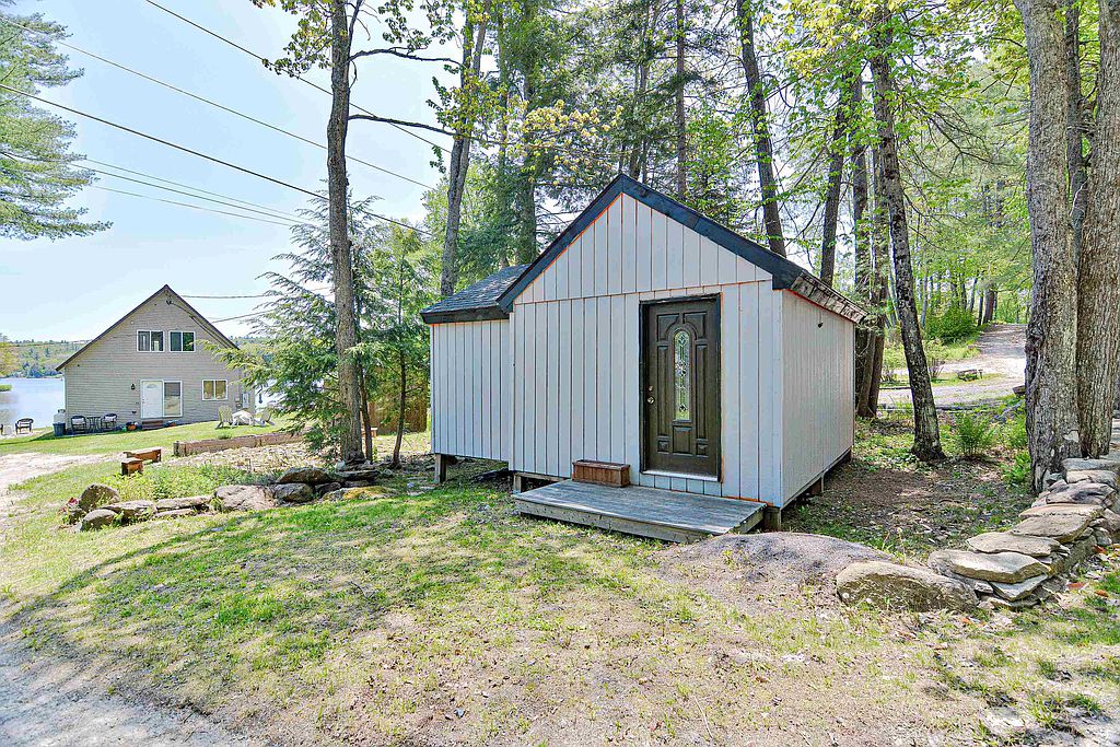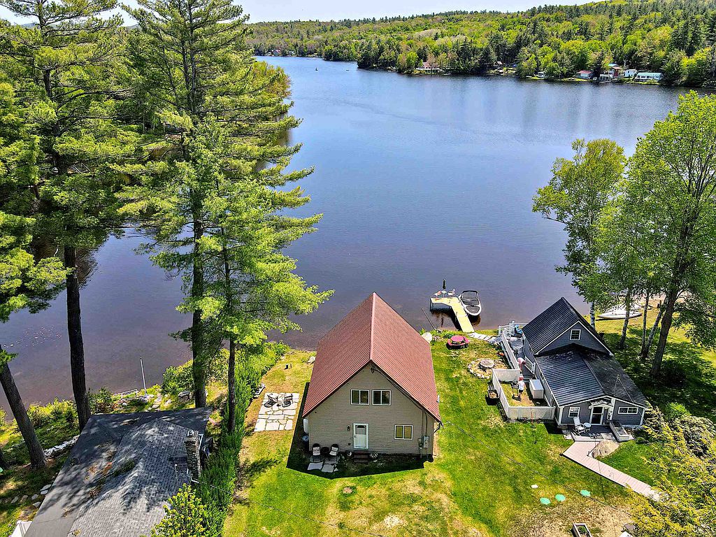 Contemporary style home perched directly on the pristine waters of Crescent Lake. The main level is graced with a wall of over-sized windows and french door, offering expansive panoramic water views from every angle! Open concept floor plan includes: The modern kitchen equipped with white cabinetry, granite counters, farmers sink & peninsula open to the dining/living room. First floor guest room and full bath with double sinks complete the main level. Upper level hosts the main bedroom showcasing another wall of windows and french door leading to a private balcony, perfect for your morning coffee or just a place to unwind overlooking the water. The quaint loft offers a cozy space to read or write or can have many other uses...you choose! Additional bedroom and half bath complete the upper level. Gorgeous hardwood floors throughout. Wait, there's more! SEPARATE LOT WITH its own GUEST COTTAGE (Built in 2015) IS INCLUDED!! The cottage is just waiting to be finished! Currently has electricity and flooring. Incredible opportunity for future expansion to host even more guests! Storage shed to house your lake gear, rock garden, patio and spacious deck, perfect for lakeside entertaining! Just in time for all the summer fun-kayaking, swimming, fishing, water skiing and more!