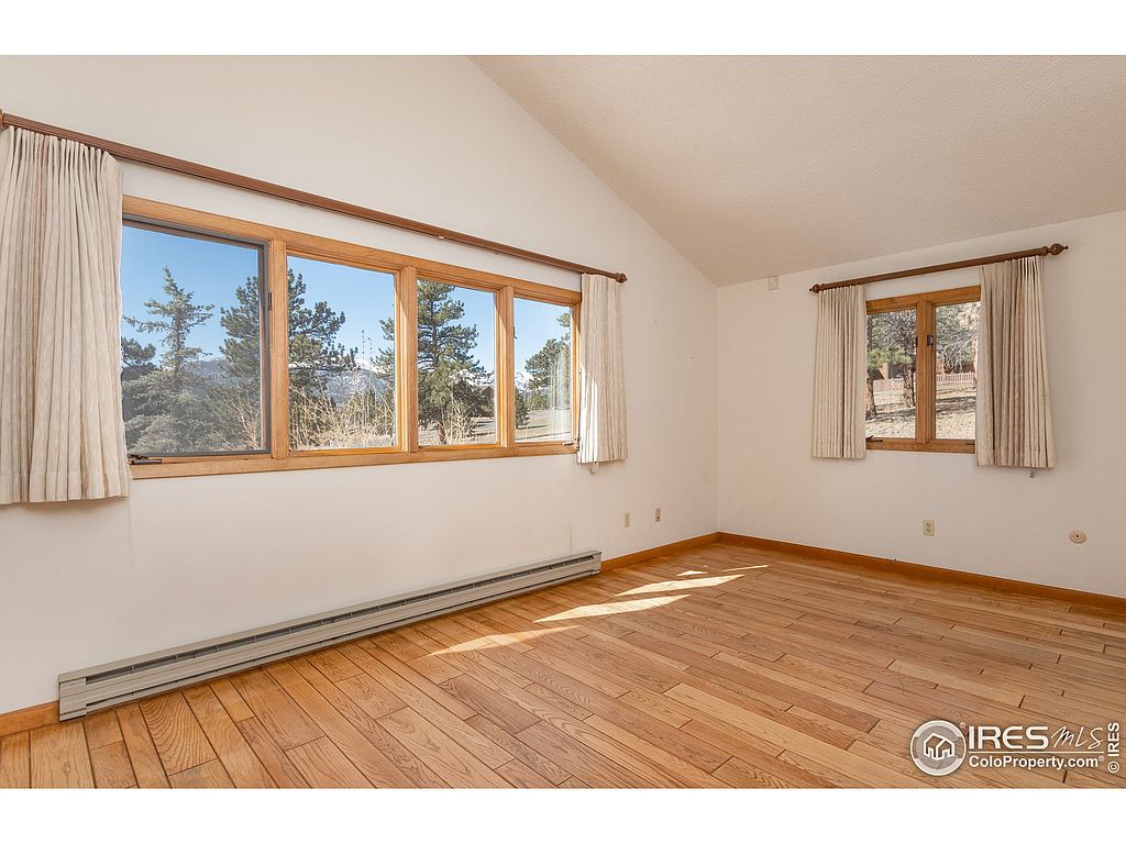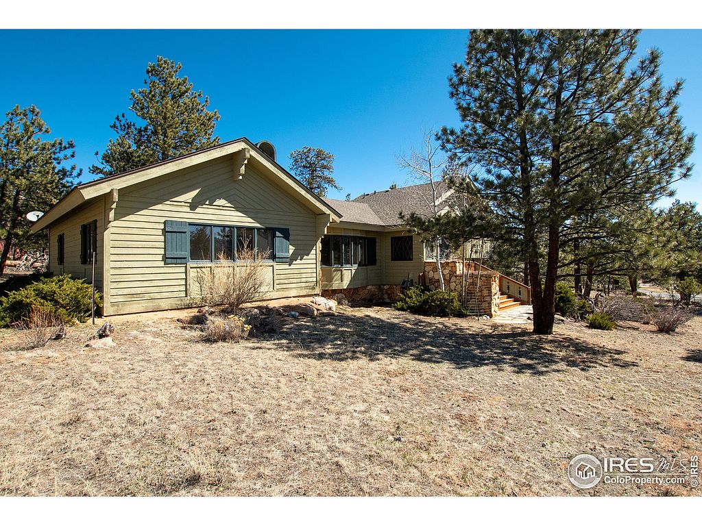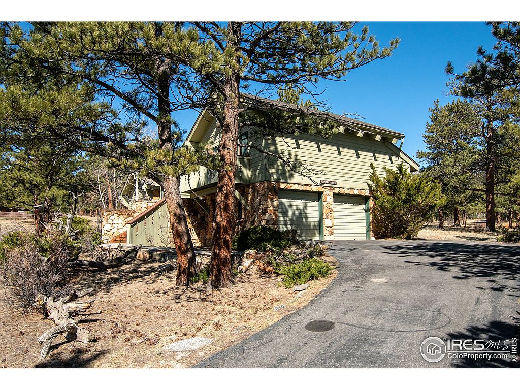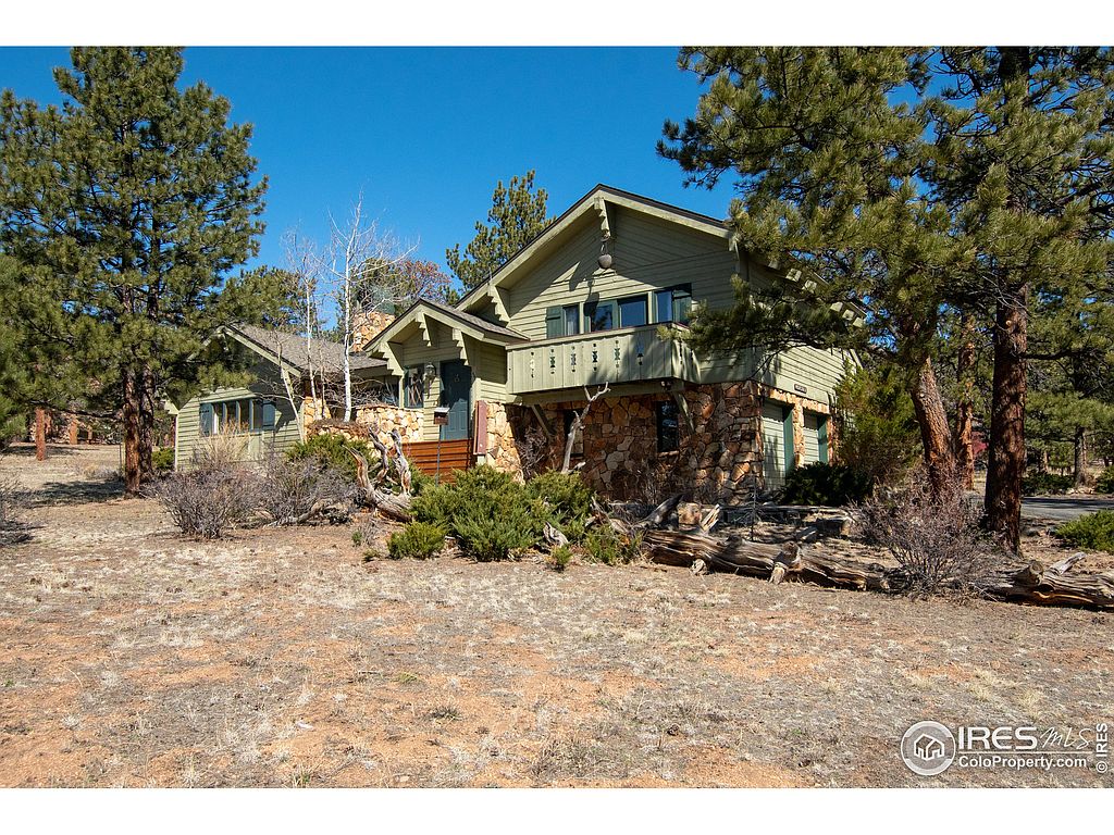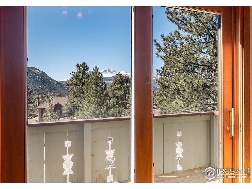 Rare opportunity to live on Prospector Lane in beautiful Estes Park, CO! Stunning setting on 1 acre with amazing views of the Continental Divide! Main level offers 3 bedrooms with wood floors and 1 full bath. Great room and dining room have vaulted wood beamed ceilings, wood floors, floor to ceiling moss rock fireplace and bay window to frame the mountain views. Large primary suite offers privacy on its own upper level with balcony that looks directly at Longs Peak & Mt Meeker. Full primary bath is set up with sink, toilet & closet on either side of the tub/shower room. Attached 2 car garage & impressive stone entry. One of the best locations in Estes!