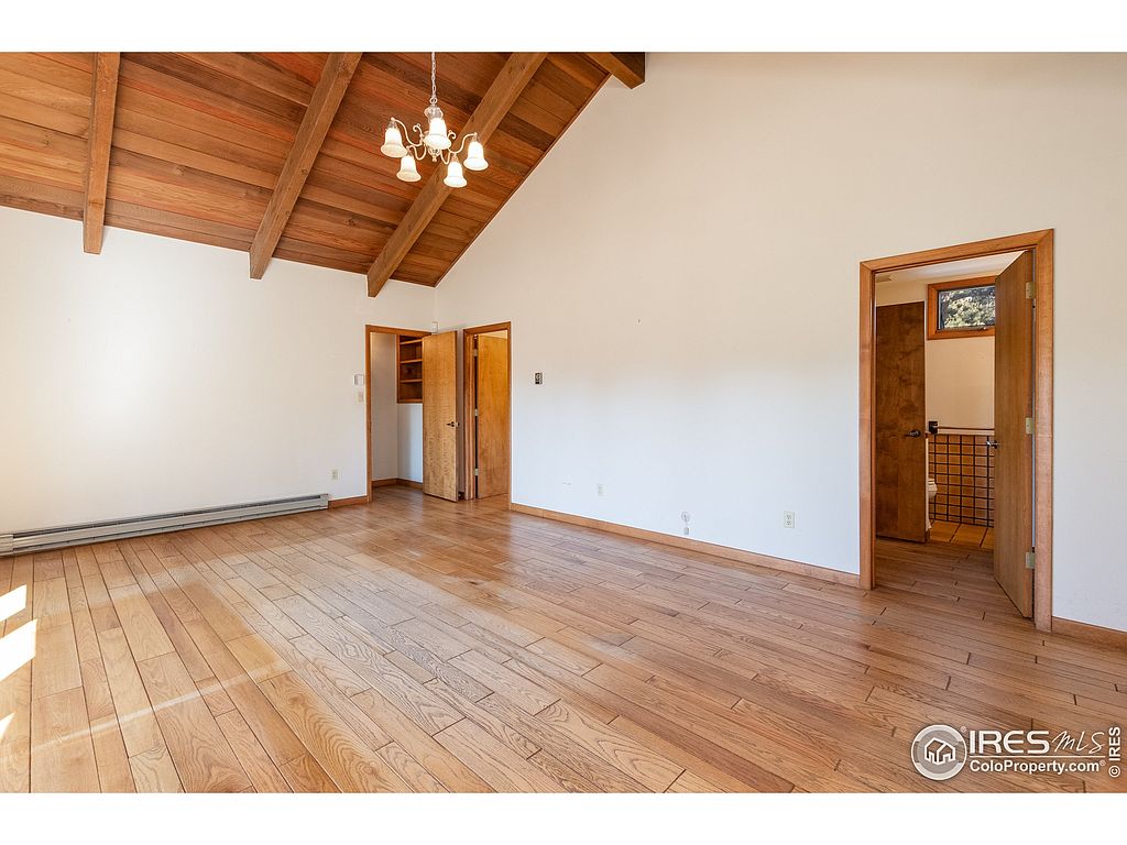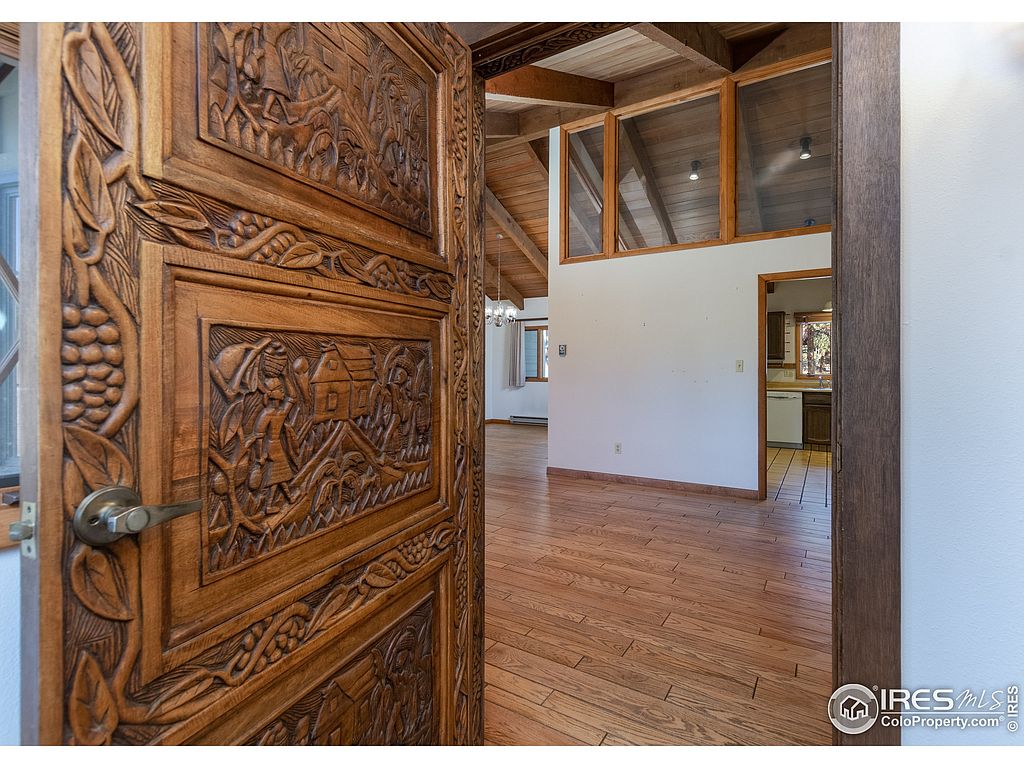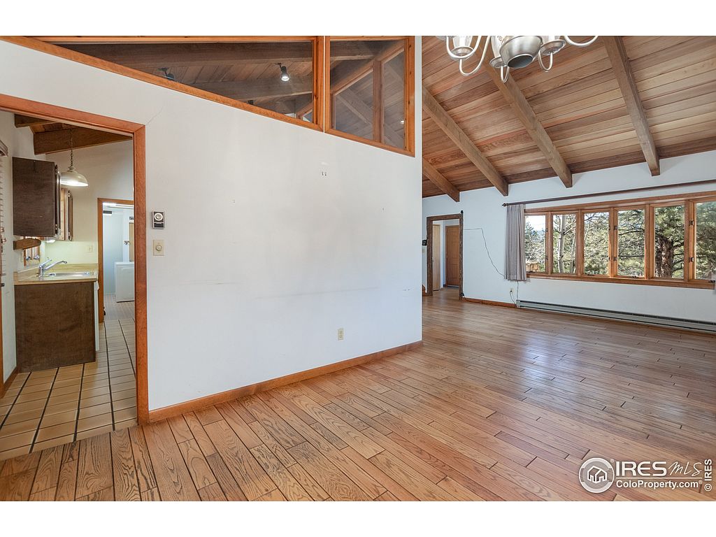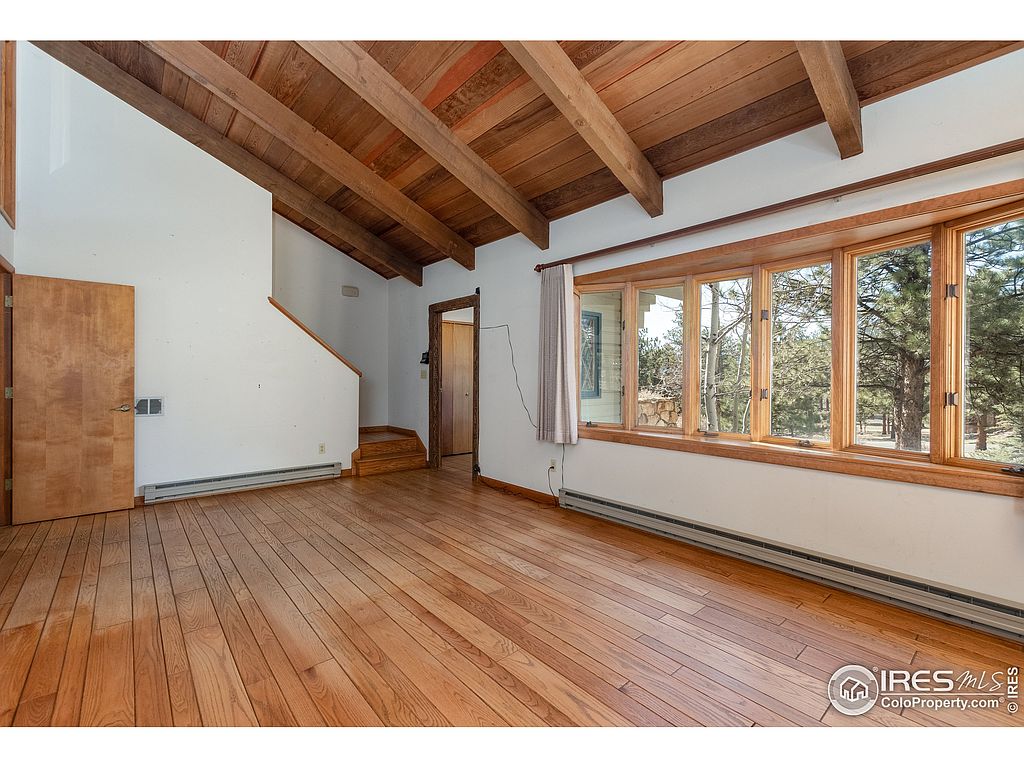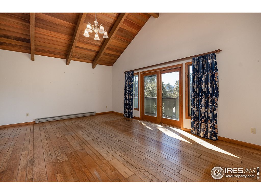 Rare opportunity to live on Prospector Lane in beautiful Estes Park, CO! Stunning setting on 1 acre with amazing views of the Continental Divide! Main level offers 3 bedrooms with wood floors and 1 full bath. Great room and dining room have vaulted wood beamed ceilings, wood floors, floor to ceiling moss rock fireplace and bay window to frame the mountain views. Large primary suite offers privacy on its own upper level with balcony that looks directly at Longs Peak & Mt Meeker. Full primary bath is set up with sink, toilet & closet on either side of the tub/shower room. Attached 2 car garage & impressive stone entry. One of the best locations in Estes!