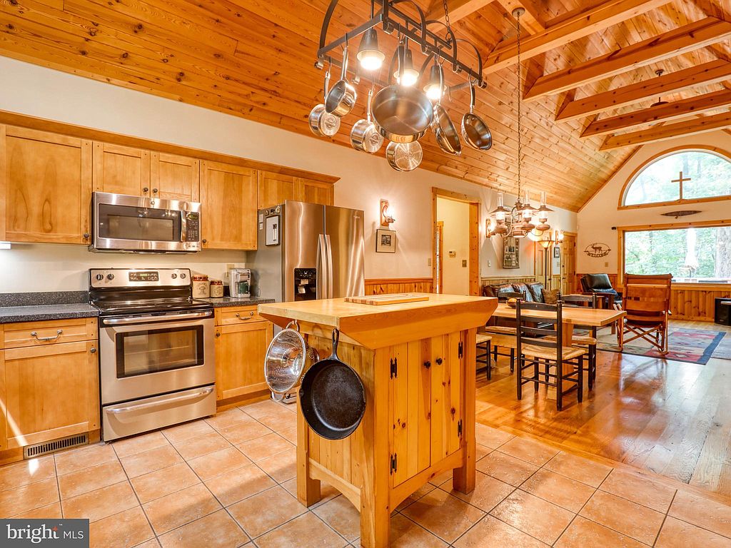 Stunning attention to detail in this lovingly maintained home in the woods. This home is a show stopper! Filled with beautiful and meaningful touches you'll love such as the oak hardwood floors crafted from reclaimed fence boards from nearby farms, the gorgeous stonework on the fireplace, vaulted ceiling, and beautiful, natural wood trim and finishes throughout. Enjoy the outdoors from the more than 500sqft of decks and porches including a spacious front deck partially covered, and peaceful rear screened in porch. This home is a perfect, wooded retreat that would make a great vacation property, or home for year-round living. Home can be sold mostly furnished.