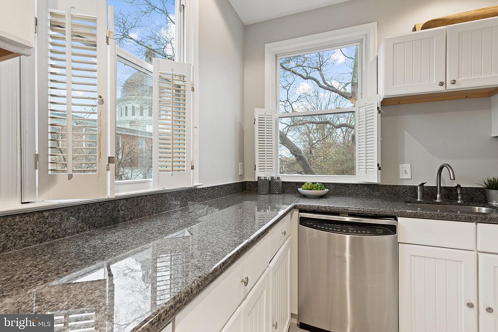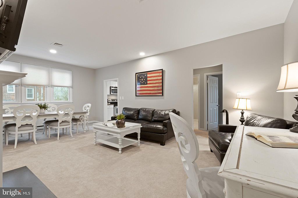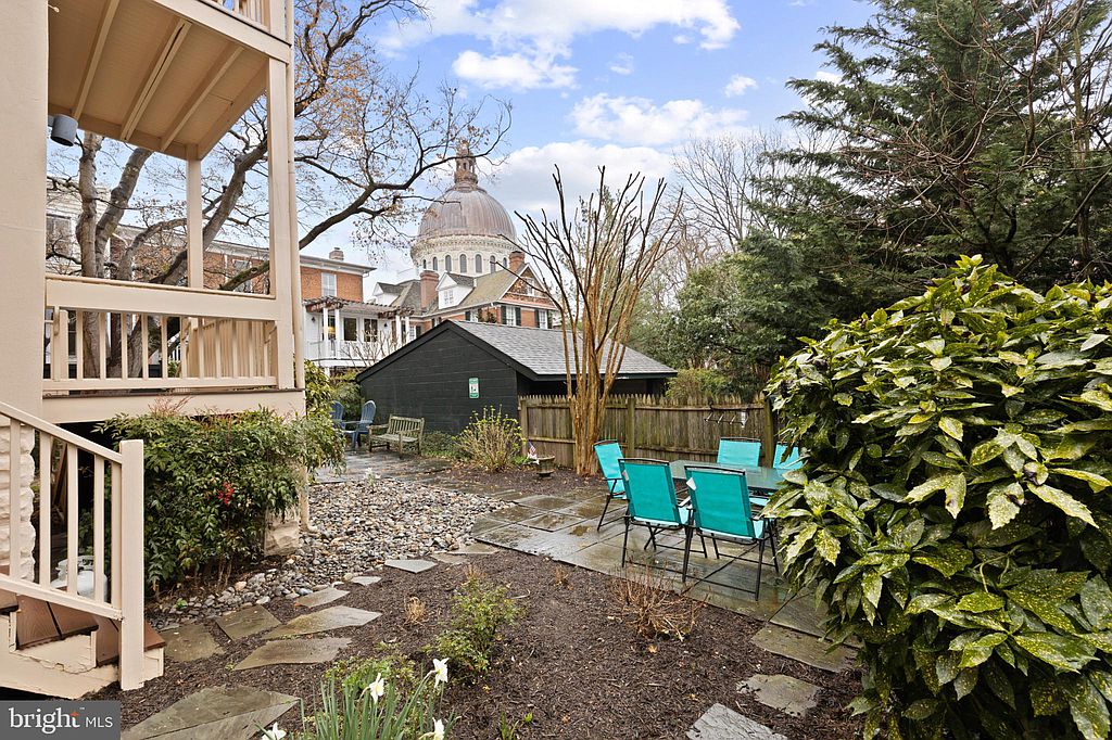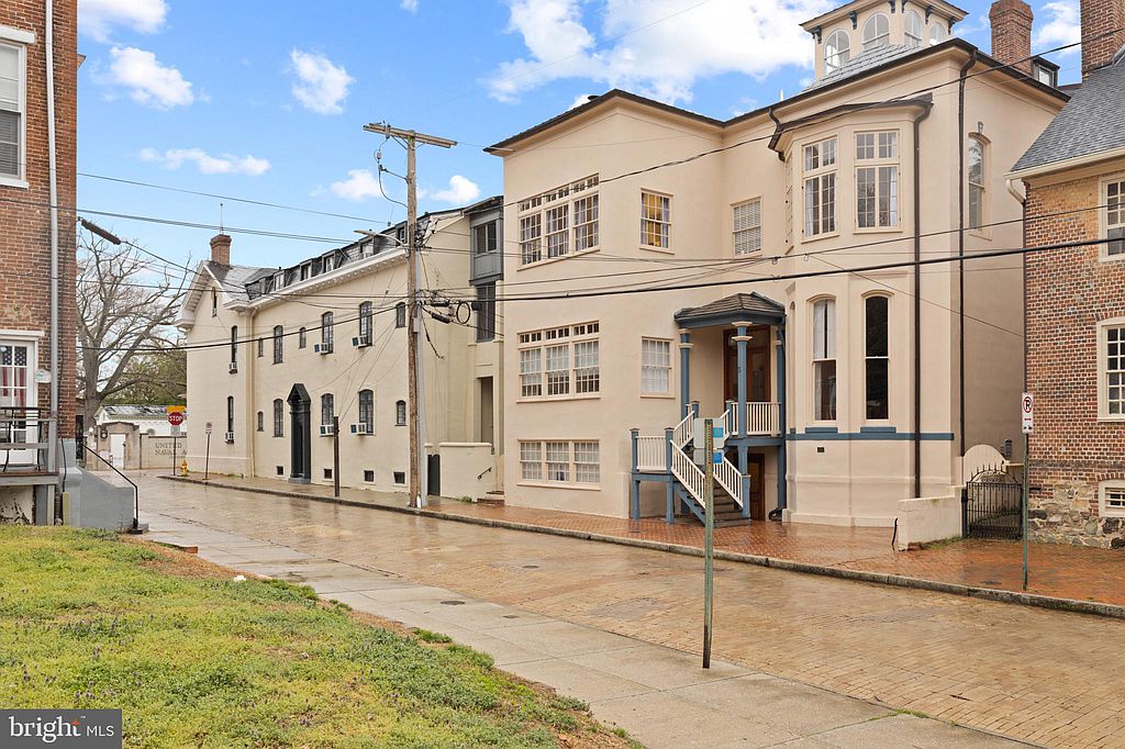 Welcome to the Admiral Terry Building, where you can experience the charm and history of Annapolis living at your doorstep. This 2 bedroom, 2 full bath unit is the epitome of elegance and sophistication, with a prime location just steps from Gate 3 of the United States Naval Academy. Beautiful hardwood floors grace the unit and high ceilings create an open and inviting atmosphere. The living room features a cozy fireplace, and the updated kitchen is a chef's dream, complete with all the modern amenities you need to prepare gourmet meals. The primary bedroom is a true retreat, with a large walk-in closet and a private courtyard with an amazing view of the Naval Academy Chapel. Both bedrooms have blackout shades to ensure a restful night's sleep. This unit has been tastefully updated with new paint and carpeting, as well as new moldings and a new mantel. Newly installed windows in the primary bedroom are up to historic code, ensuring that you can enjoy all the modern comforts while still preserving the character and charm of the building. Additional upgrades include a new HVAC unit (summer 2022), new wiring for TVs, and a new dishwasher and disposal in the kitchen. Maryland Avenue is one of the most desirable streets in Annapolis, and this unit is just steps away from the city dock, great bars & restaurants, a wine store, a barber shop, and various street festivals throughout the year. Whether you're looking for a night out on the town or a quiet evening at home, this location offers the best of both worlds.