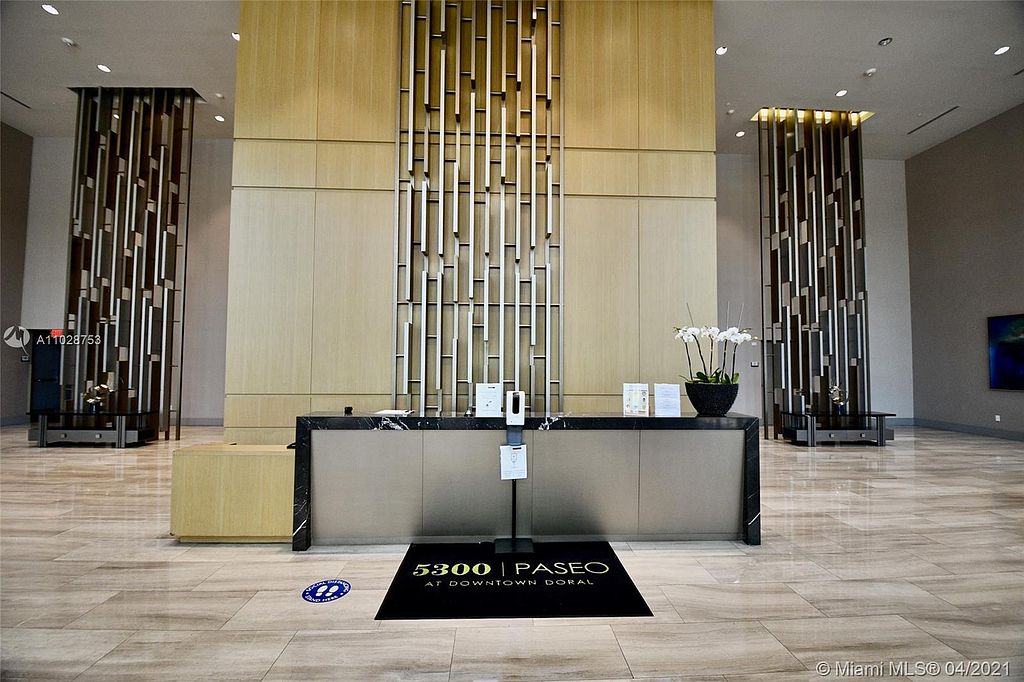 Elegance, comfort and style 2 bed 2 bath in Downtown Doral. Modern Italcraft kitchen with quartz countertop, tile flooring, top-of-the-line appliances, frameless doors in baths. Grand Porte-Cochere entrance, 2-story lobby designed by Adriana Hoyos, beautiful zero-entry swimming pool, resort-style outdoor pool deck with lounge daybeds and cabanas. State-of-the-art fitness facilities, yoga room, on-site massage rooms, sauna. Children's play area perfectly suitable for games, arts, crafts and gathering. High Speed internet, Cable and Water included, 24-hour security, dedicated front desk and catering services. Pedestrian-bicycle friendly landscaped sidewalks with brand shops, exquisite restaurants, offices, Publix and a picturesque park. A+ Charter School. Easy access to major highways.
