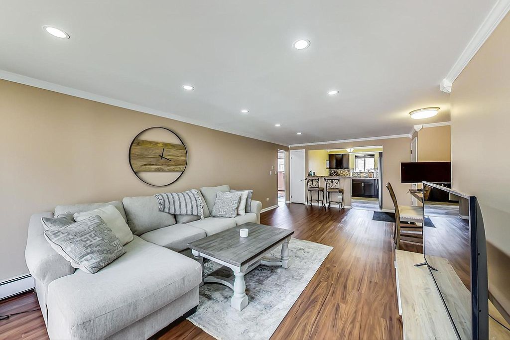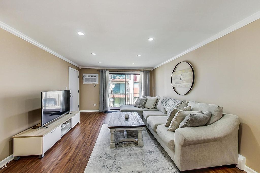 Great opportunity to own this completely remodeled condo! Absolutely nothing to do but move in! New features include: *New kitchen with high end SS appliances with breakfast bar, *All new bath, *Freshly painted, *Wood laminate floors thru-out, *Canned lighting, *Custom designed closets, *New door hardware, *New front & back door locks, *Even all new switch plates & outlet covers!!! Sliders to balcony for summer relaxing! 1st Parking space immediately outside the back door, Laundry & Storage in Building. Convenient location! Easy access to O'Hare, Kennedy, Tollways, Rivers Casino, Rosemont Theater, Restaurants, Shopping & Entertainment. Great for commuters, walking distance to the Blue Line. Low assessment fee.